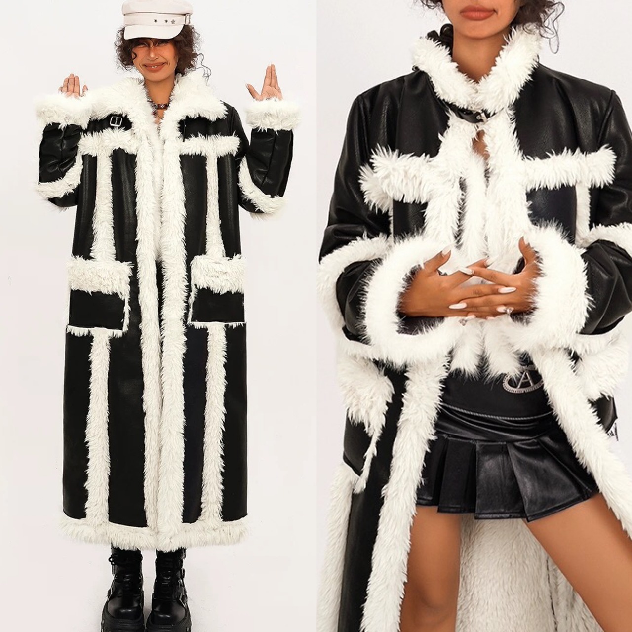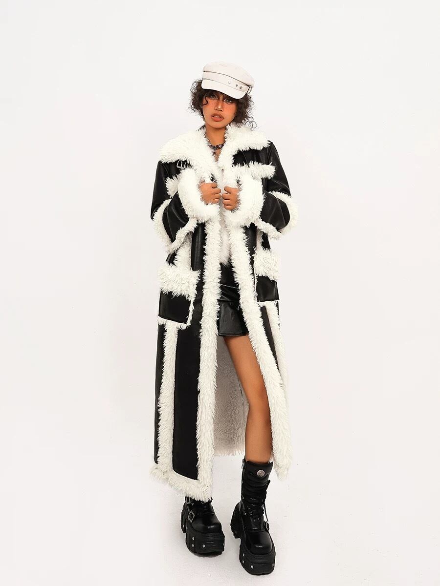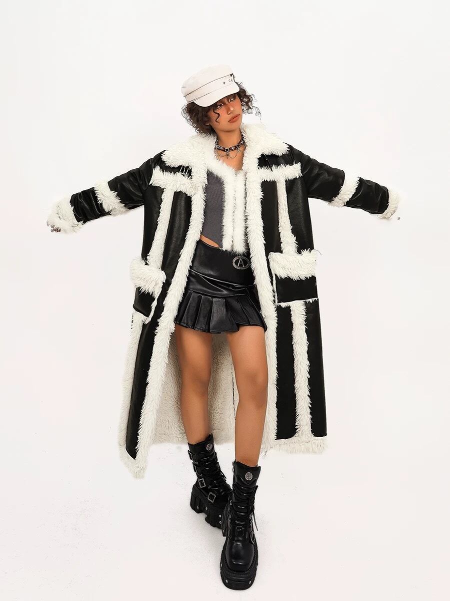 アウター ファー コート スカート ロング ストリート カジュアル ムートン 黒 ダンス ヒップホップ