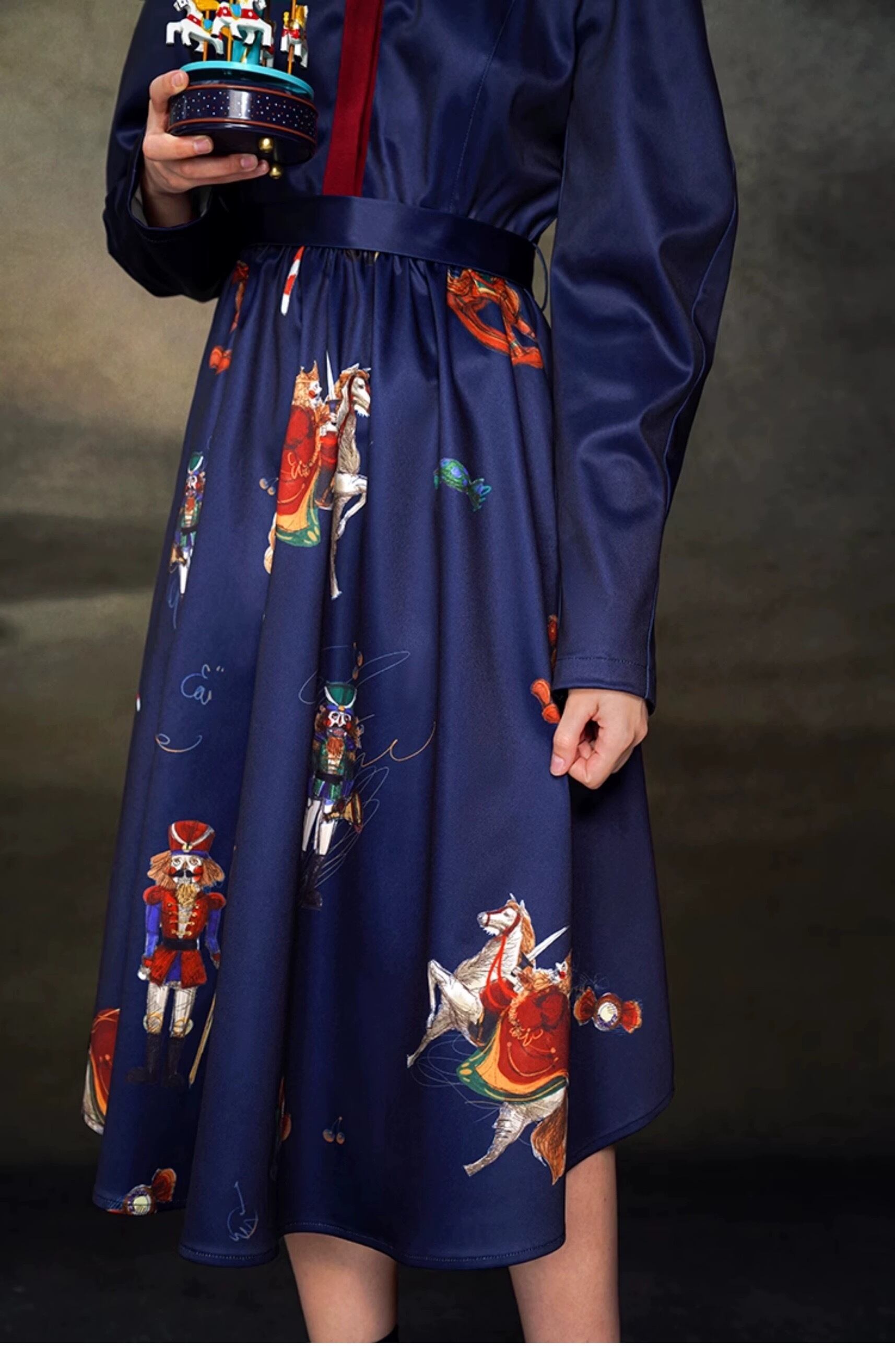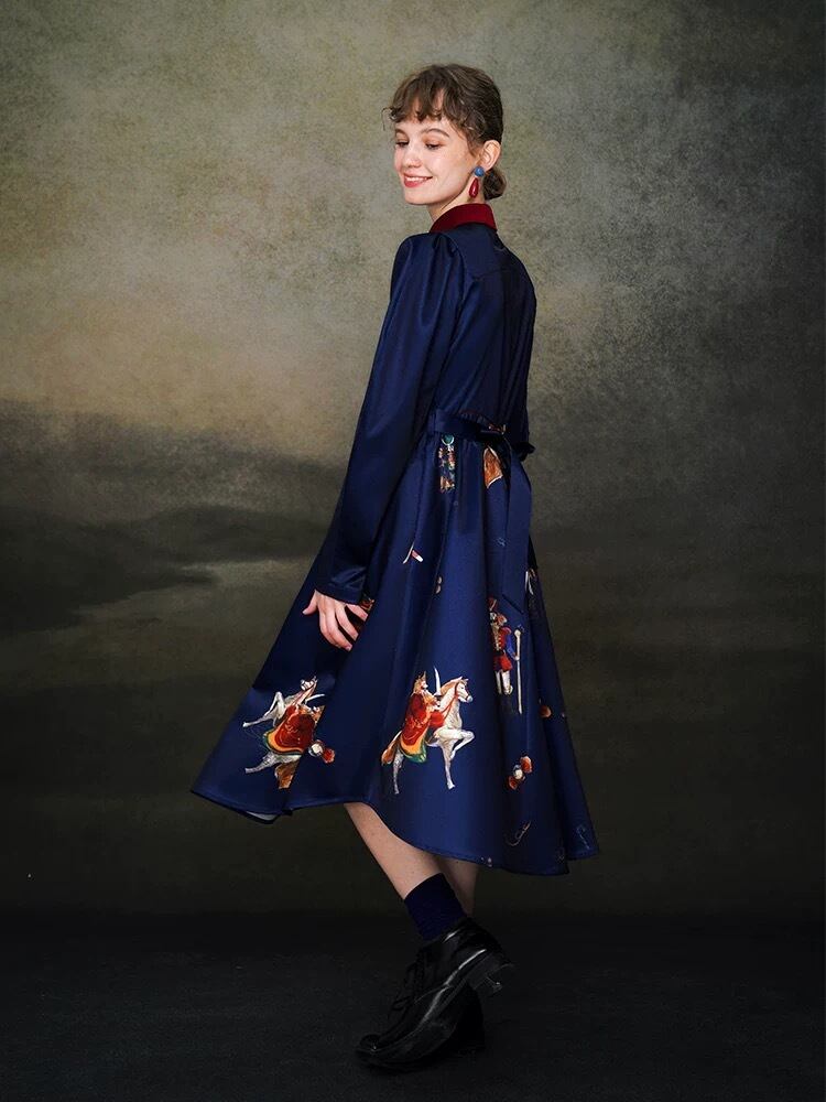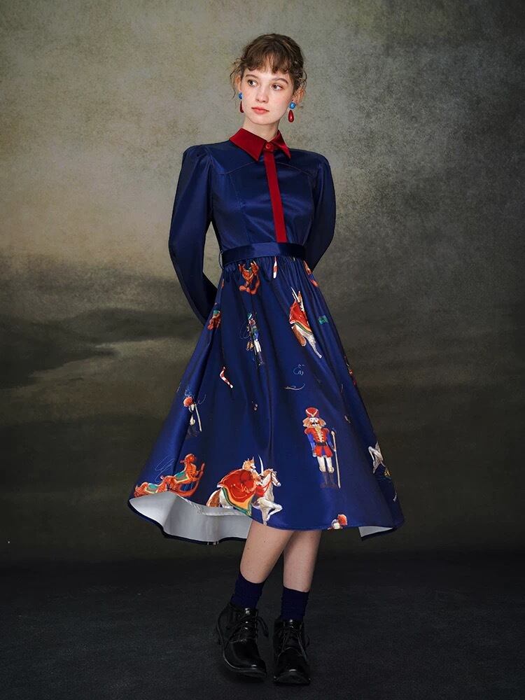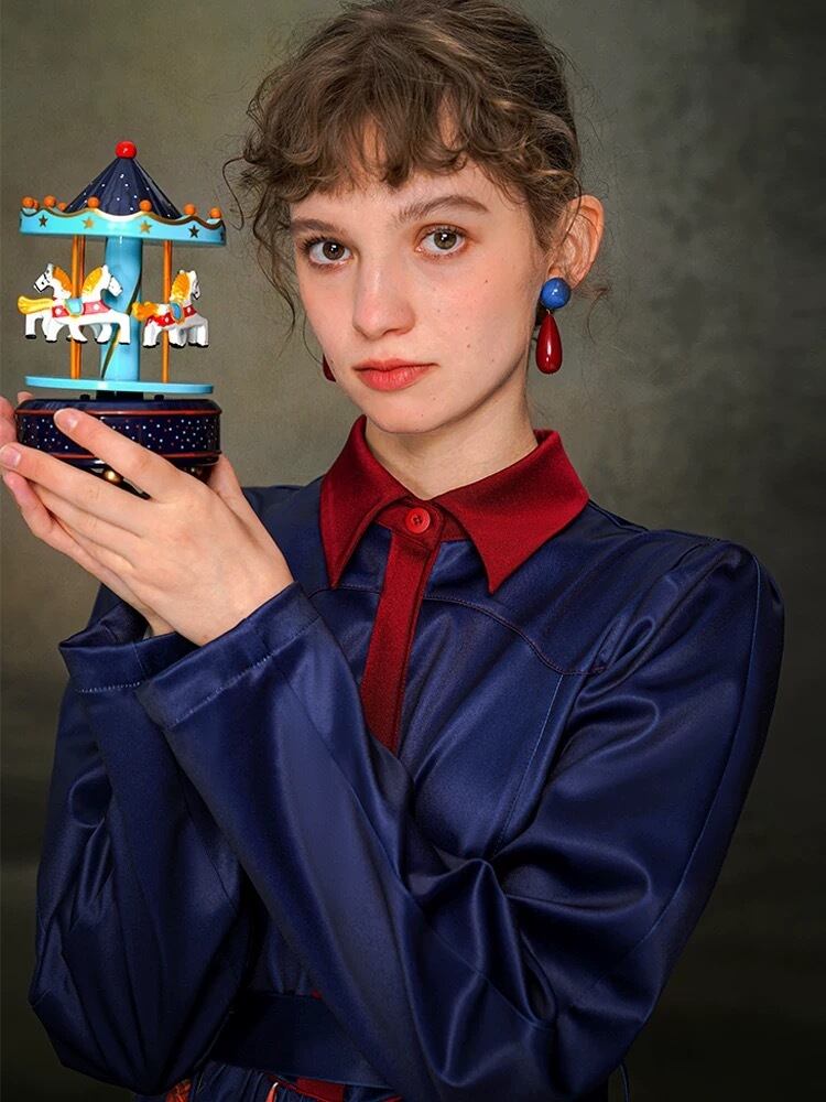 ネイビー 紺色 ブルー ブラウス 刺繍 花柄 フラワー 赤 ガーリー お嬢様
