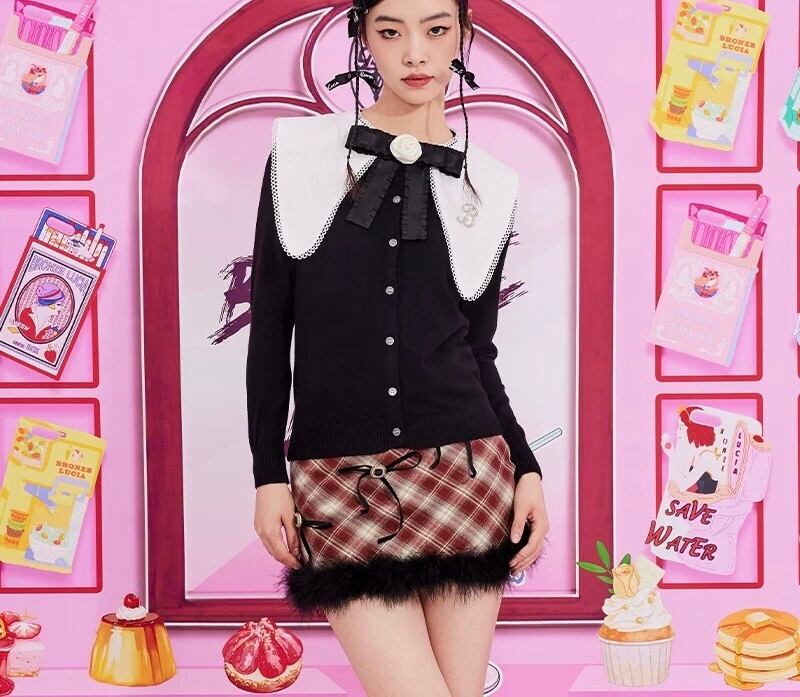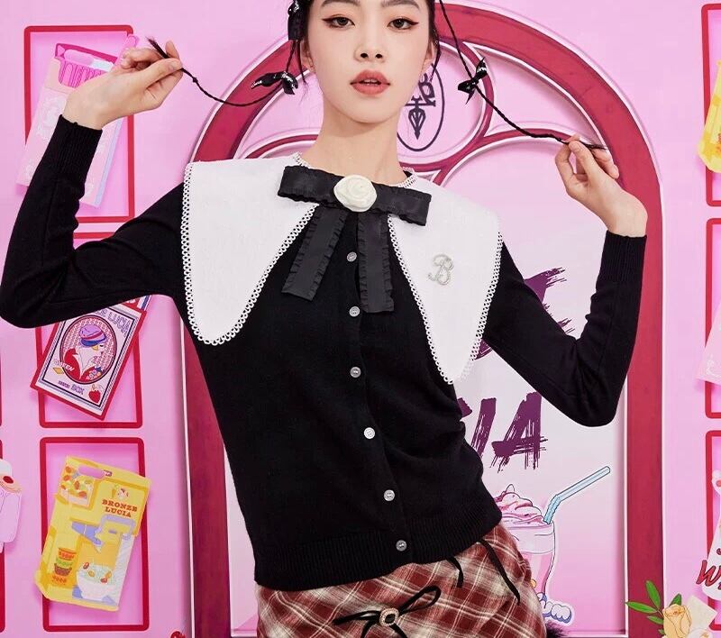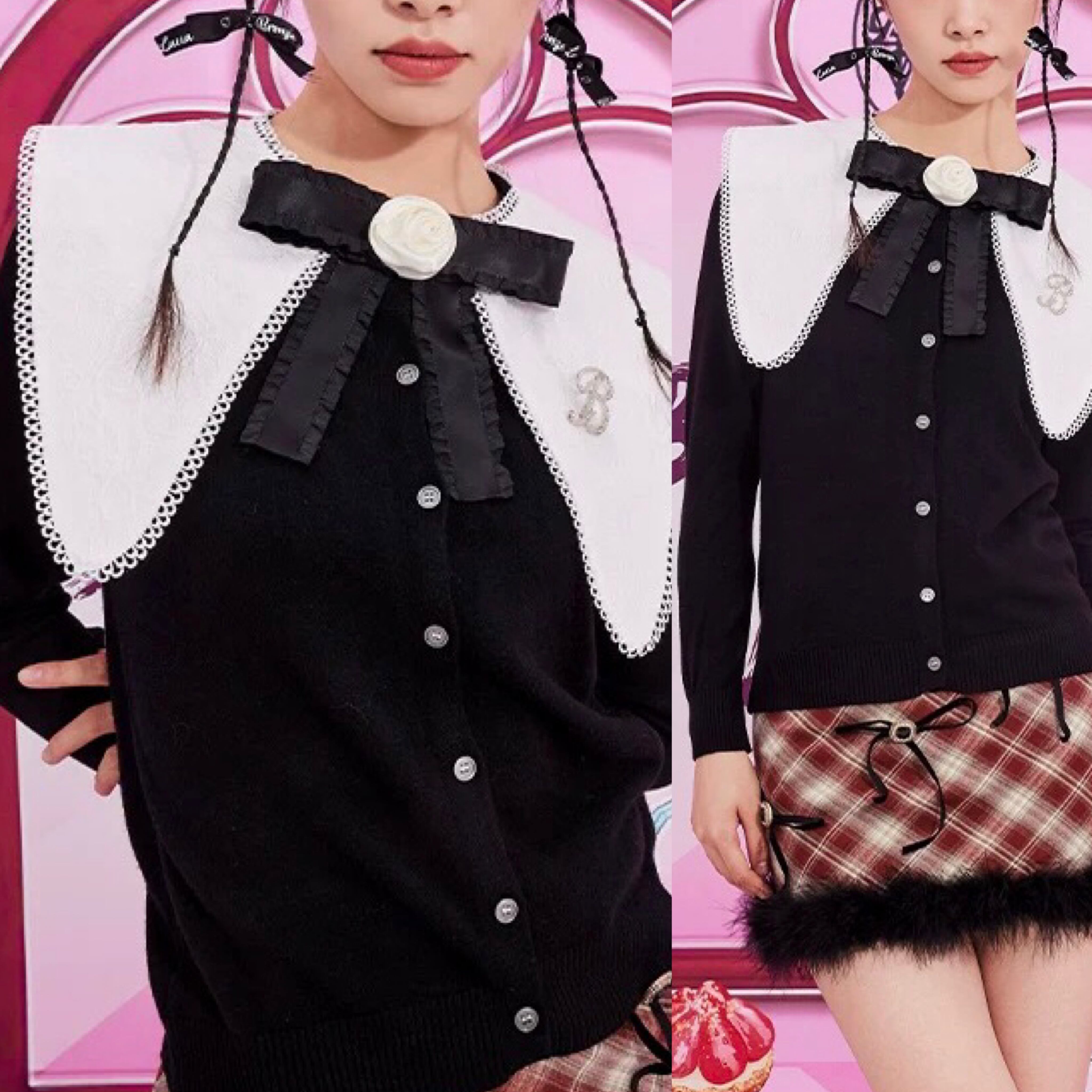 襟 リボン カメリア カーディガン トップス ガーリー セーター アウター ニット