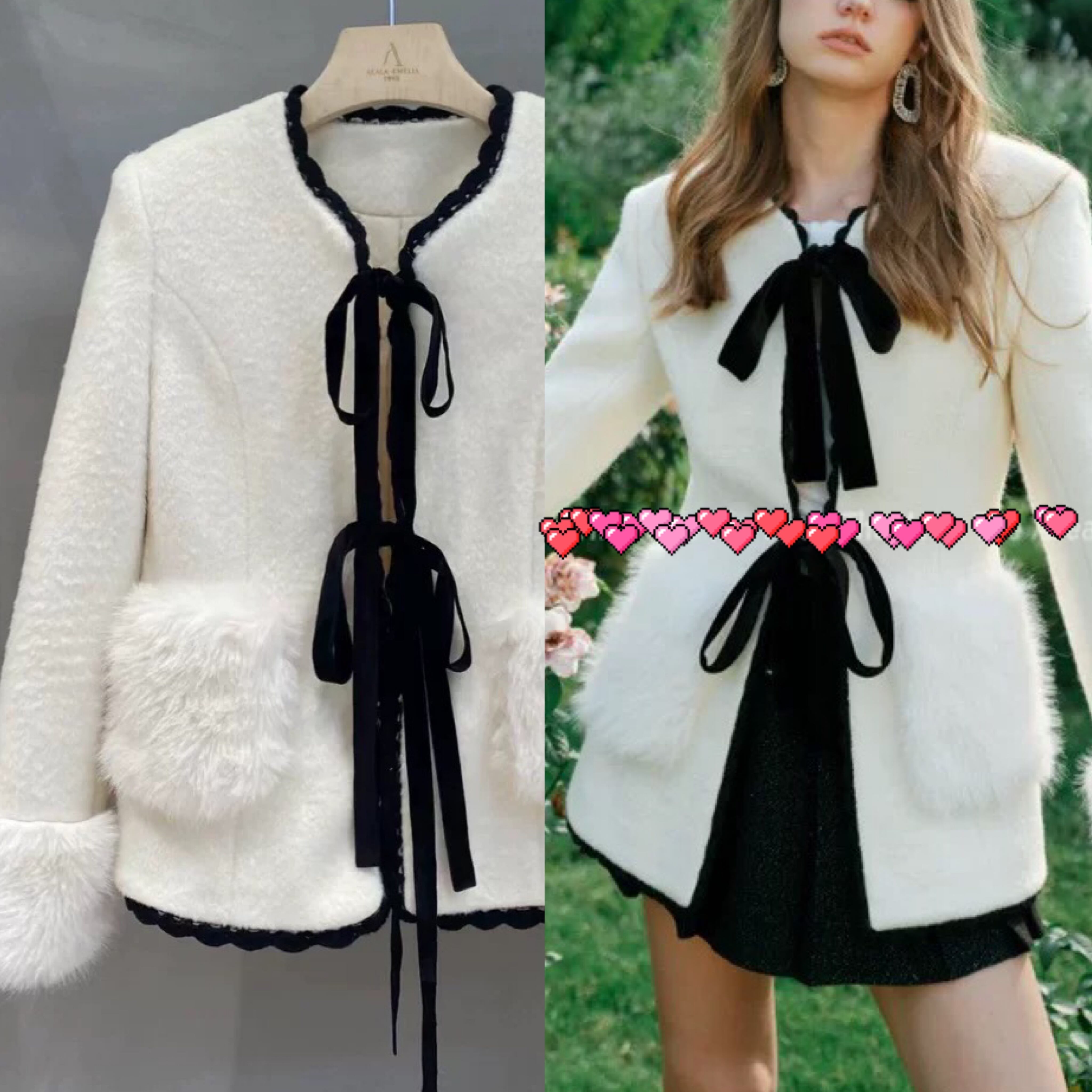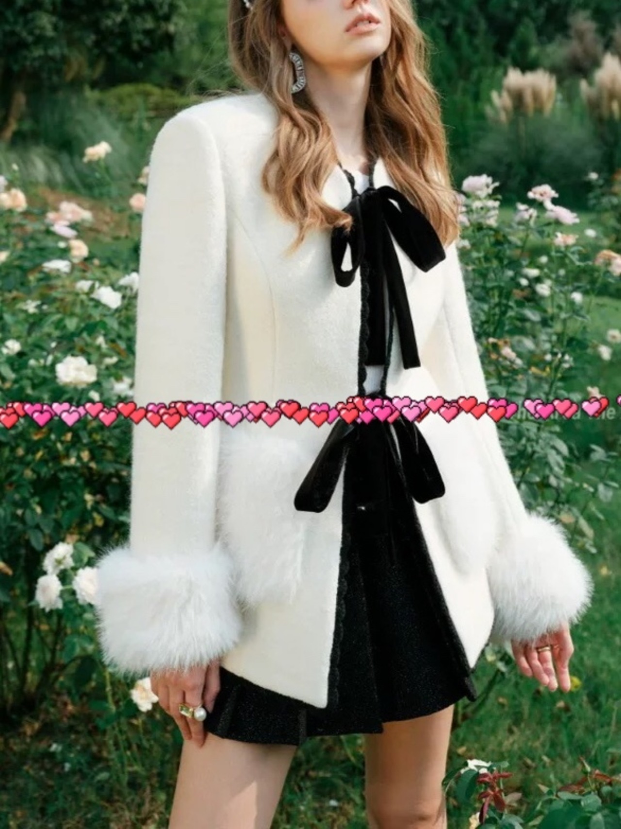 ジャケット アウター コート 白 ホワイト ファー リボン エレガント カーディガン ジャケット お嬢様