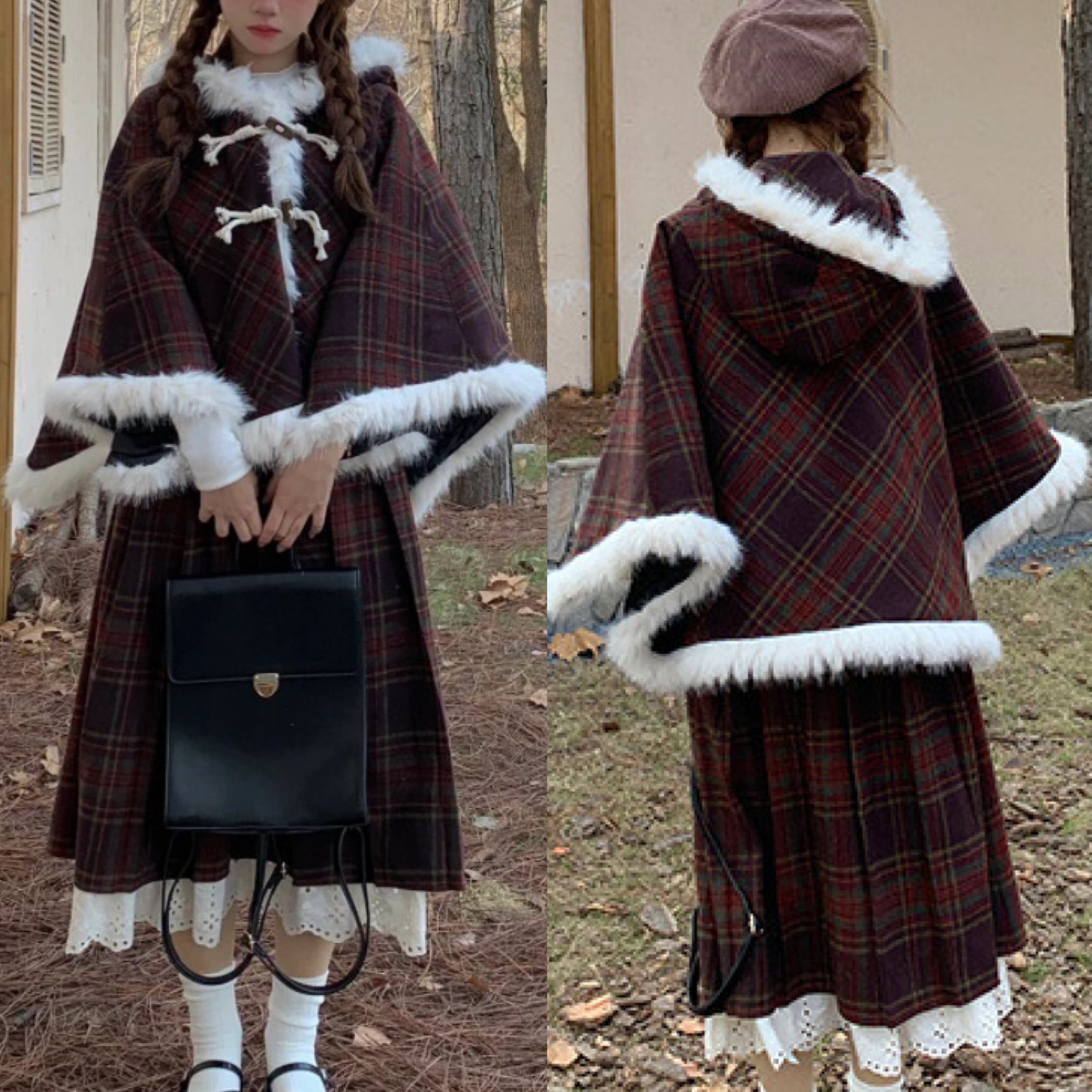 【スカート】茶色 赤 チェック ボトムス お嬢様 ガーリー ゆったり マキシ プリーツスカート