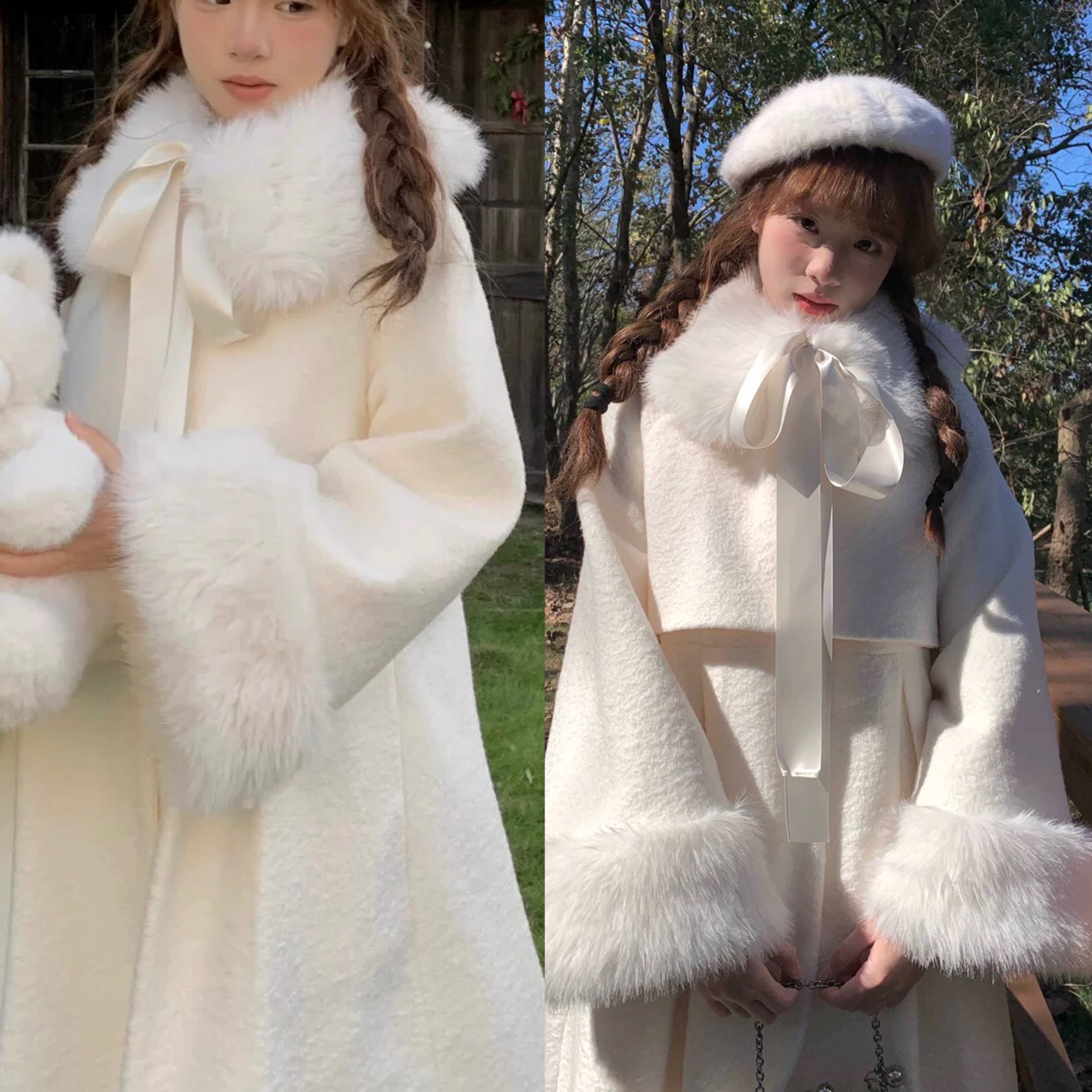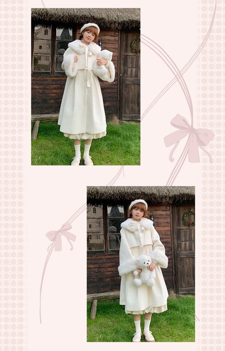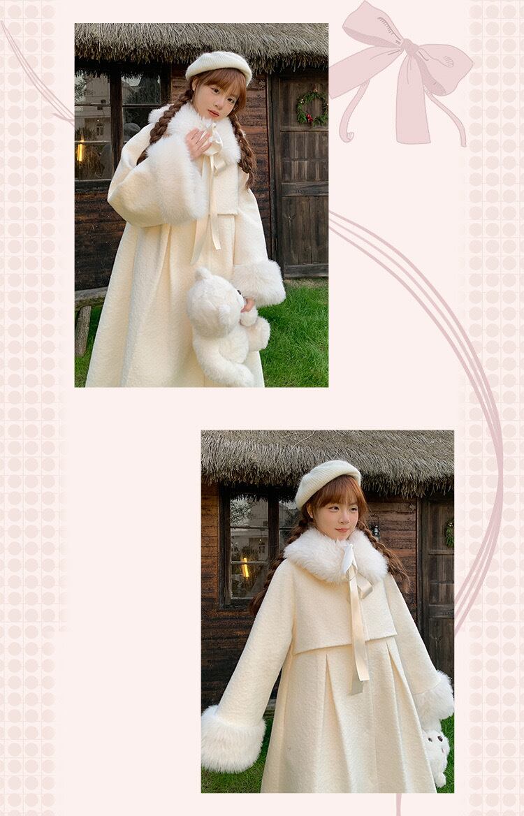 アウター ジャケット コート ワンピース リボン 白 ホワイト ファー ガーリー エレガント カーディガン 可愛い お嬢様