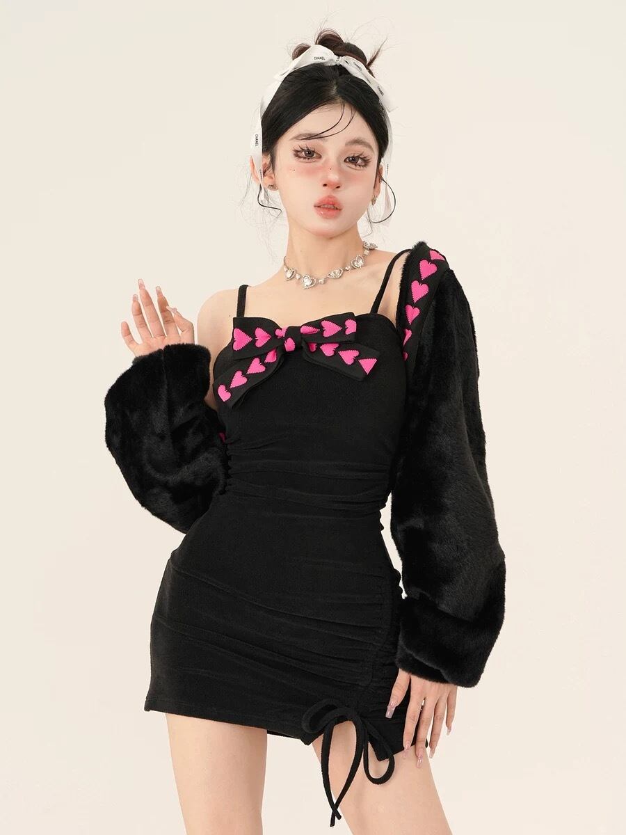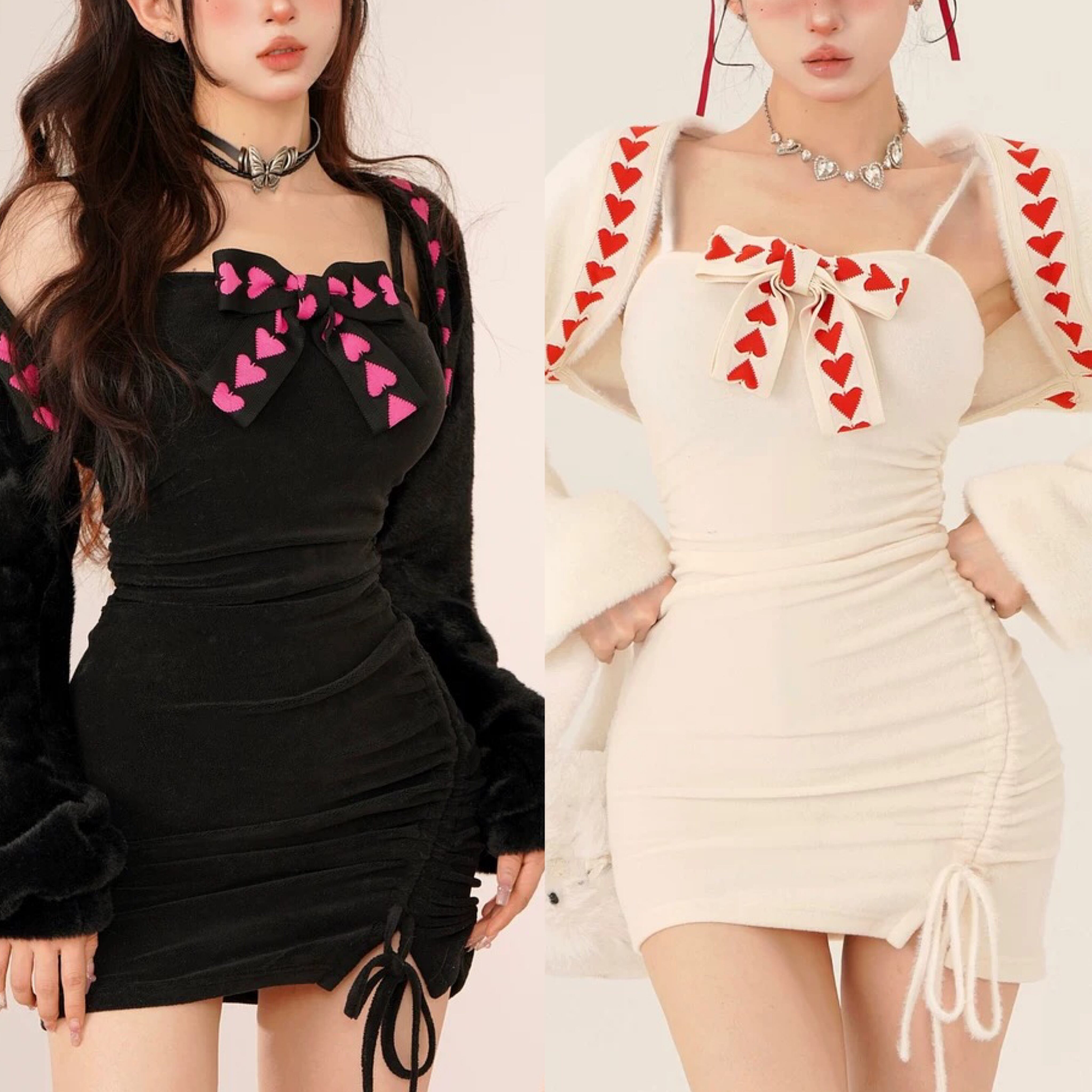 【ワンピース】白 黒 リボン 赤 ピンク ハート ガーリー 可愛い 姫 セクシー リボン ドレス
