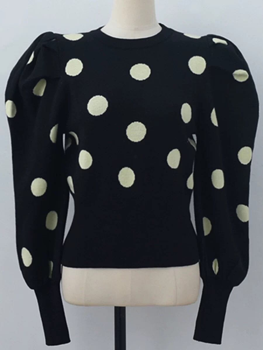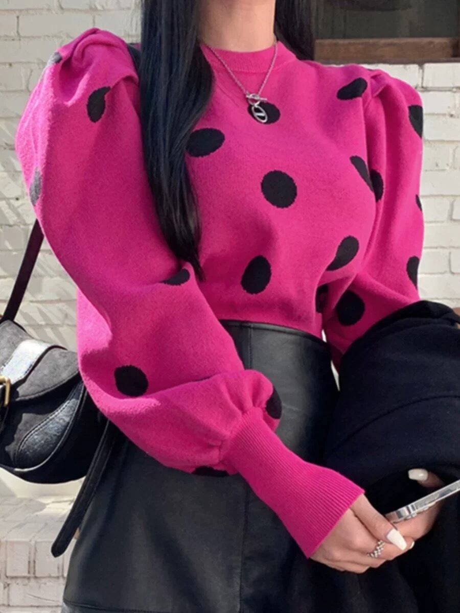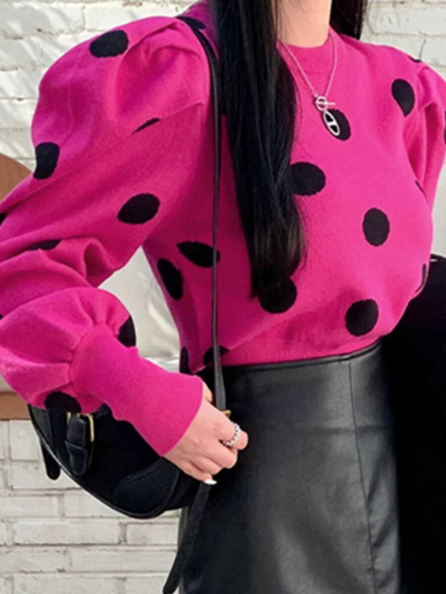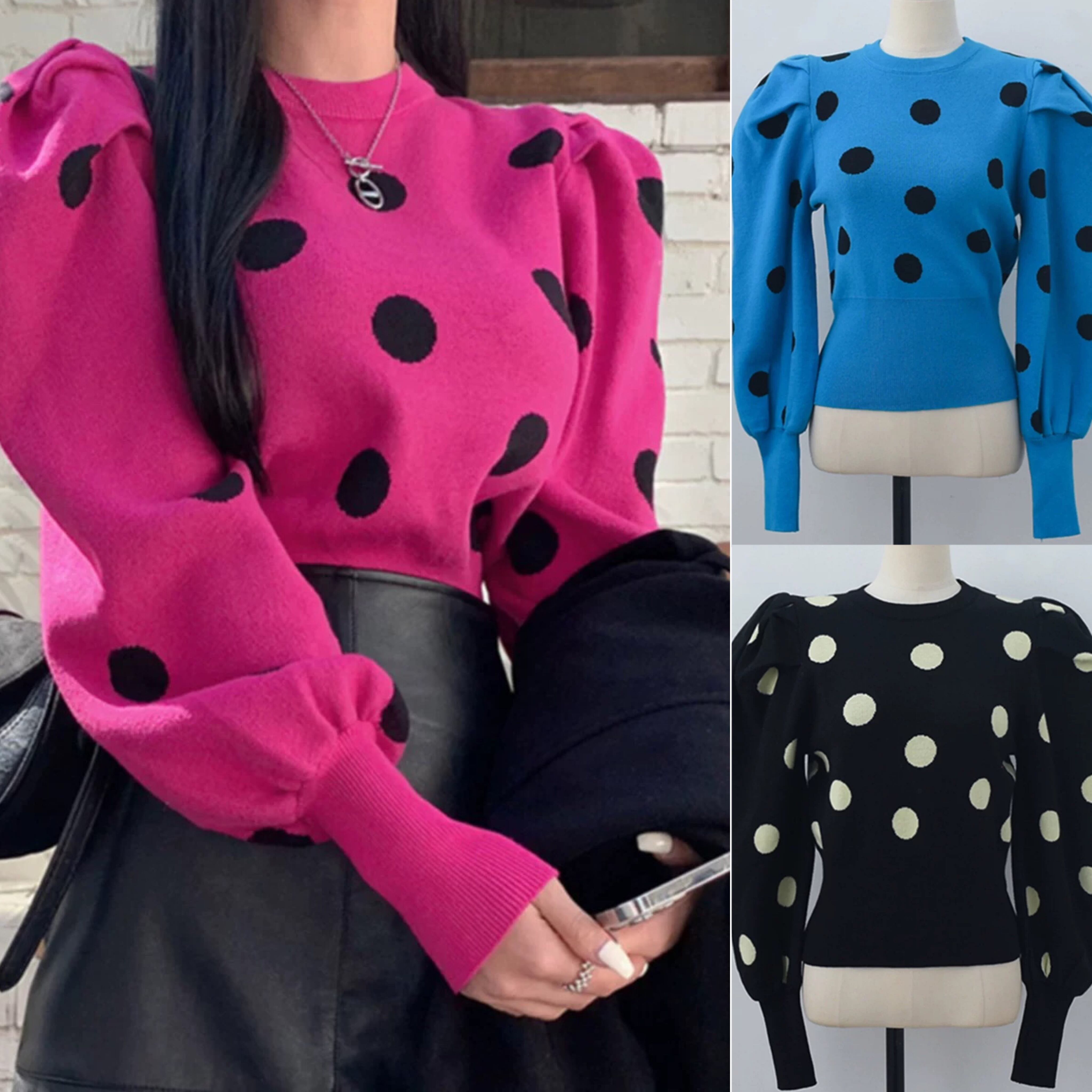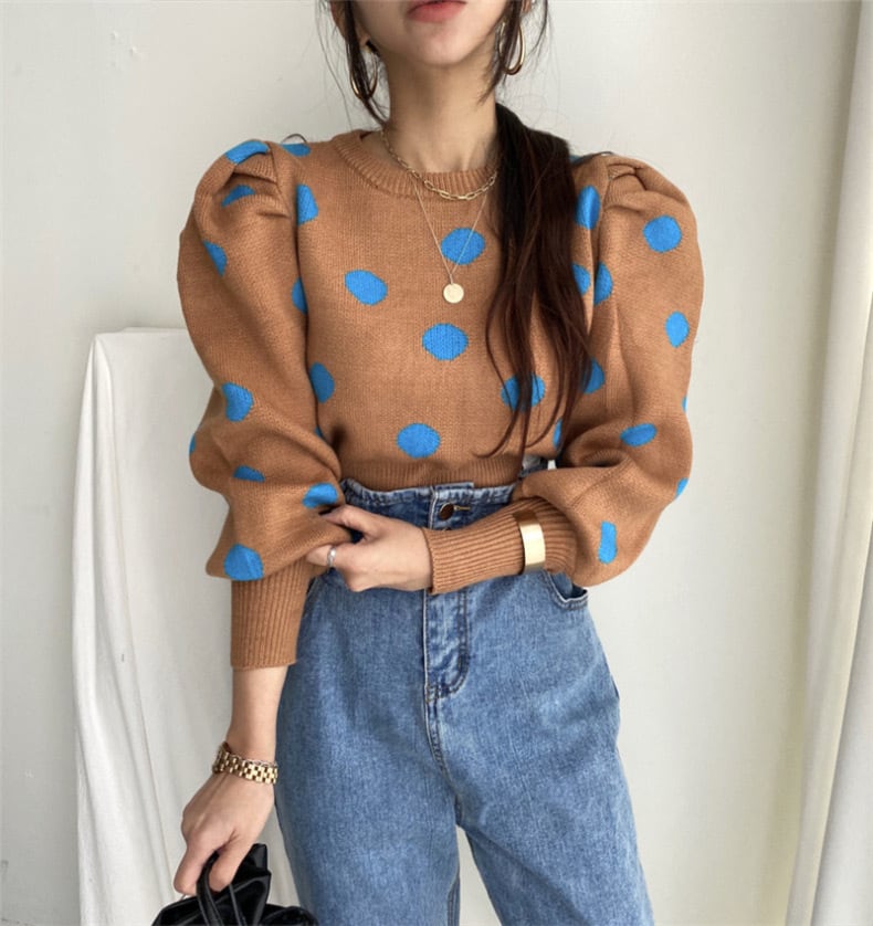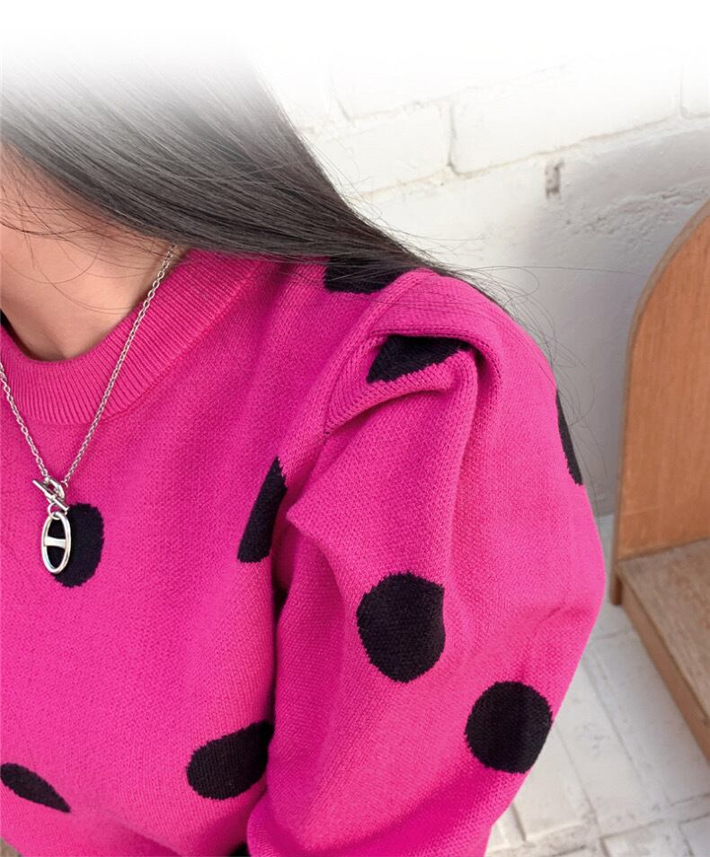 トップス ピンク 茶色 水色 ドット 水玉 セーター カーディガン ブラウス ガーリー