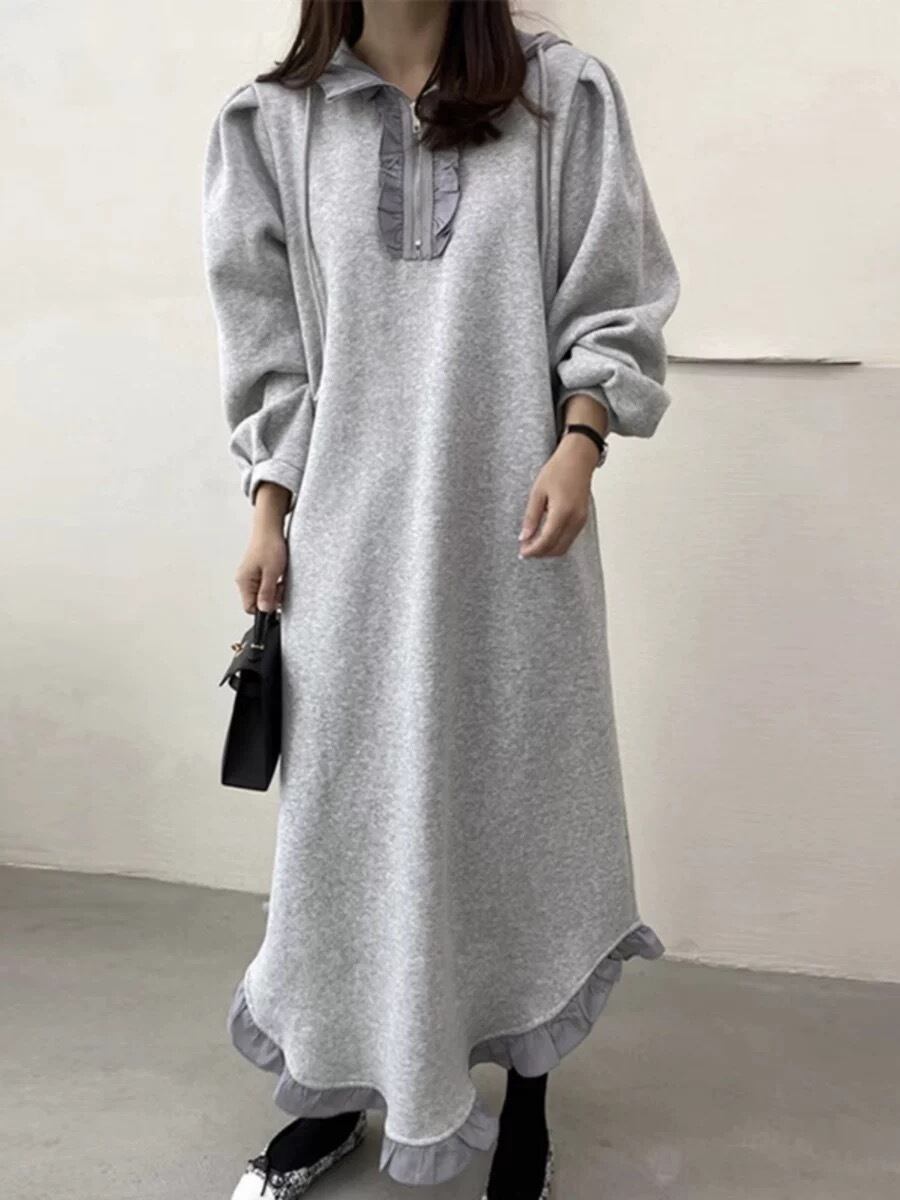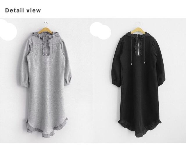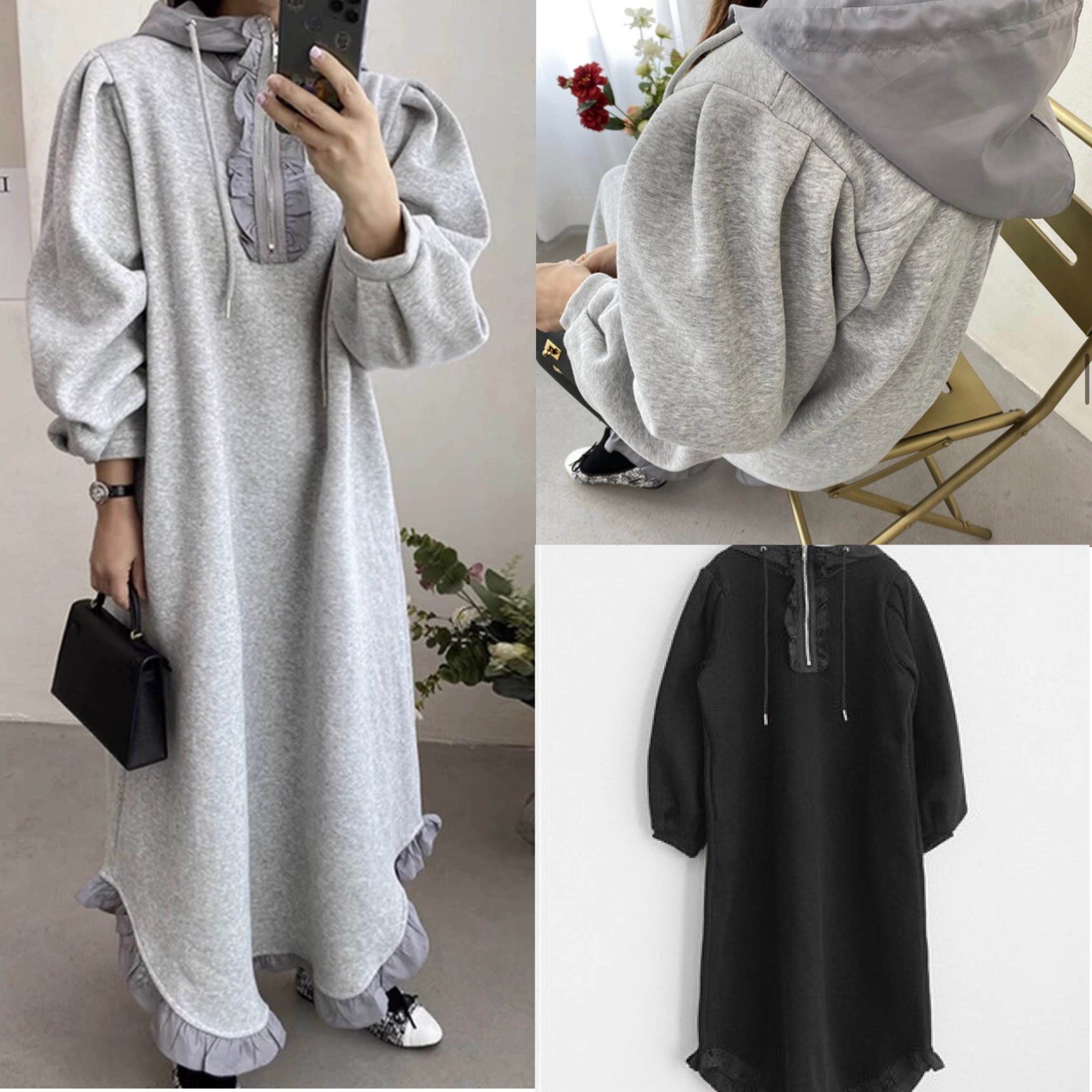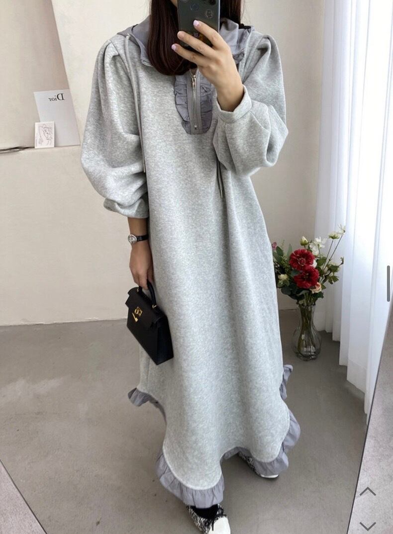 スウェット グレー 黒 パーカー フード ワンピース カジュアル マキシ トレーナー パーカー XL