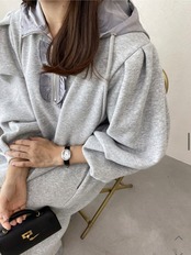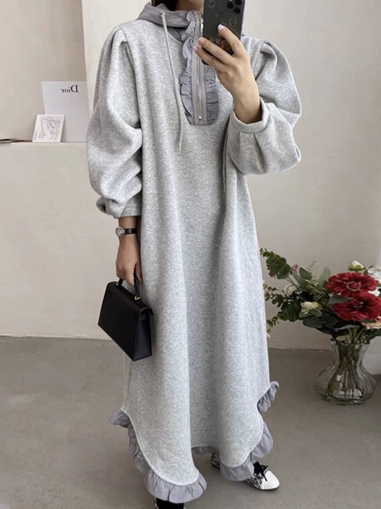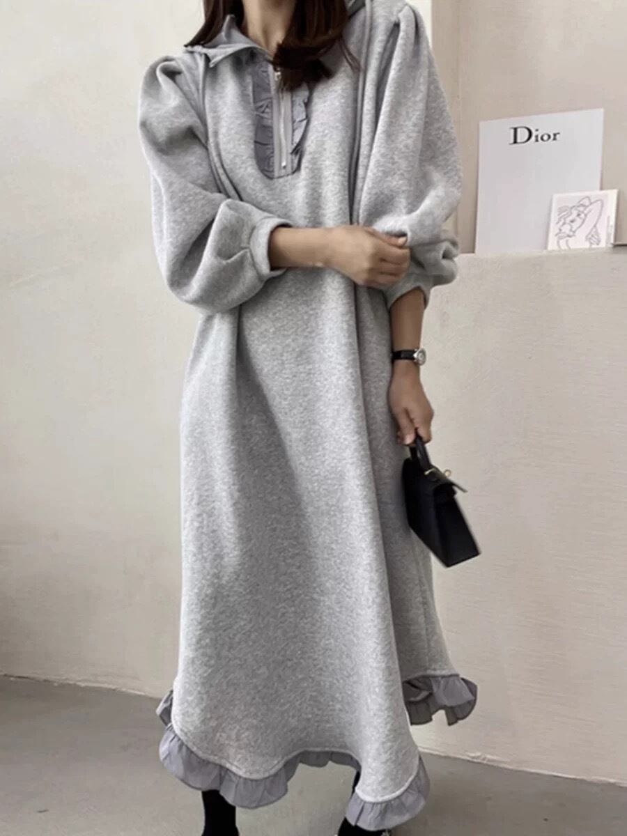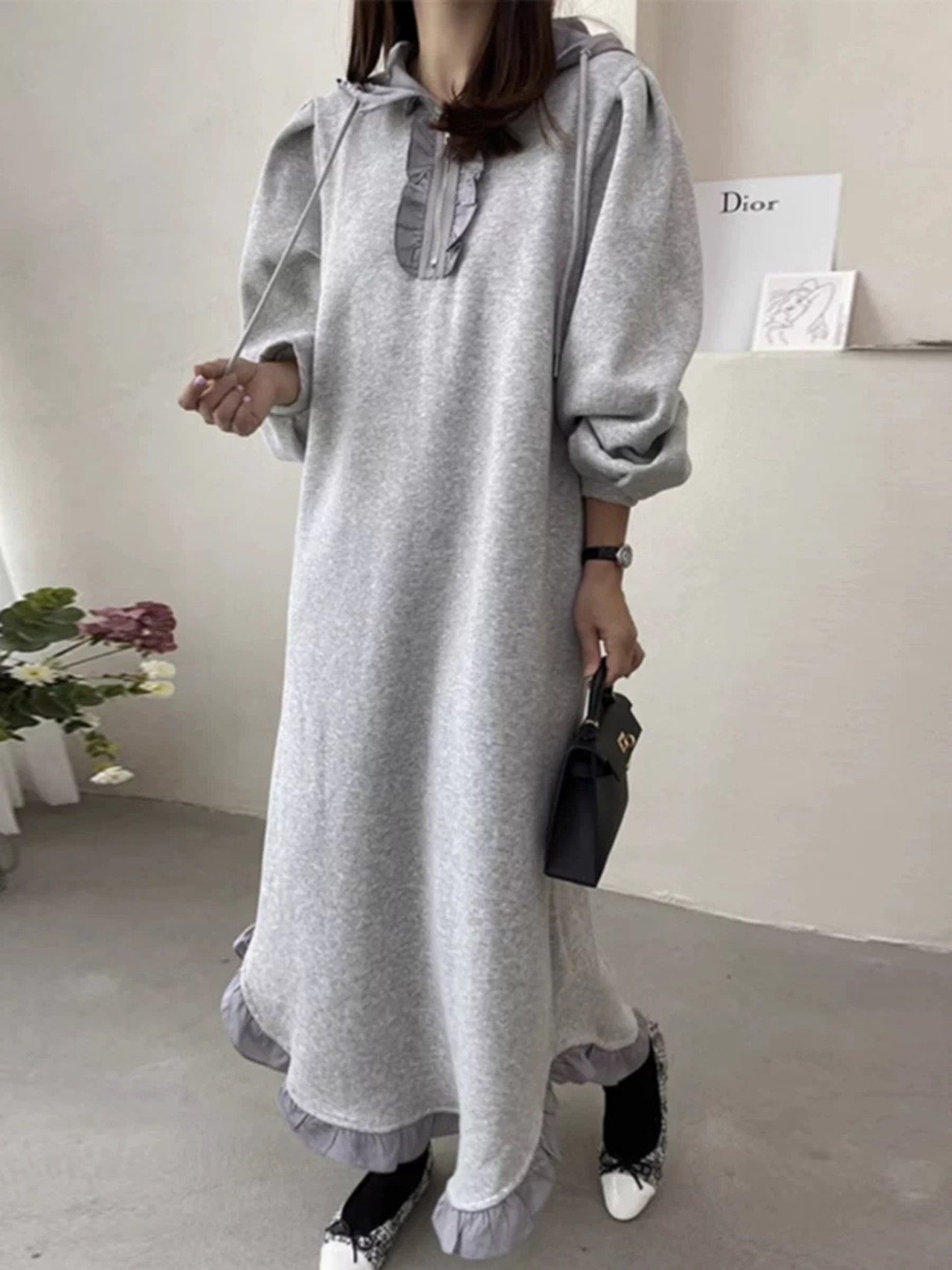 スウェット グレー 黒 パーカー フード ワンピース カジュアル マキシ トレーナー パーカー XL
