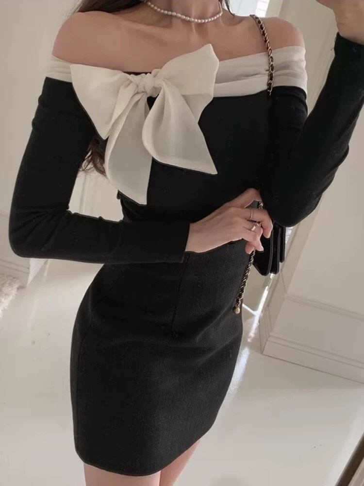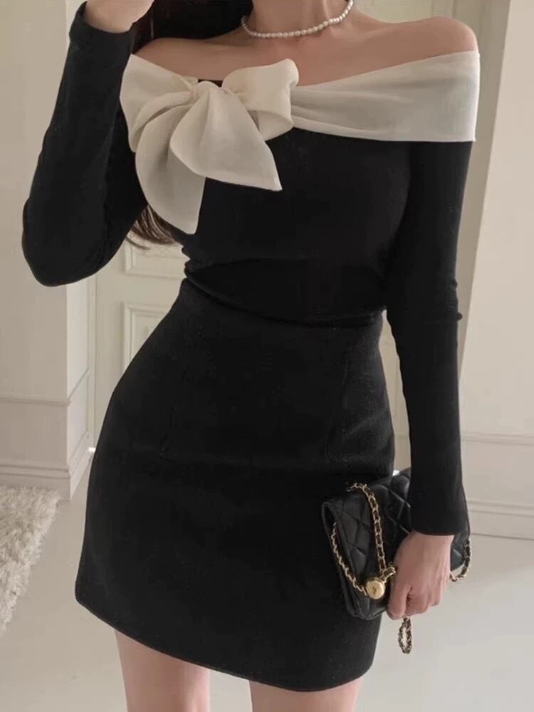 オフショルダー ピンク リボン ブラウス トップス 黒 セクシー エレガント Tシャツ