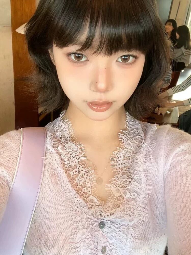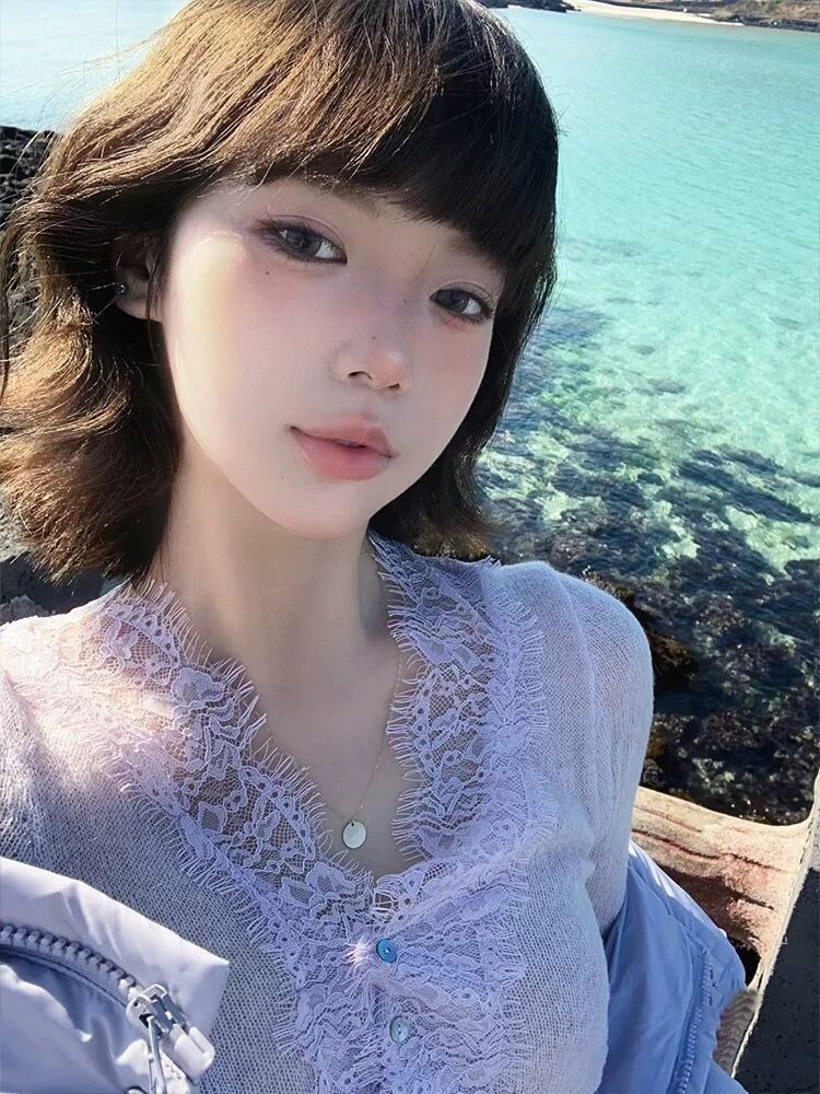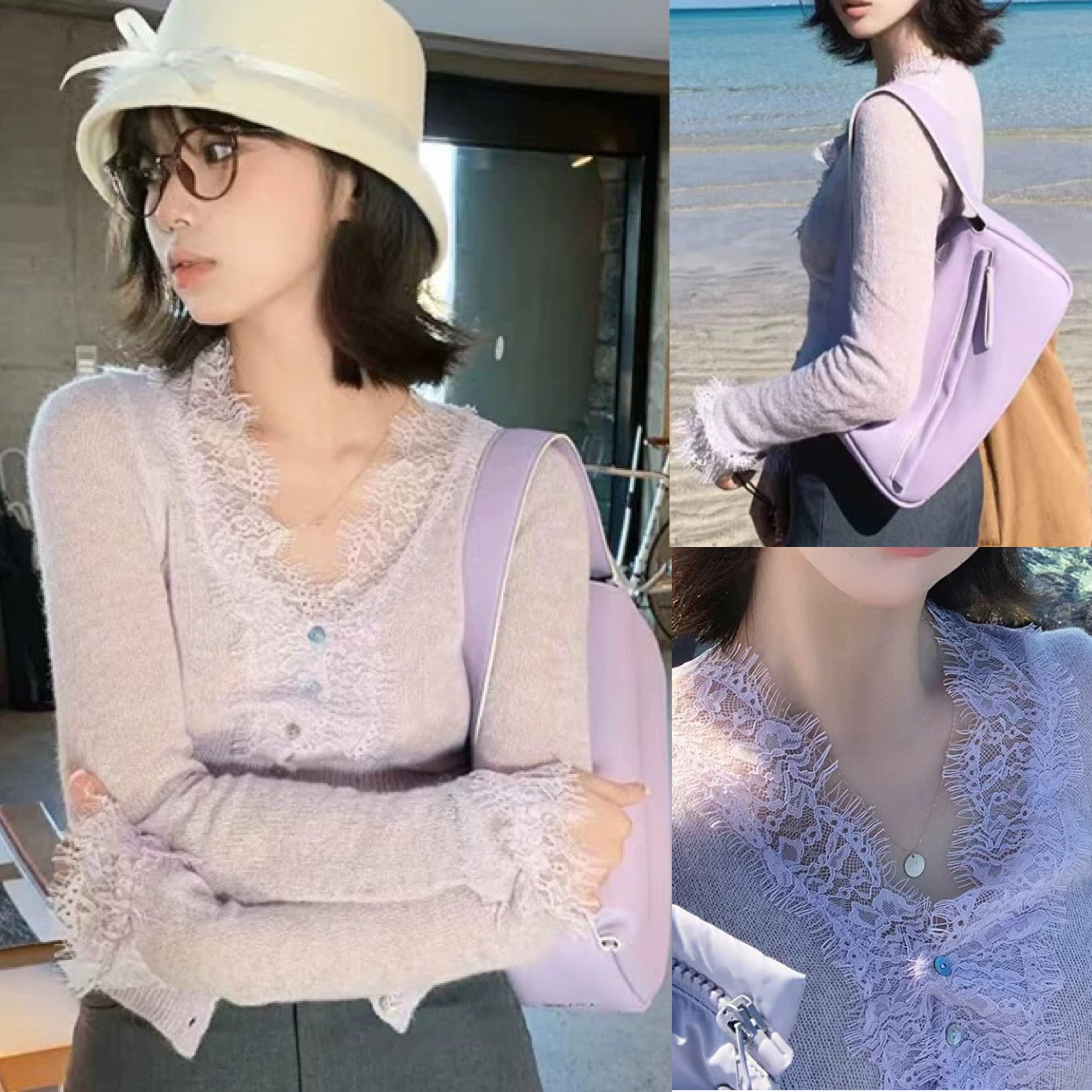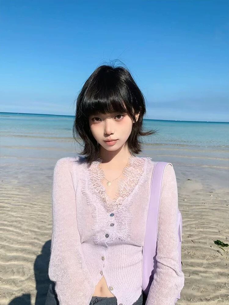 カーディガン 紫 レース シースル トップス アウター ガーリー セーター ブラウス ニット