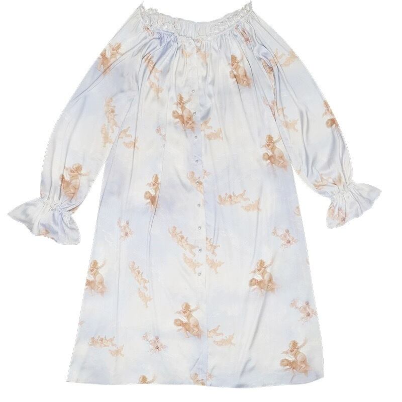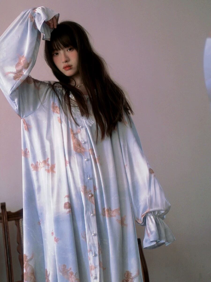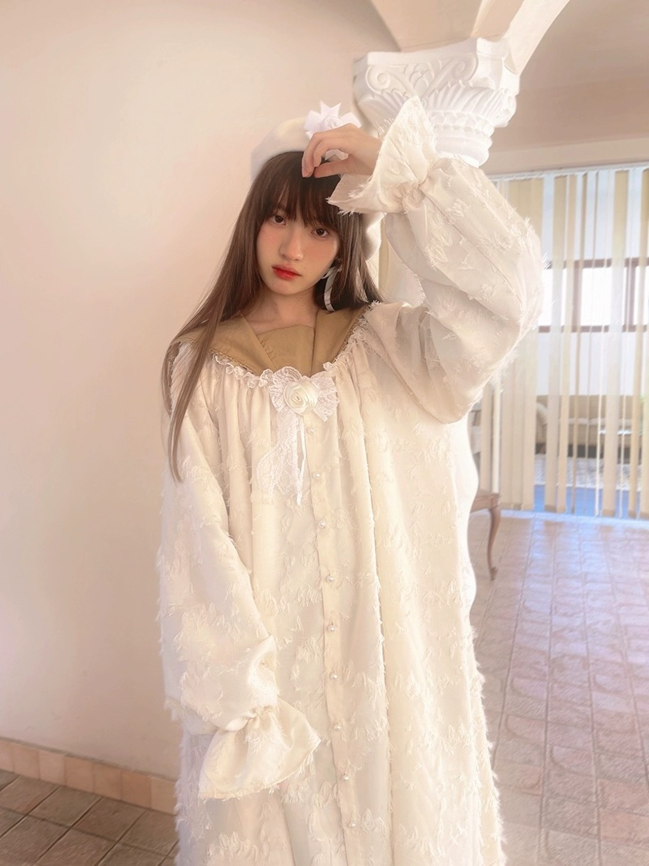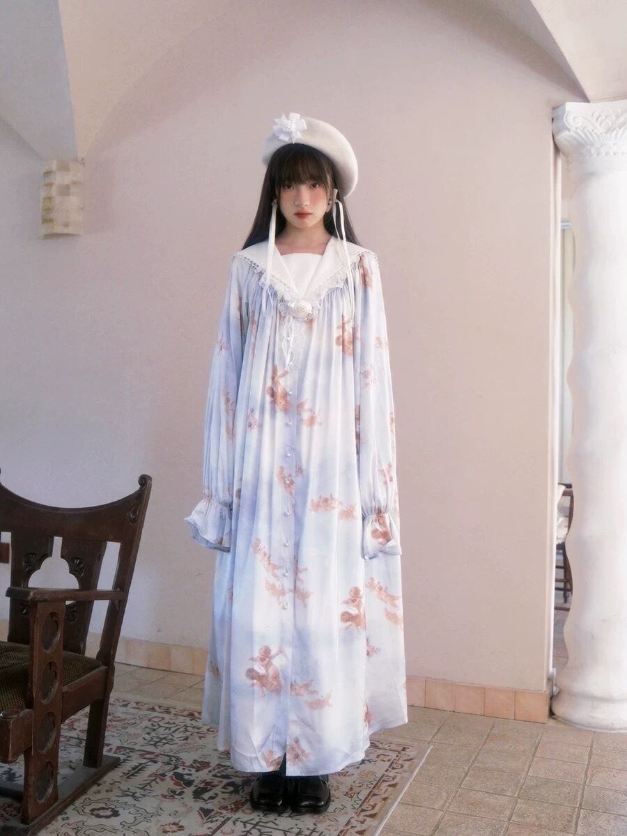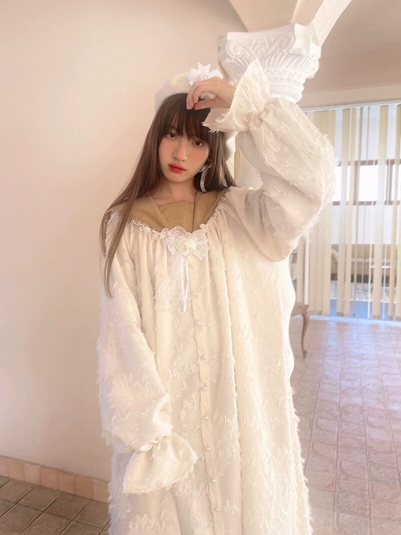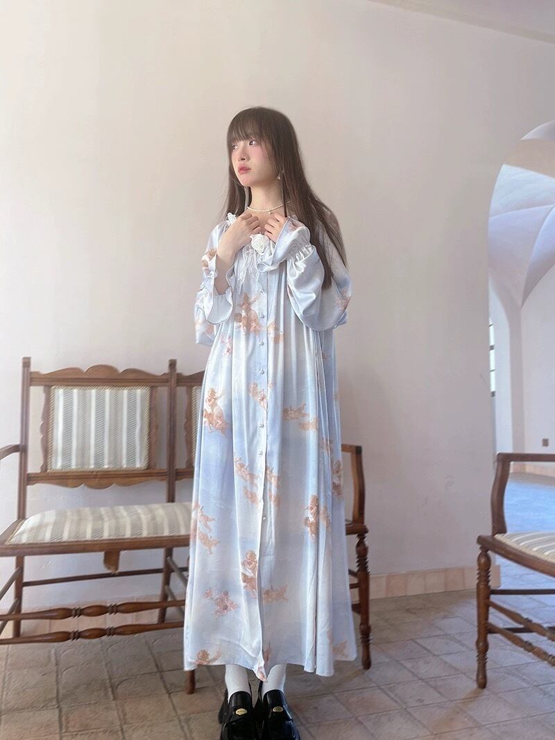 【2way】ロングカーディガン 白 水色 ガーリー ワンピース マキシ ブラウス スカート ガーリー 可愛い 姫 天使 ロリータ ブラウス