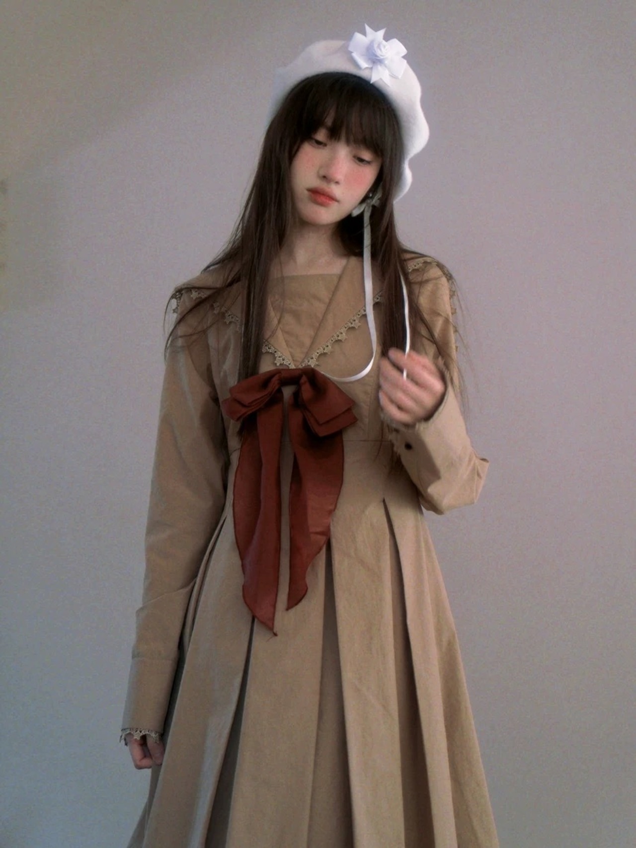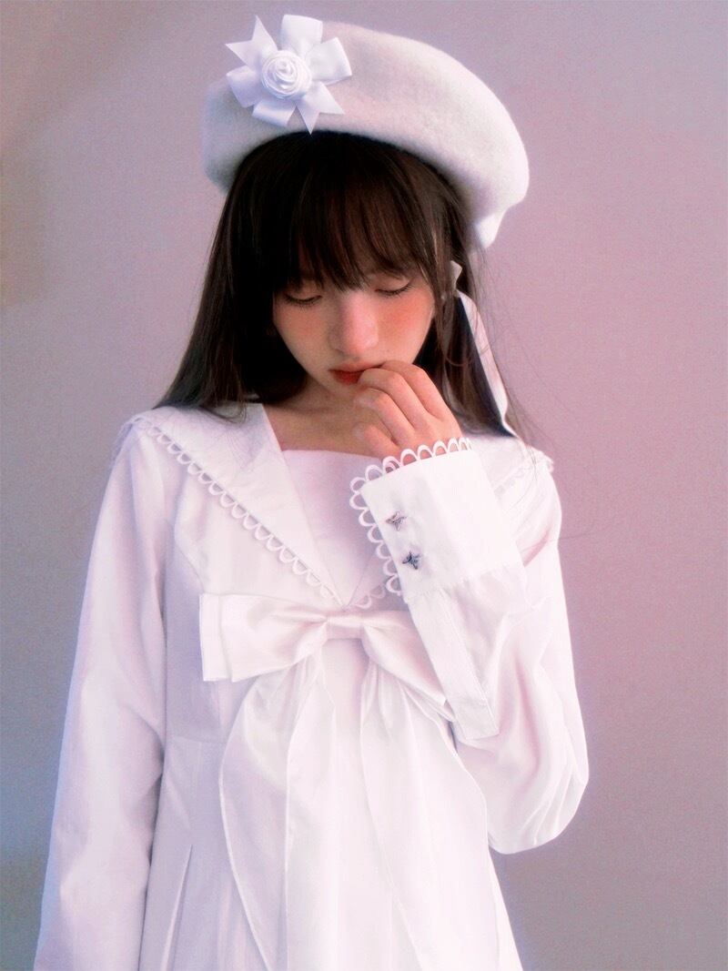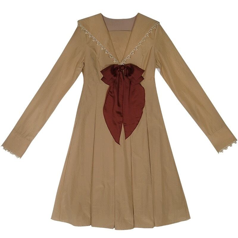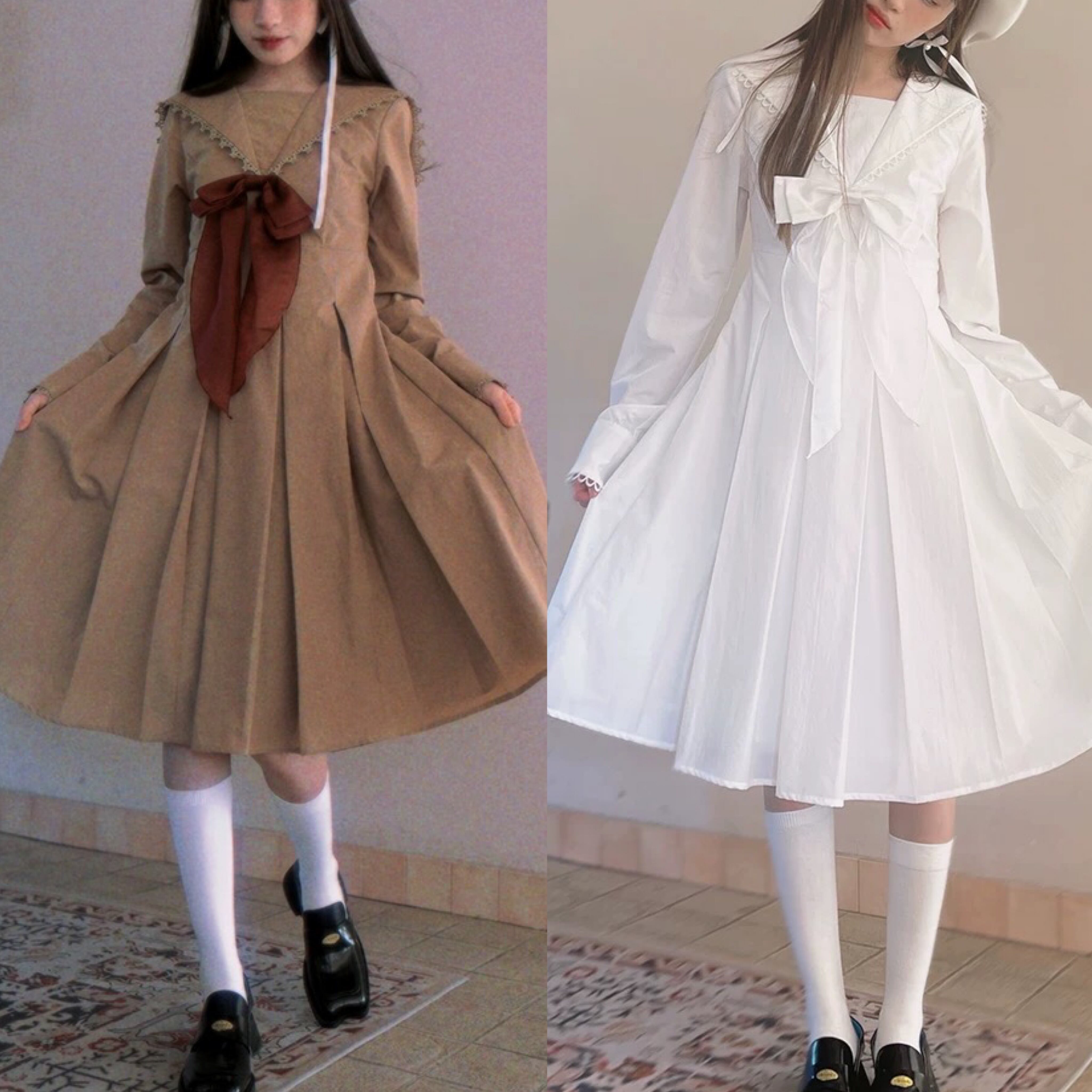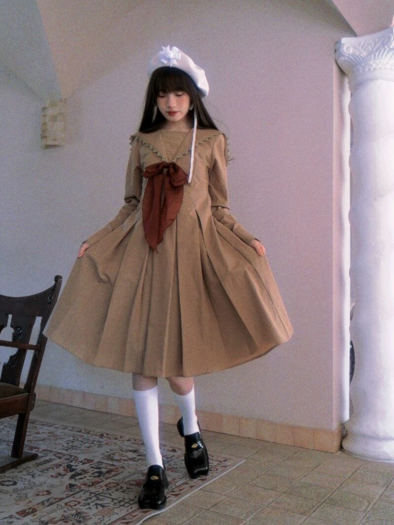 ワンピース 茶色 白 ガーリー 姫 セーラ 原宿 セーラー服 リボン 赤 ホワイト ブラウス スカート 姫 ロリータ
