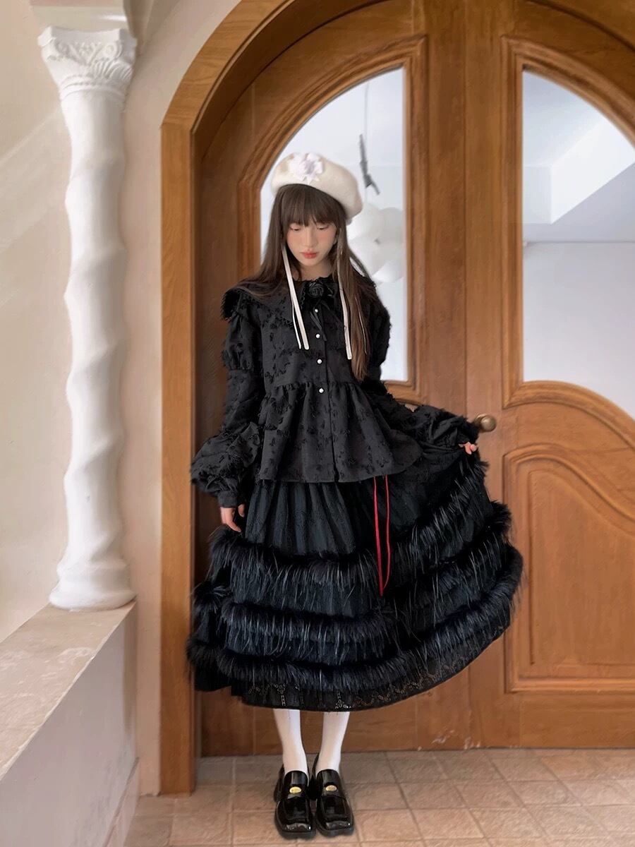スカート フレア マキシ ロング フェザー 羽根 フリル ボトムス