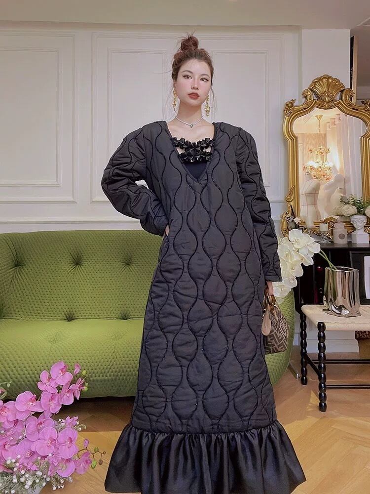 暖かい ワンピース 黒 ブラック ゆったり マキシ セーター パーカー トレーナー カジュアル チェック