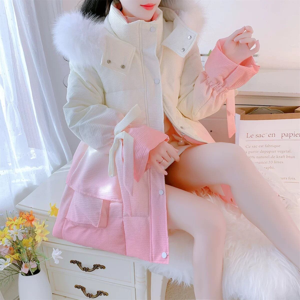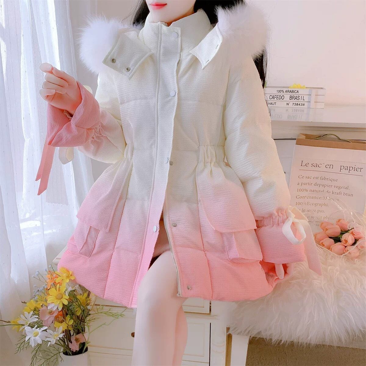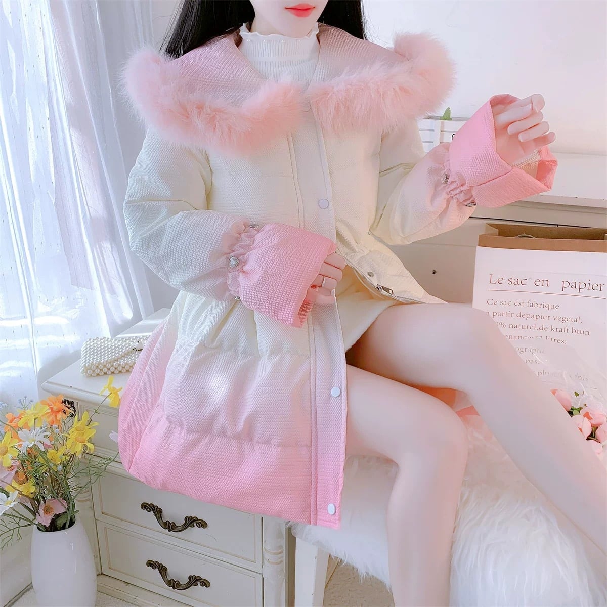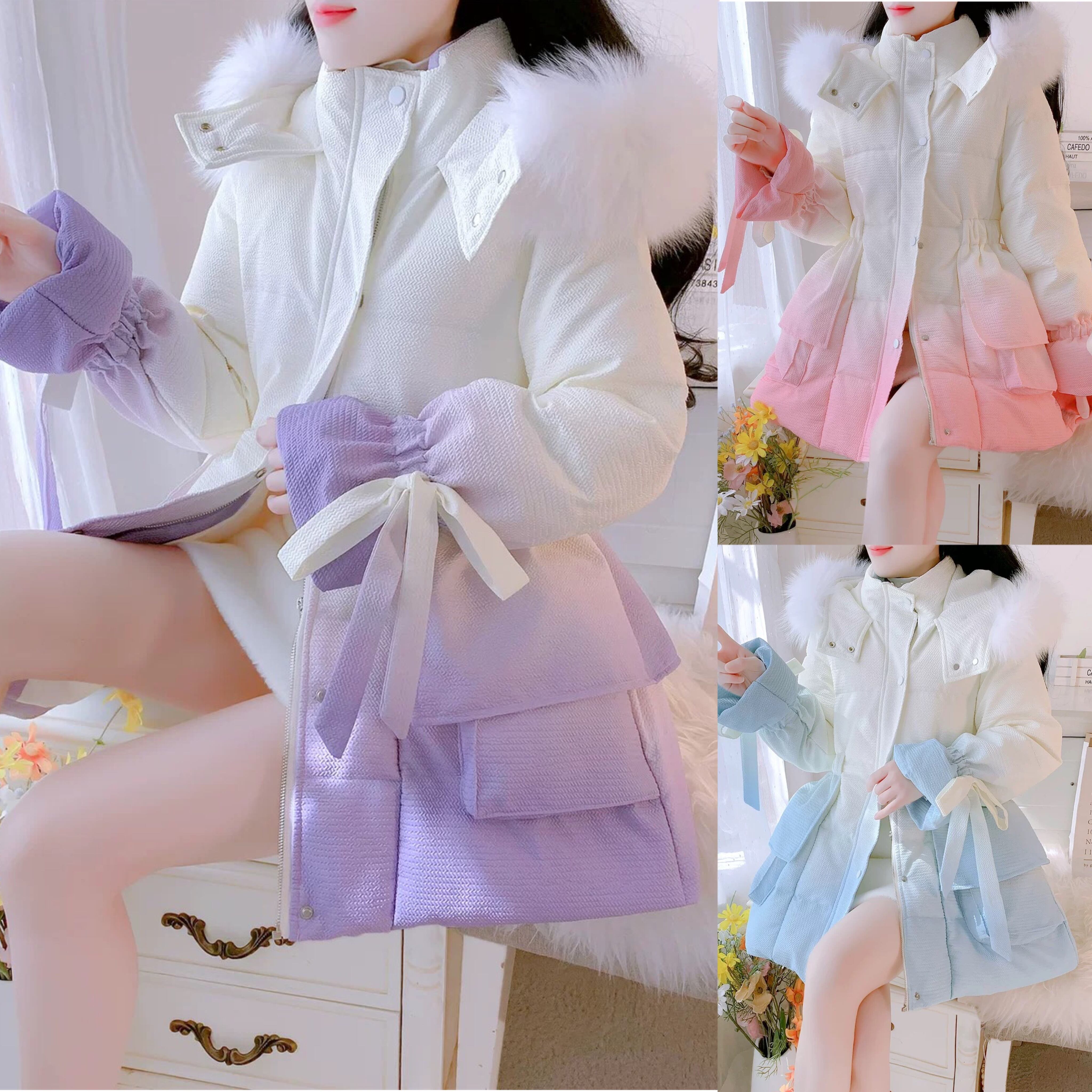 グラデーション コート パーカー ファー フード ピンク 水色 紫 ガーリー アウター コート カーディガン ジャケット 可愛い ガーリー ダウン