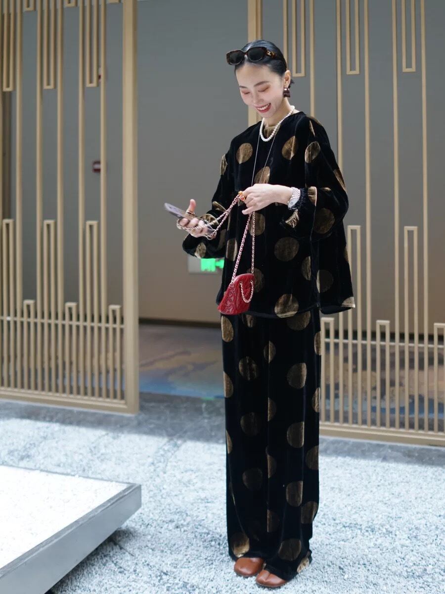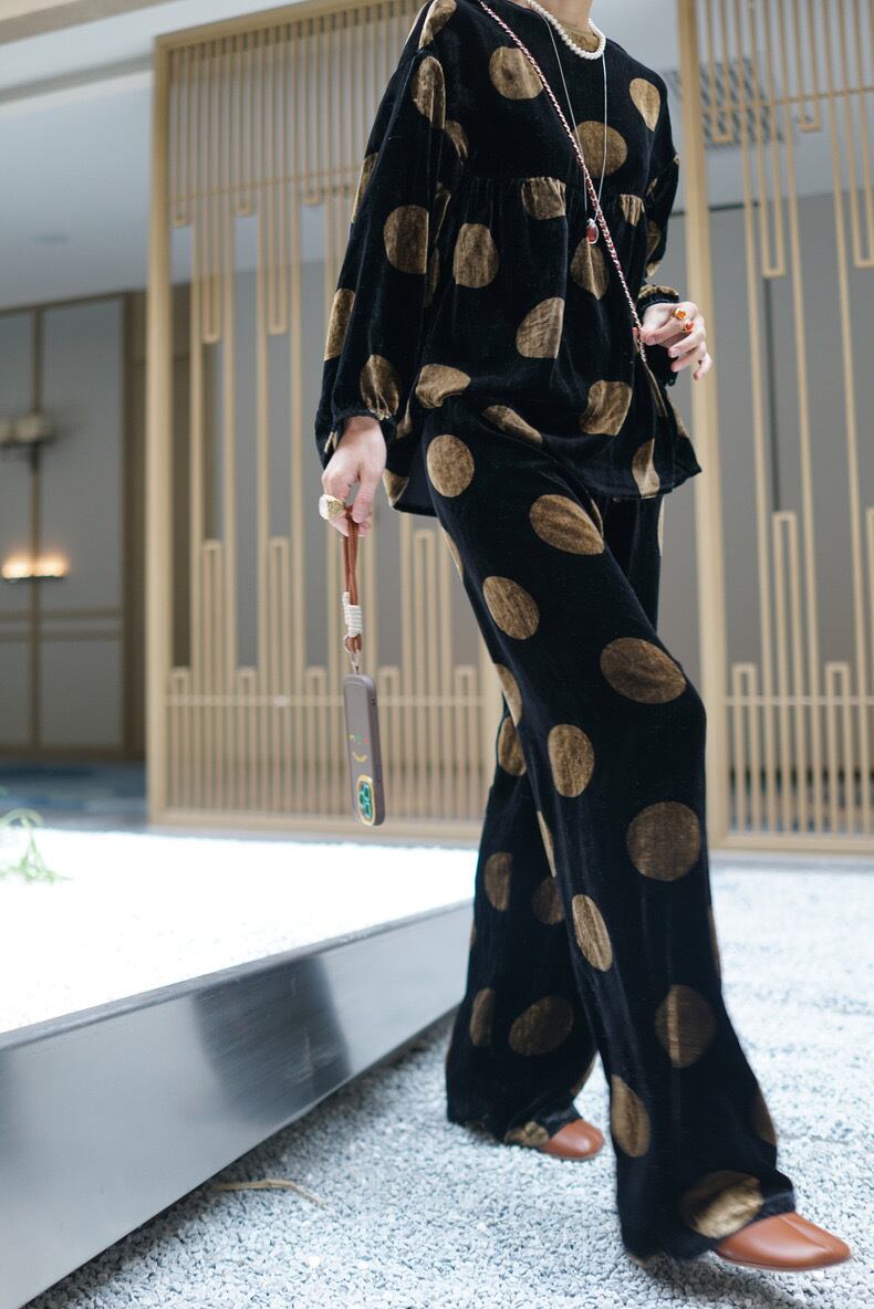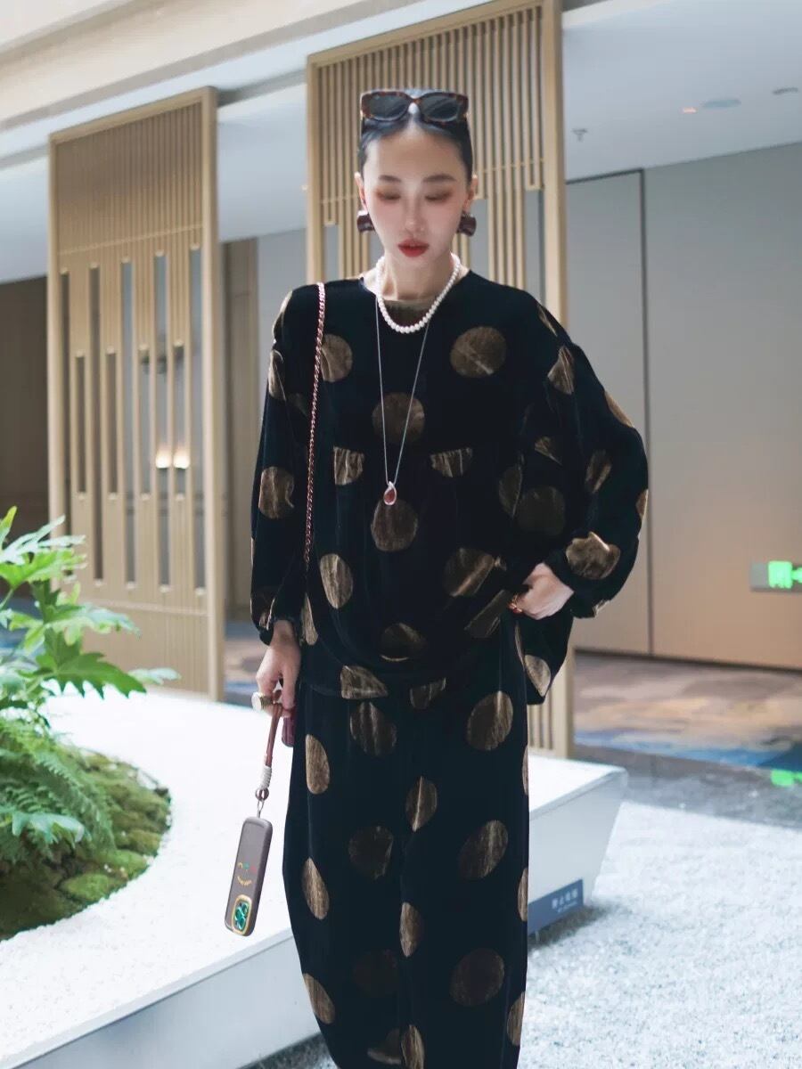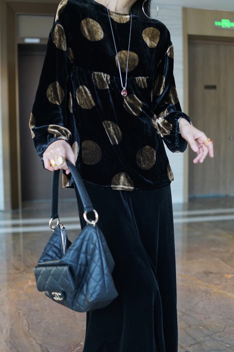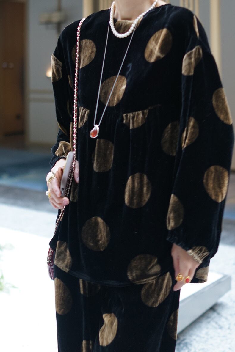 【トップス】黒 水玉 ゆったり トップス ブラウス ゴールド 金 ゆったり チュニック セーター カーディガン