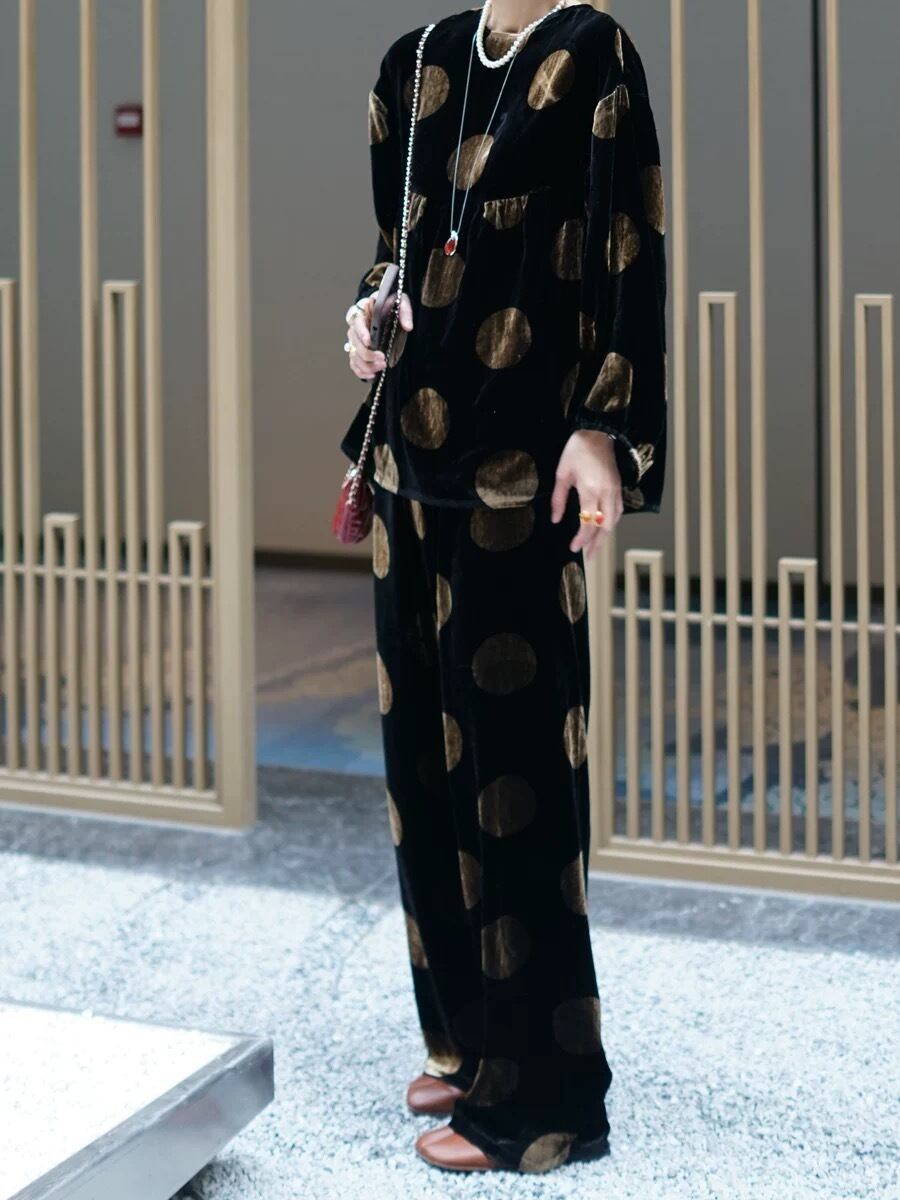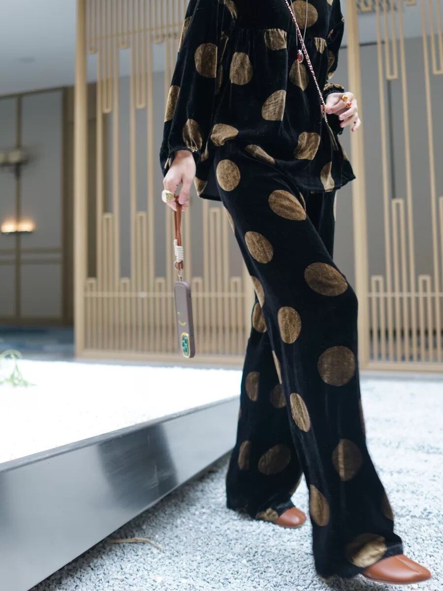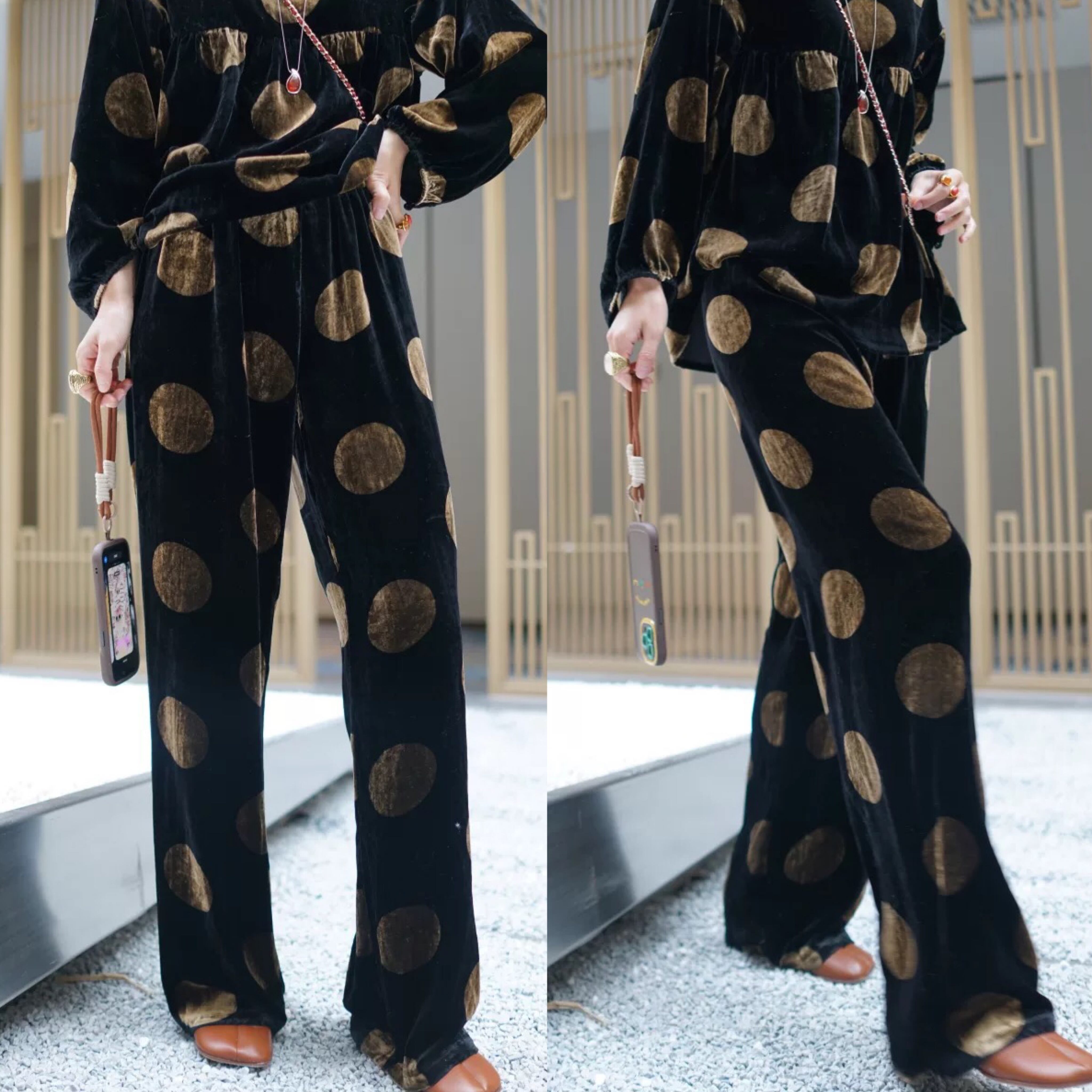 【ボトムス】黒 ブラック 水玉 ドット 金 ゴージャス ゴールド ゆったり パンツ スウェット カジュアル