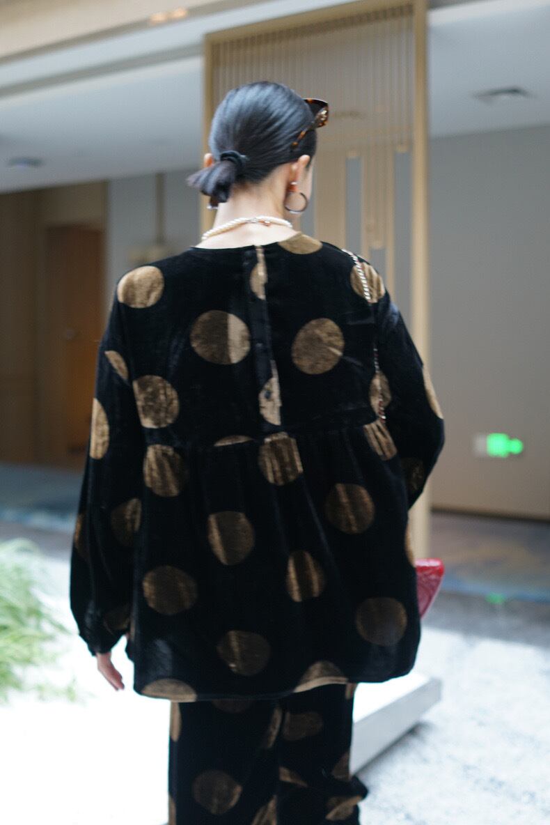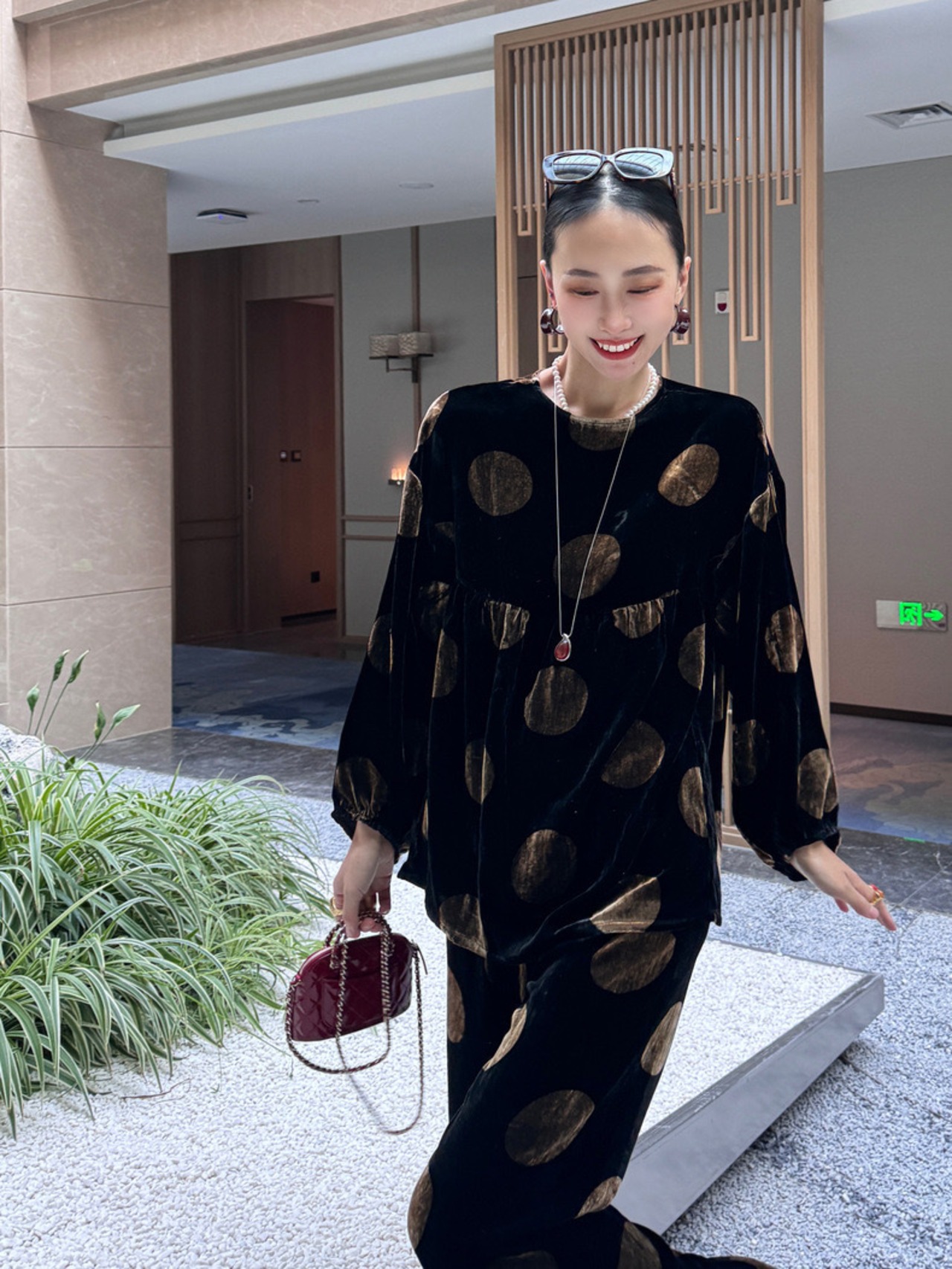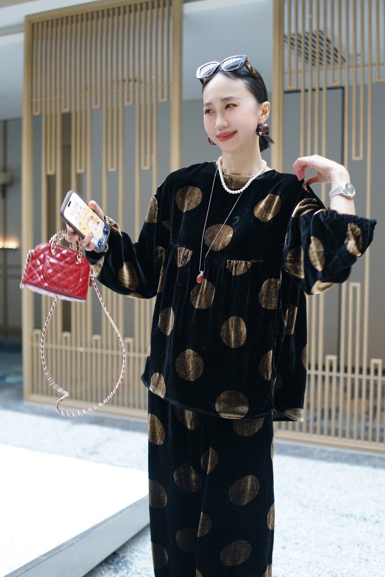 【ボトムス】黒 ブラック 水玉 ドット 金 ゴージャス ゴールド ゆったり パンツ スウェット カジュアル