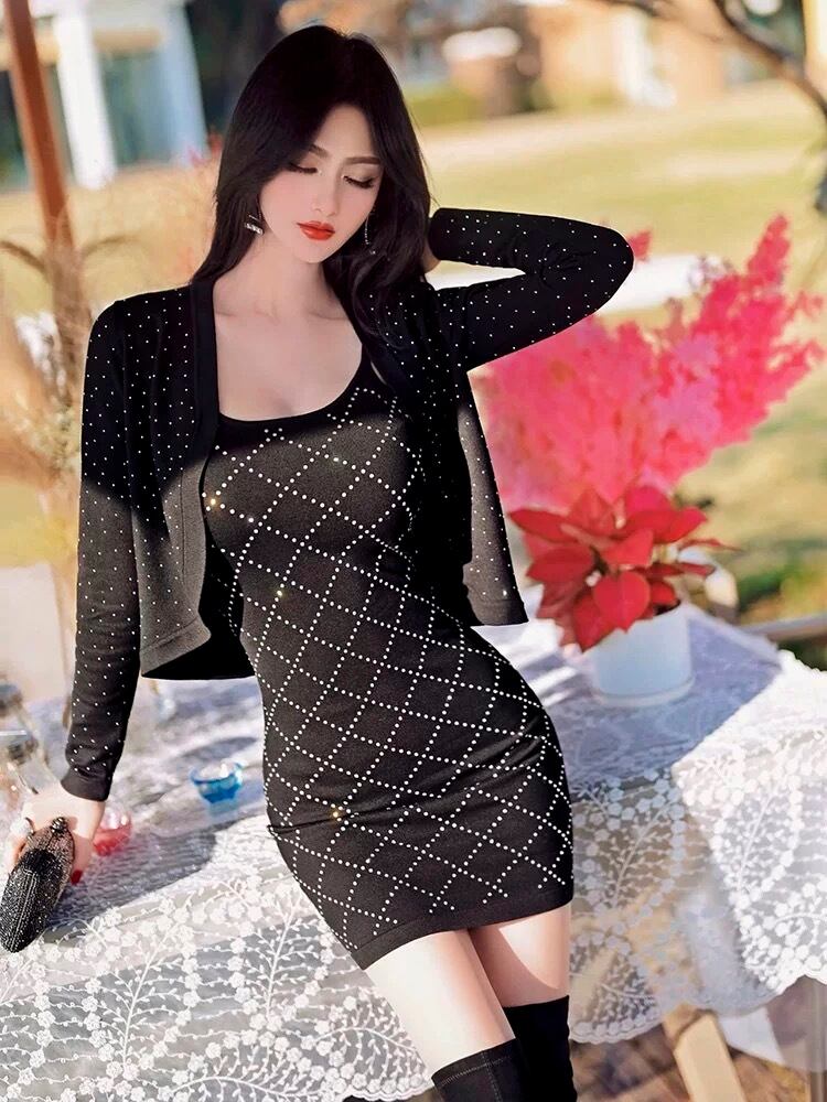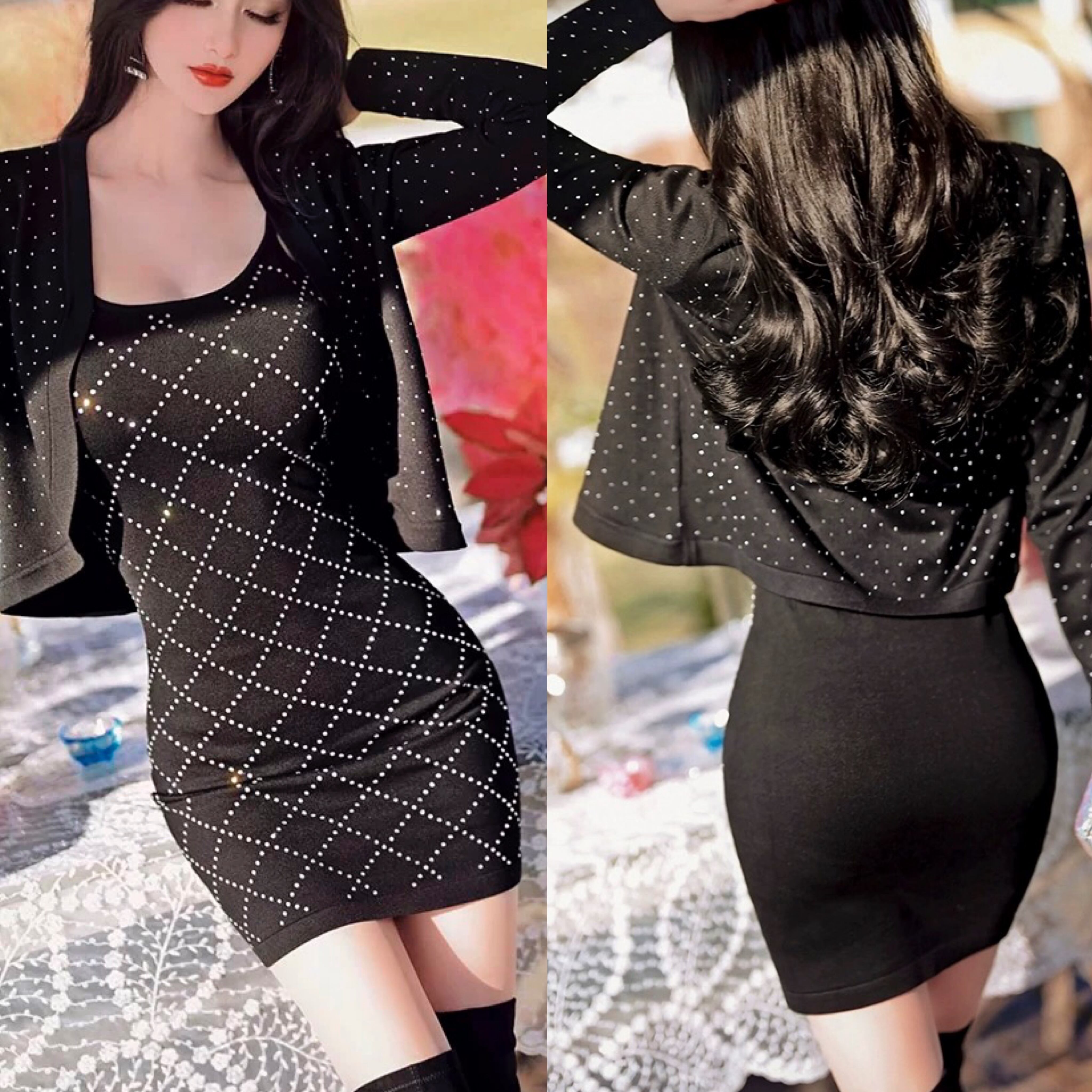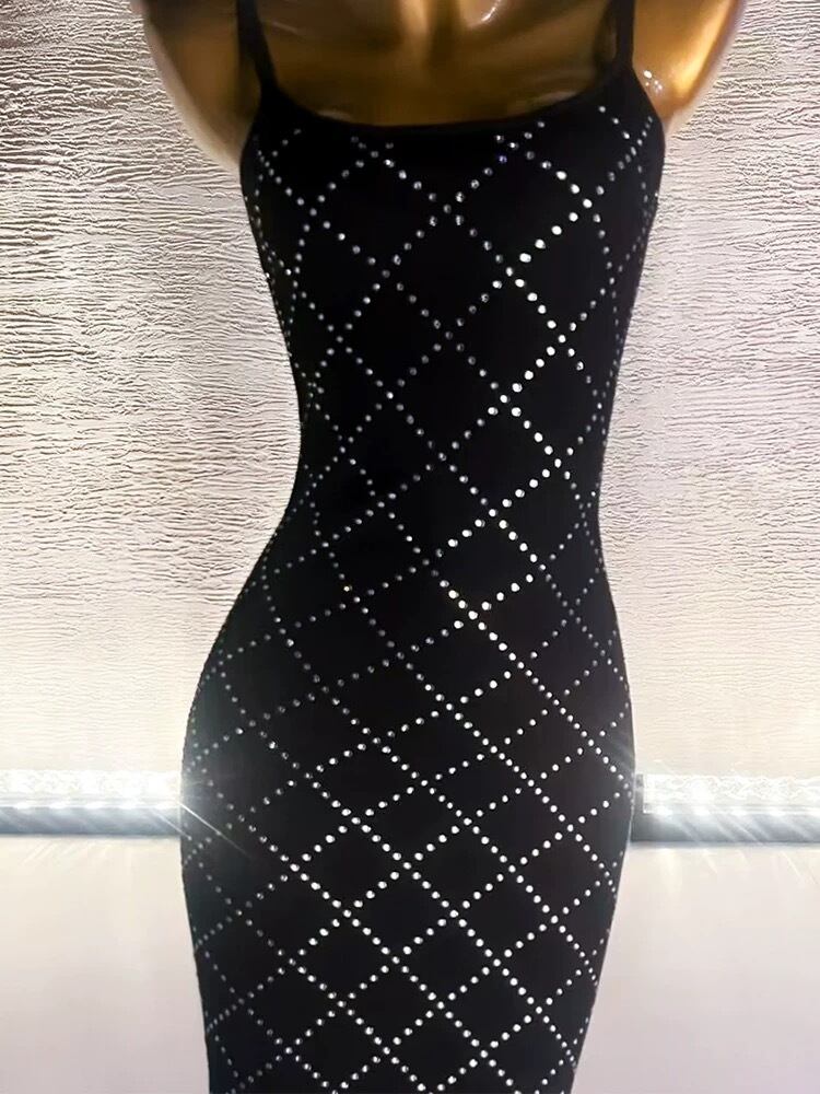 【ワンピース】黒 ブラック ワンピース XL キャミソール ラインストーン ブラック セクシー キラキラ ラメ ストリート 渋谷 ダンス クラブ