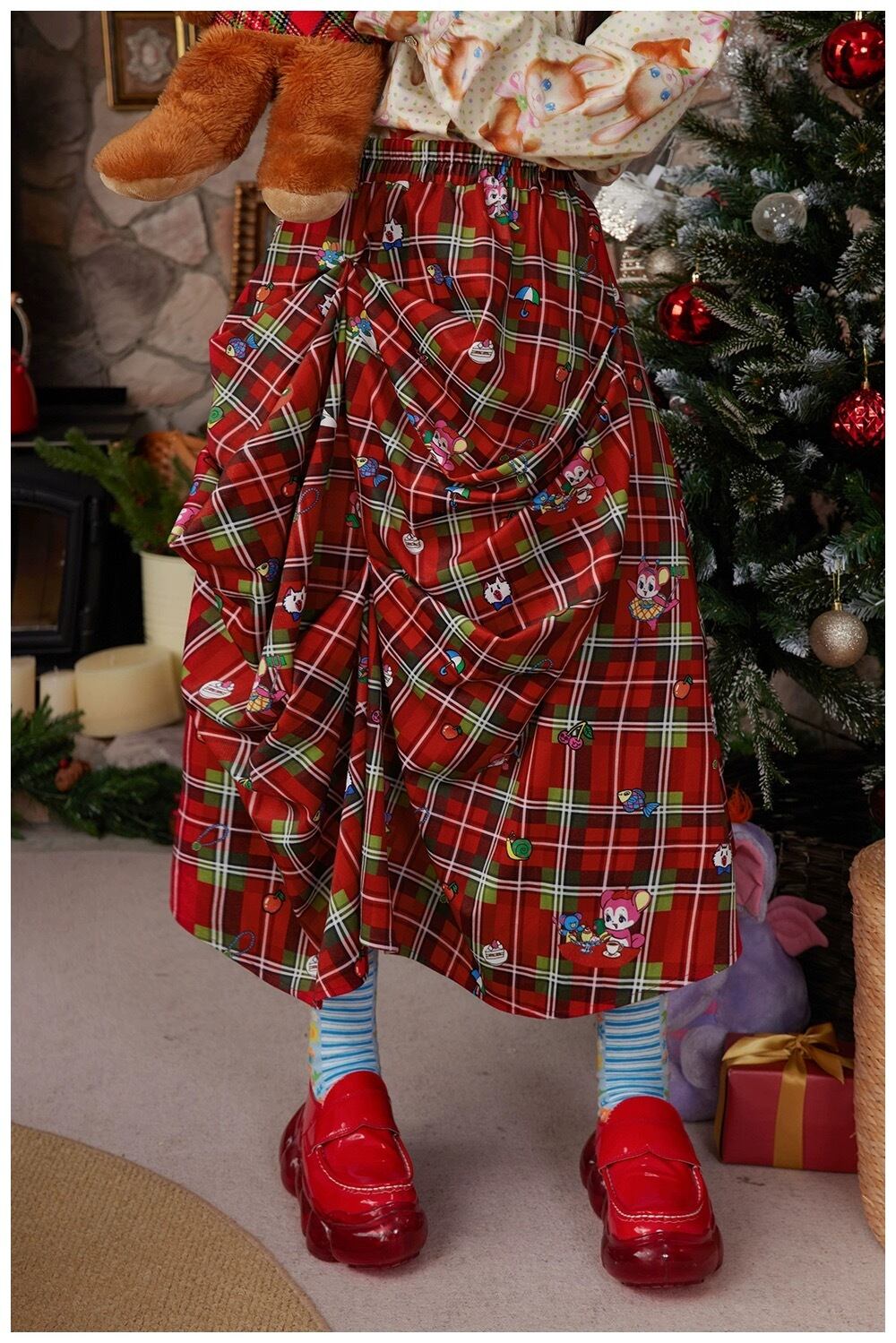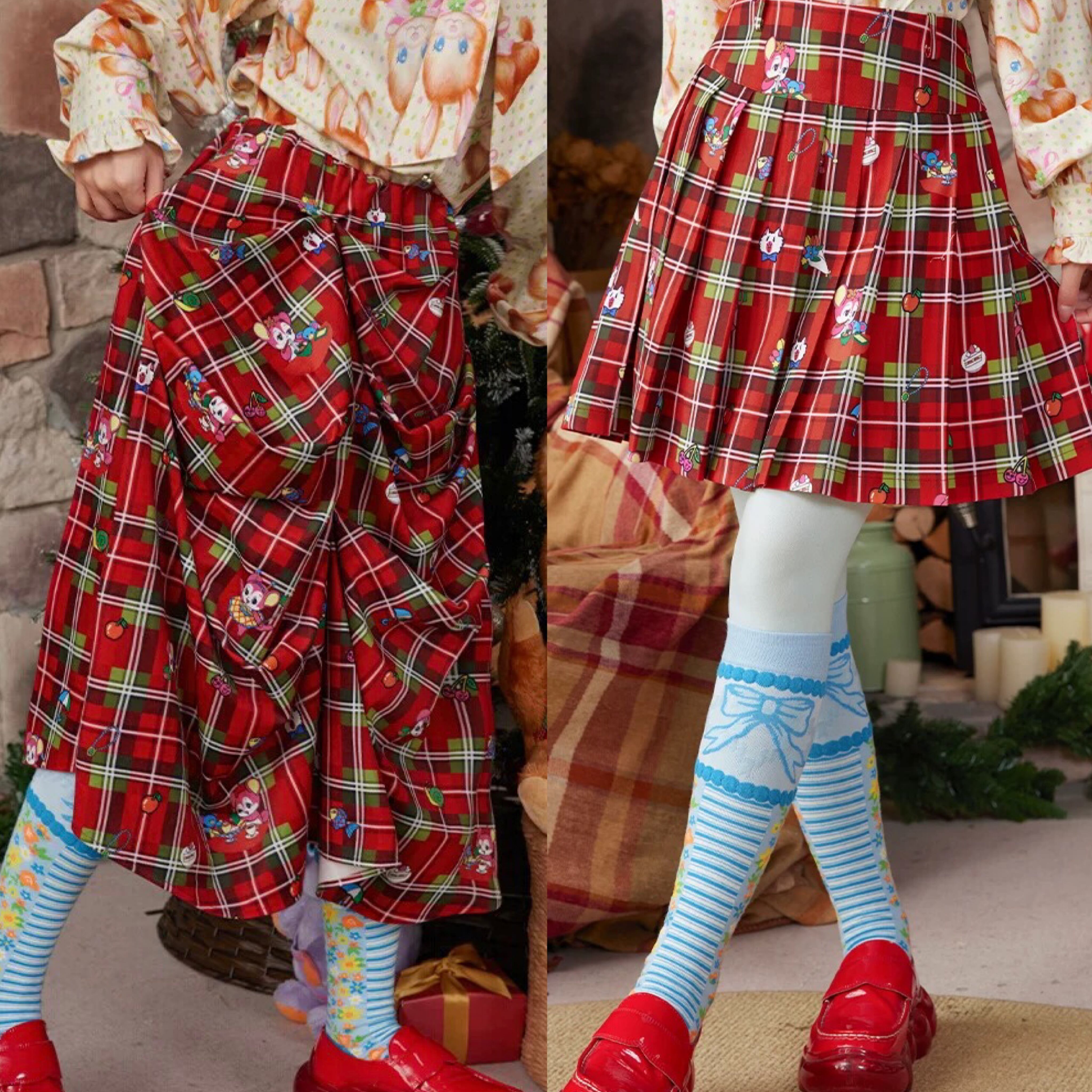 【スカート】赤 チェック ボトムス ガーリー 原宿 ミニスカート プリーツ 可愛い 古着 ボトムス