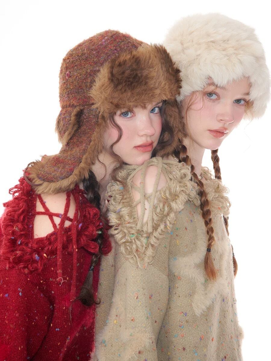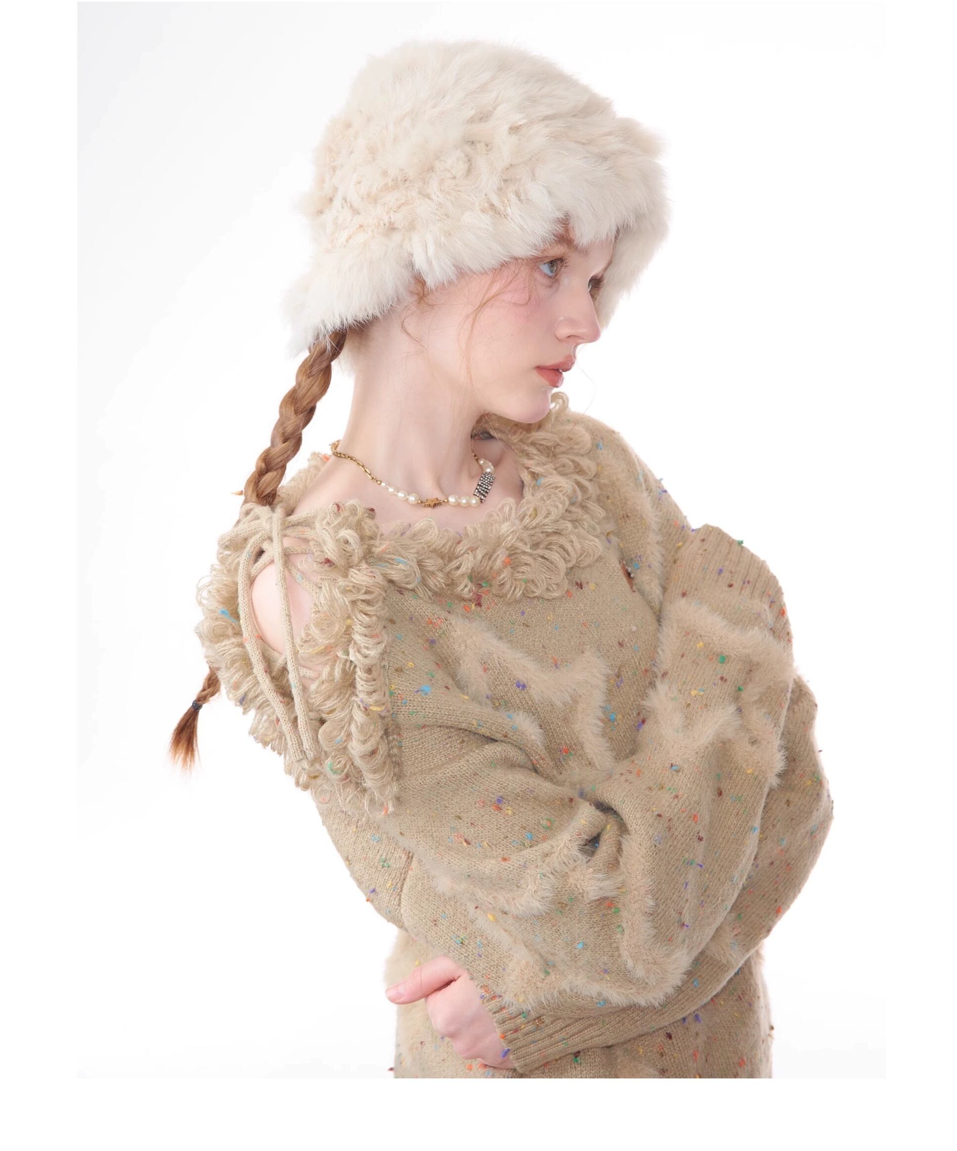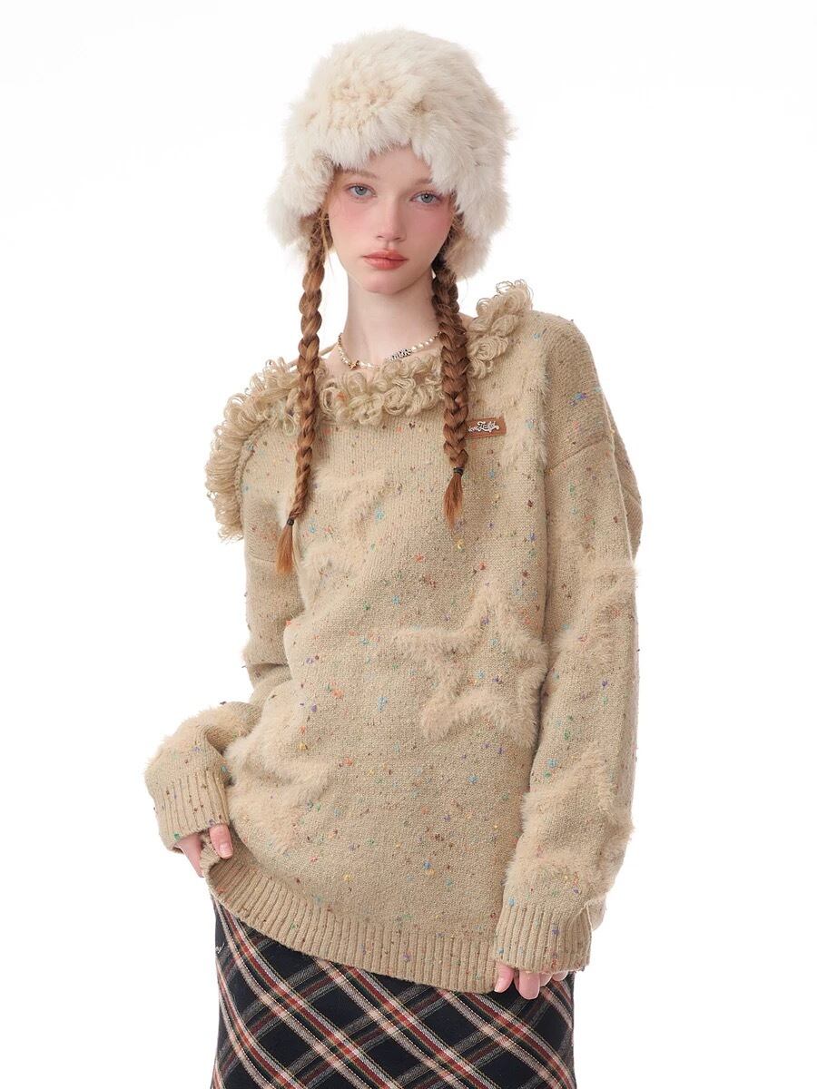 赤 ベージュ 星 ニット セーター カーディガン ゆったり オフショルダー リボン アウター トップス 水玉 原宿
