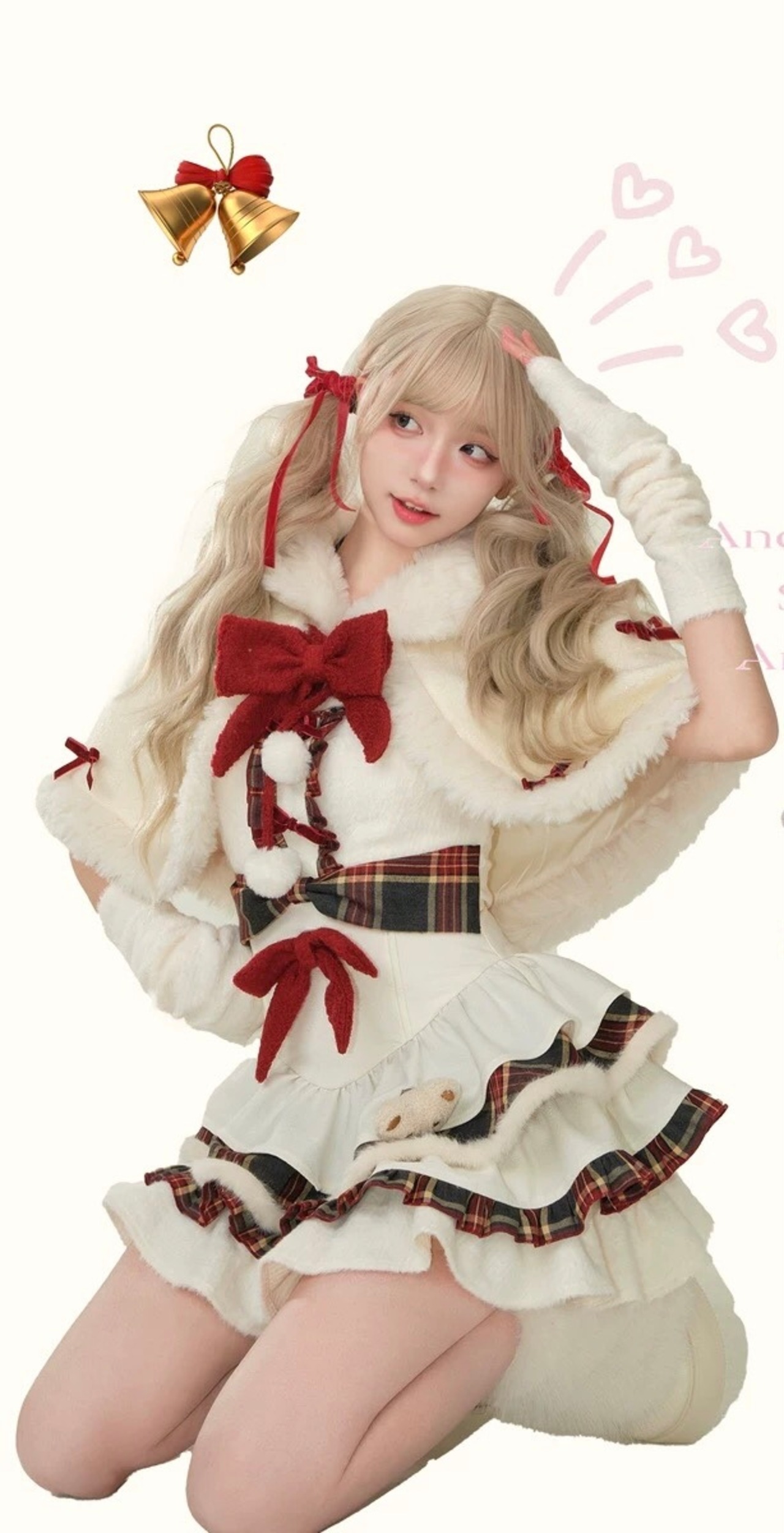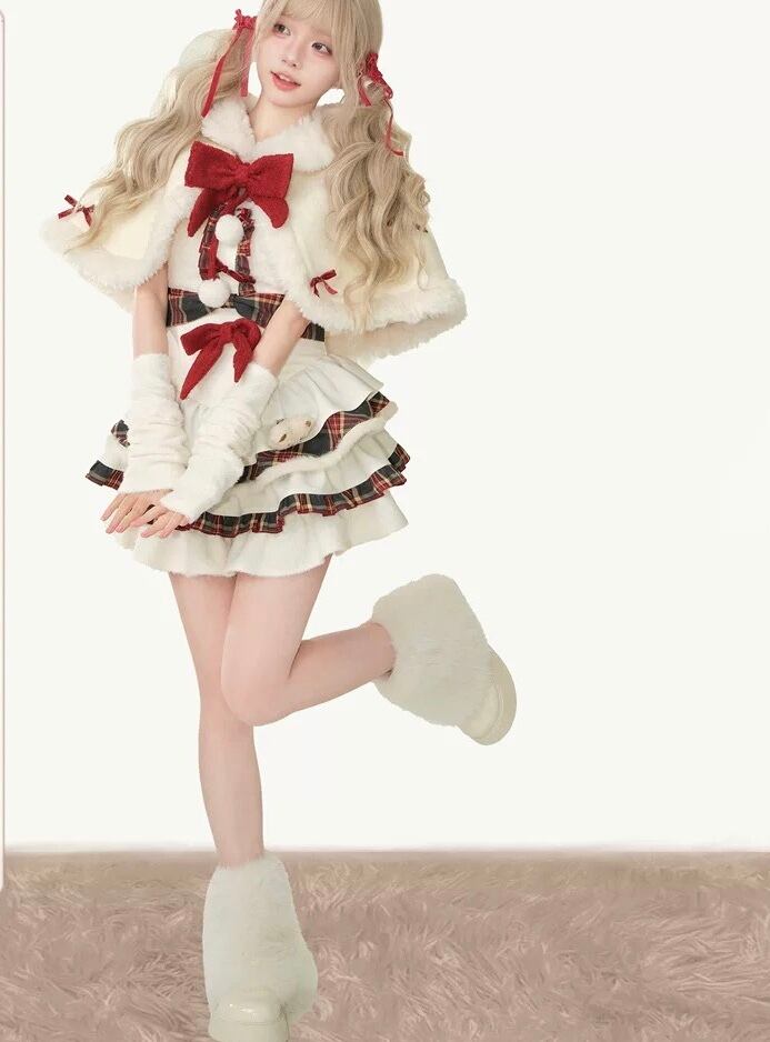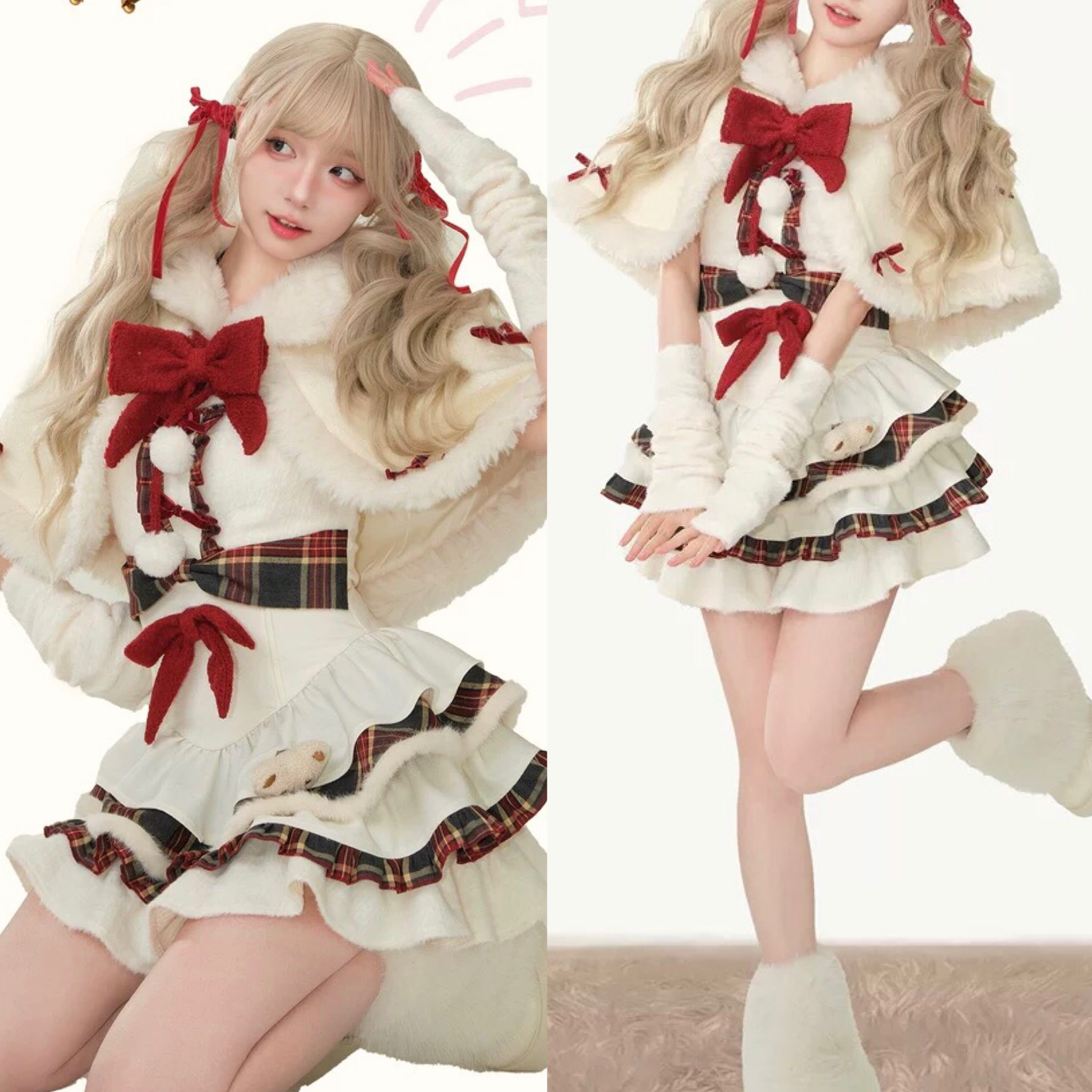 【ポンチョ】赤 リボン 白 パーカー コート アウター ジャケット カーディガン ガーリー 原宿 ロリータ 姫 コスプレ 秋葉原