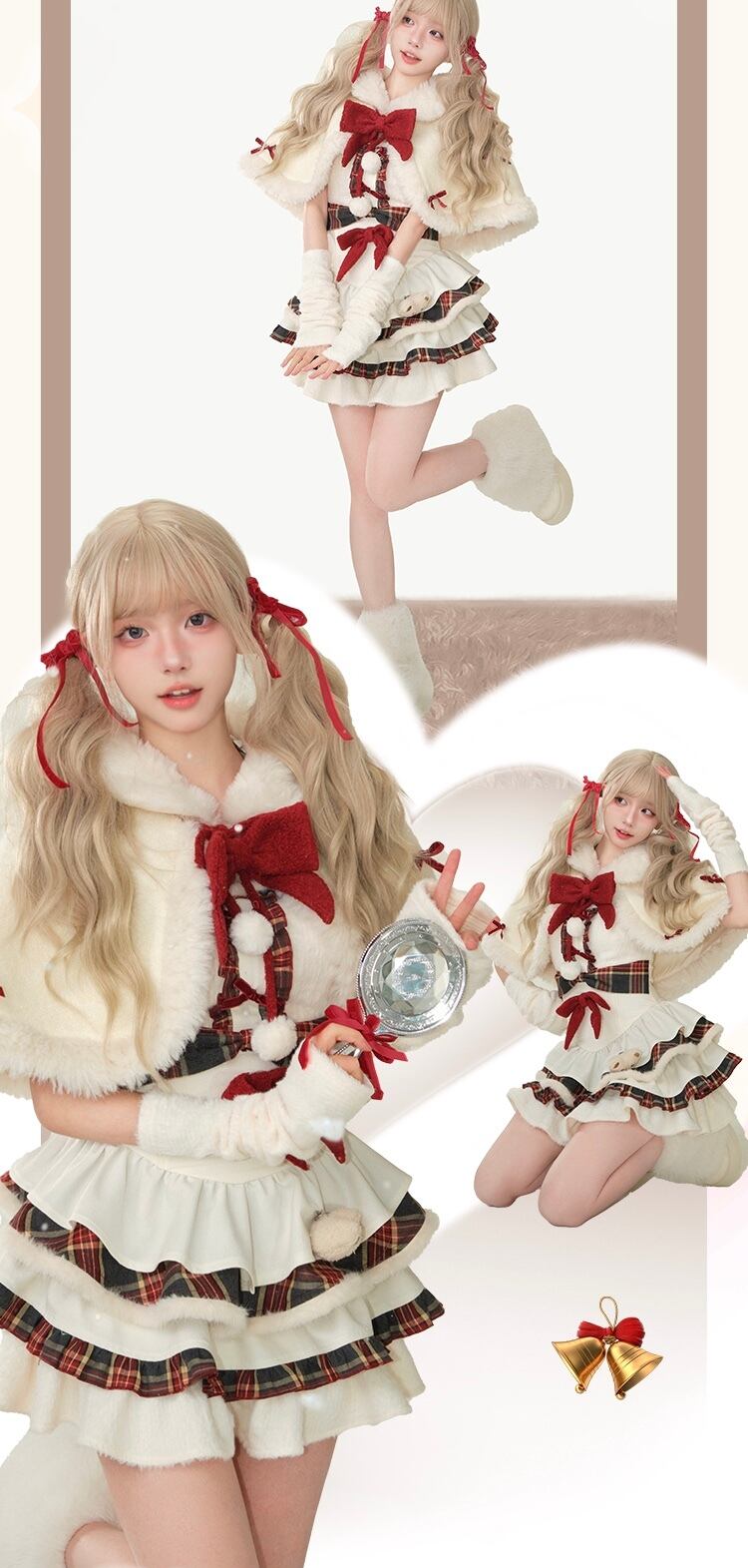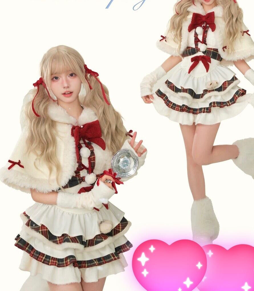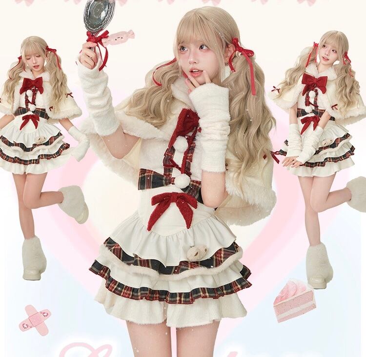 【ワンピース】赤 白 ガーリー 姫 ミニスカー原宿 ロリータ 白 チェック リボン