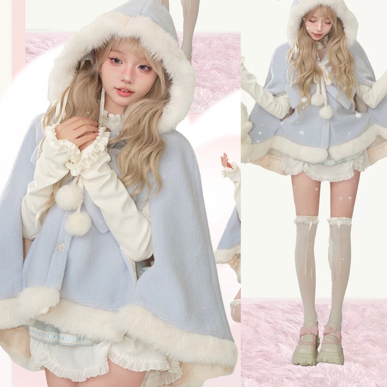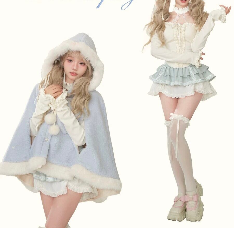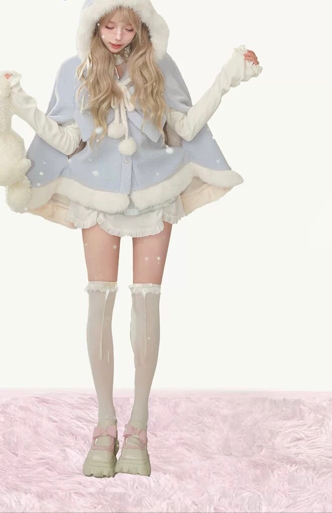 【ポンチョ】水色 ガーリー アウター カーディガン ジャケット コート リボン 白 姫 ロリータ 原宿 可愛い カーディガン アウタワンピース