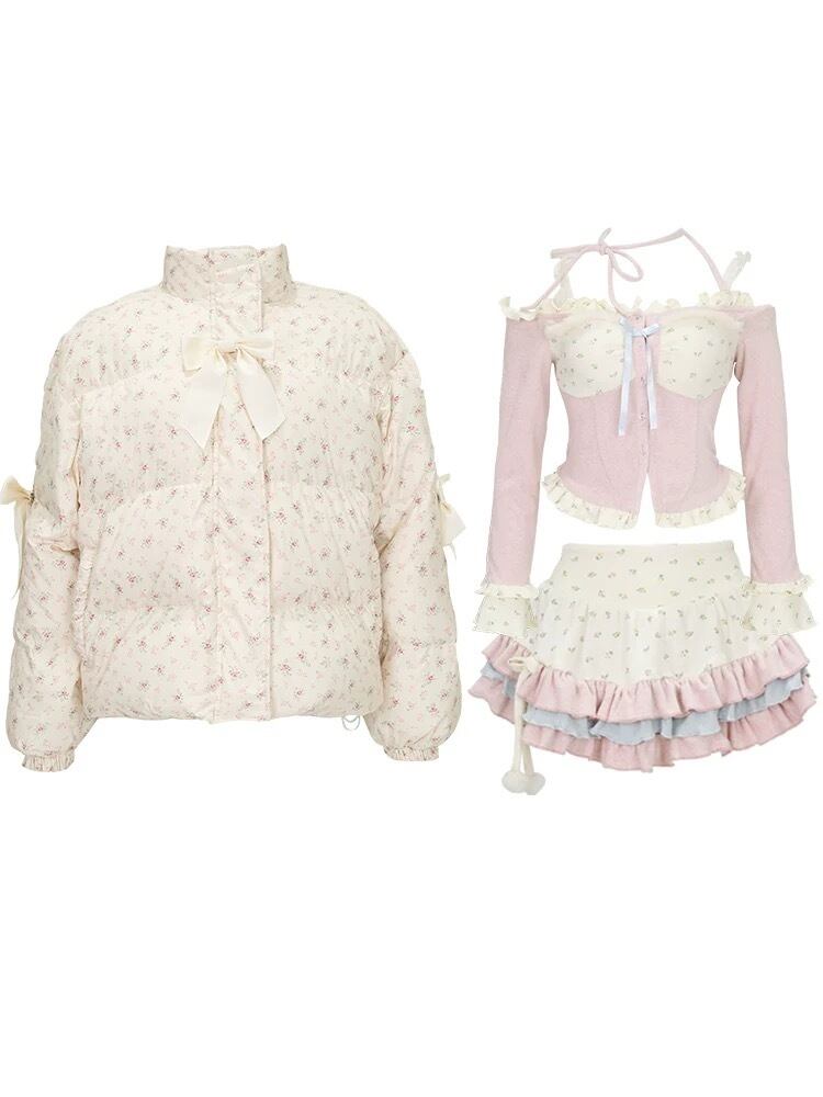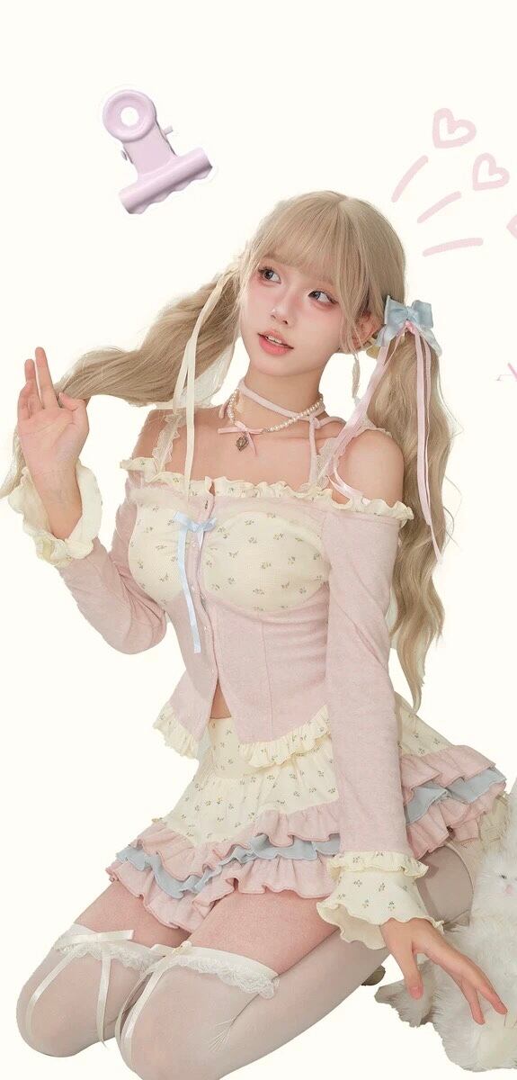 トップス ミニスカート ボトムス ピンガーリー オフショルダー リボン 姫 ロリータ 原宿 秋葉原 コスプレ ミニスカート 衣装