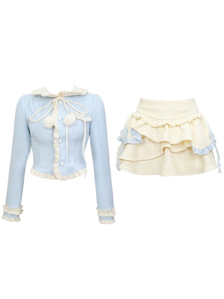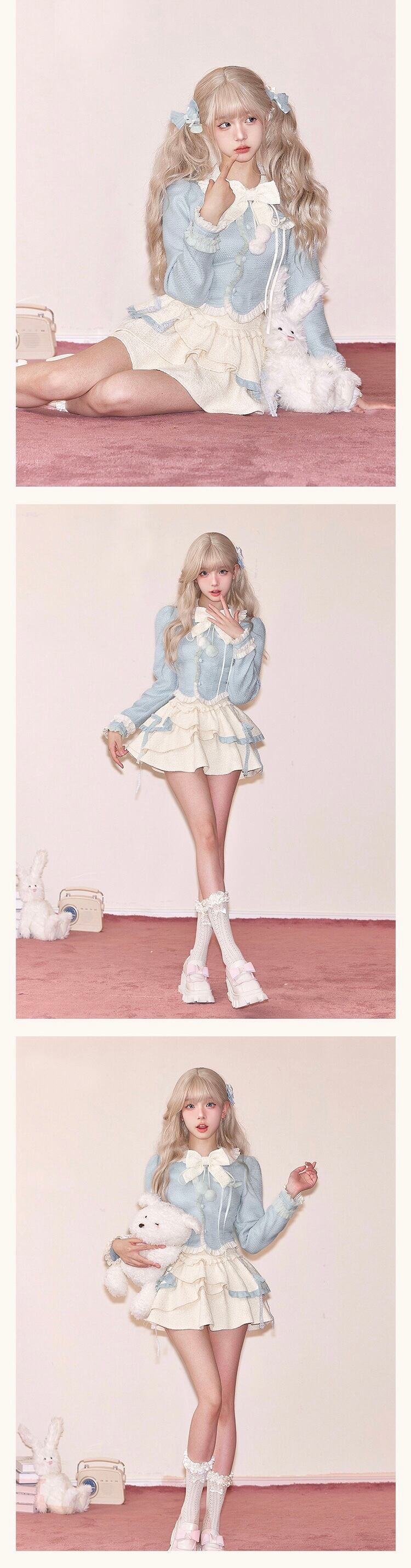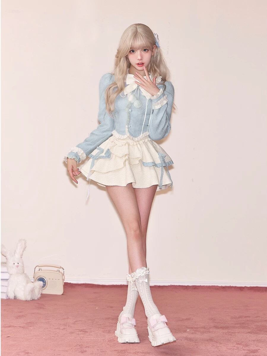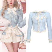 【トップス】水色 ガーリー リボン ジャケット アウター カーディガン リボン スクール 秋葉原 衣装 トップス ブラウス ぽんぽん