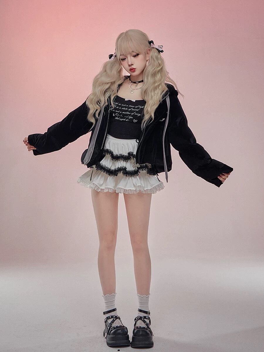 黒 ブラック アウター ジャケット ジャンパー コート カーディガン デビル リボン 原宿 姫 ロリータ ガーリー