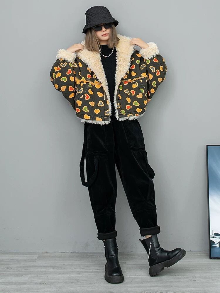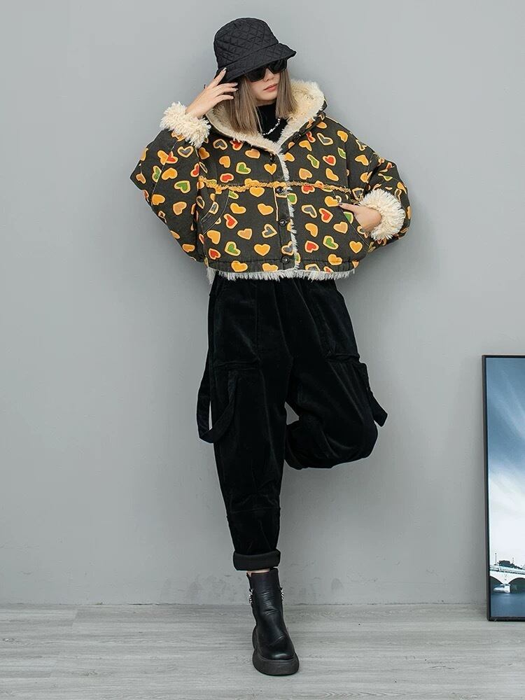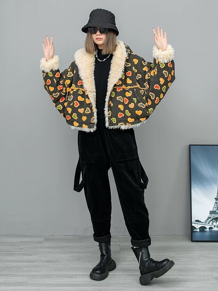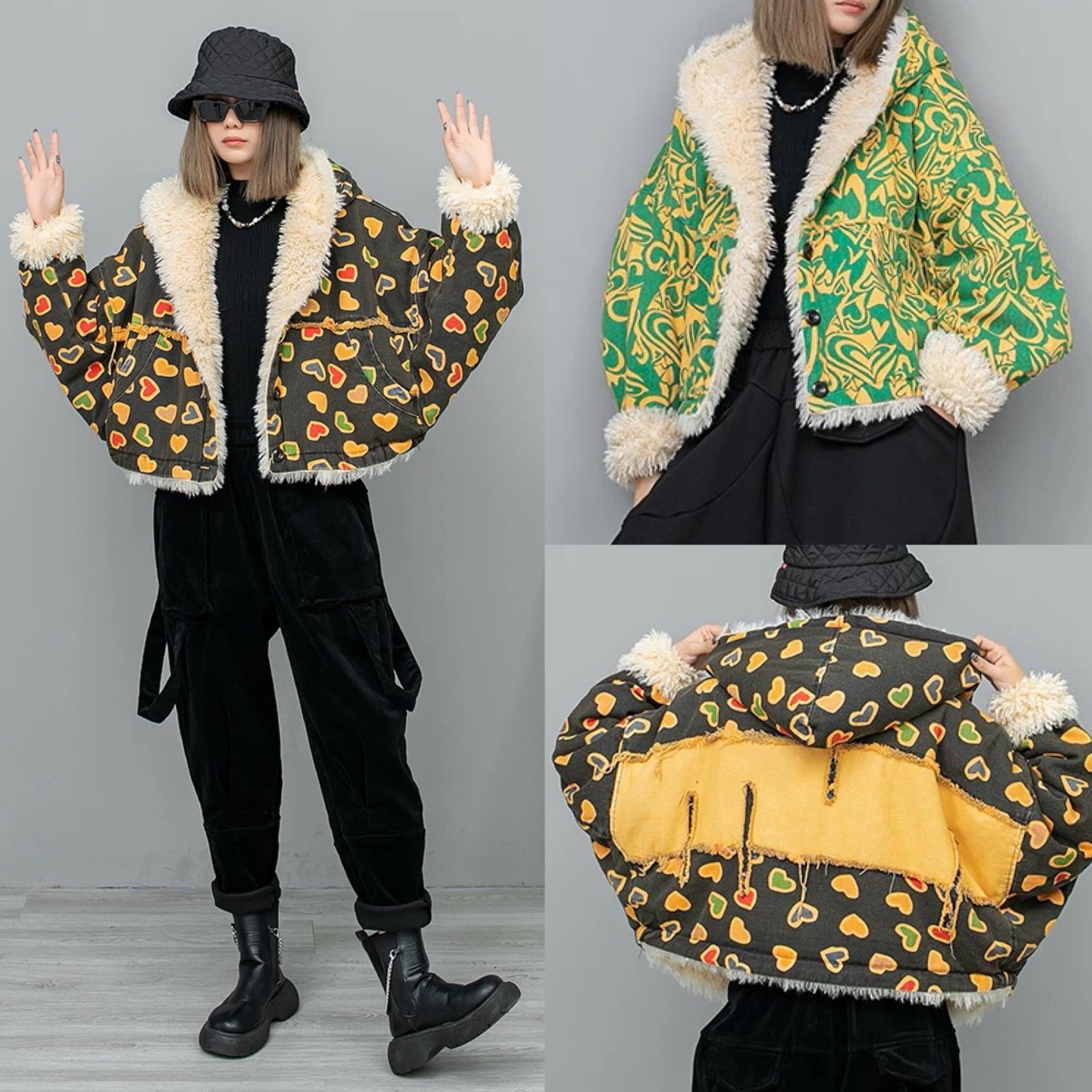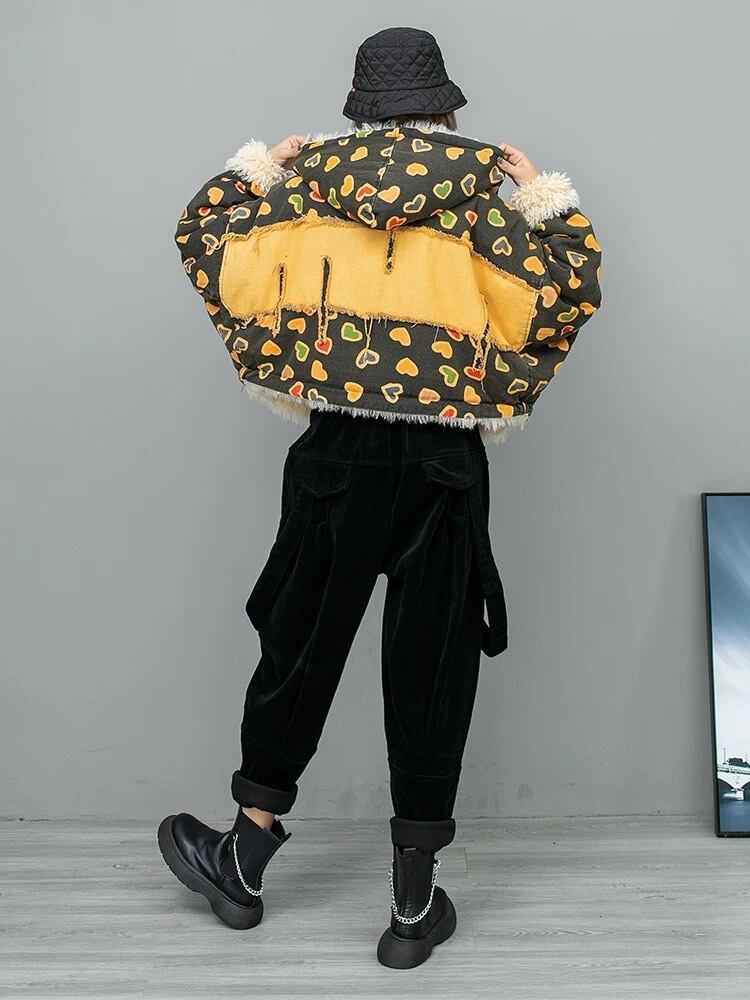 アウター ジャケット コート ストリート ハート 迷彩 カモフラ 緑 黄色 カーディガン アウター ジャケット コート ブルゾン ストリート