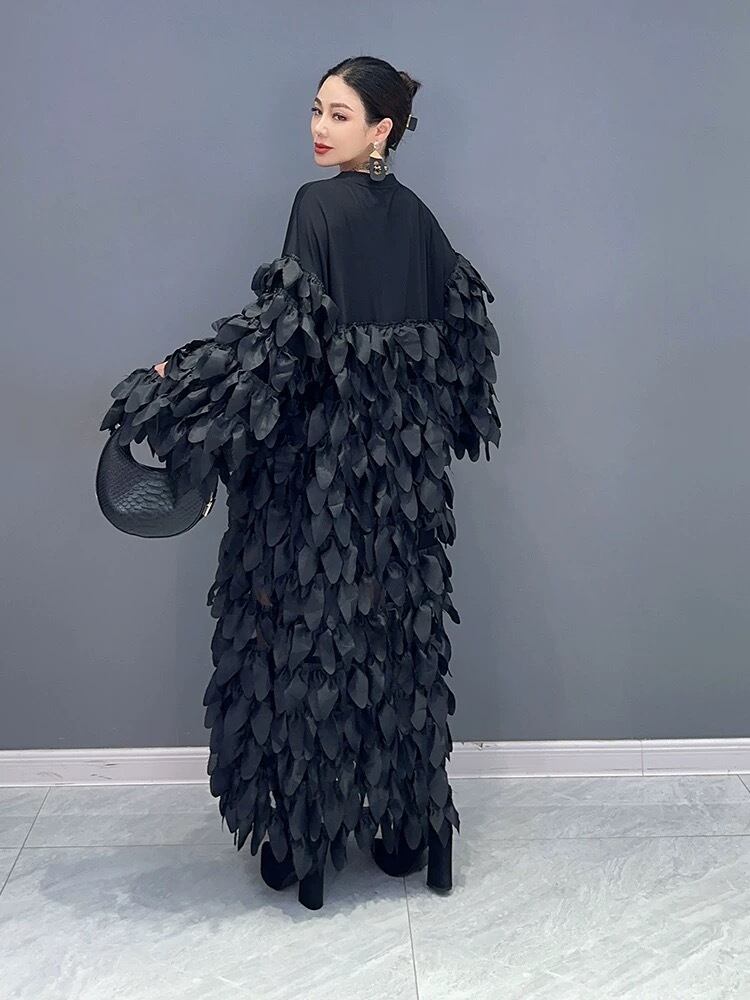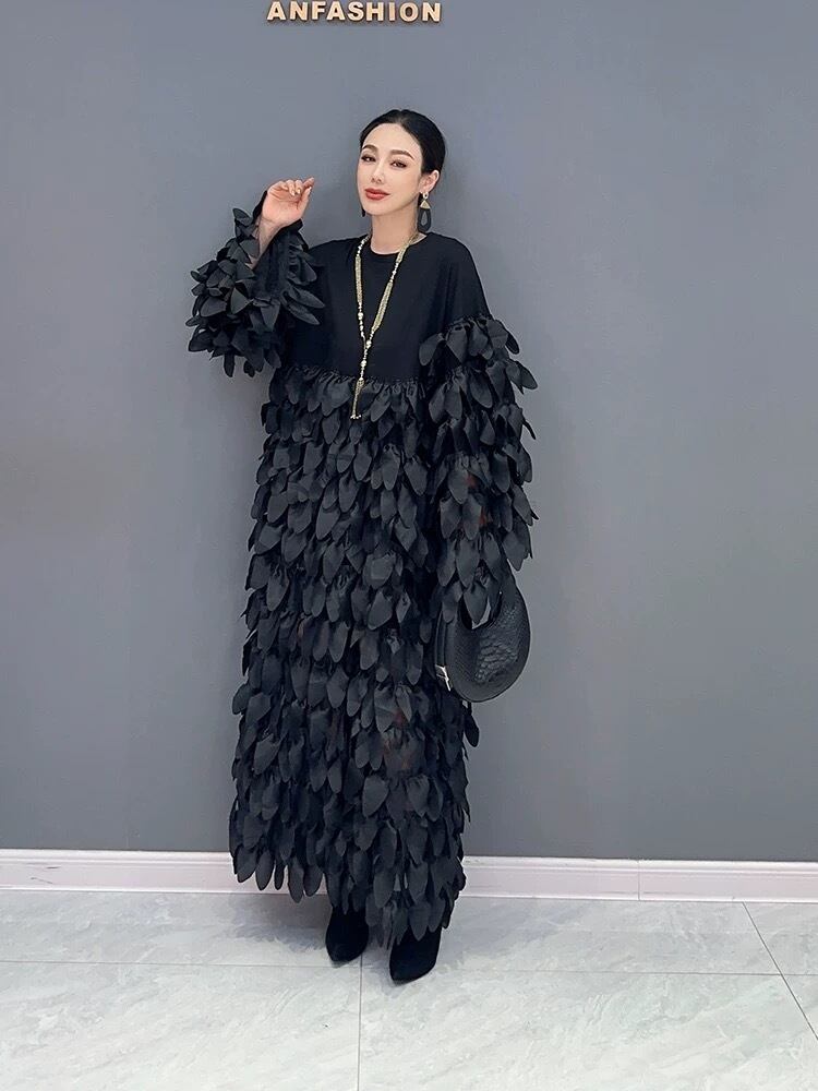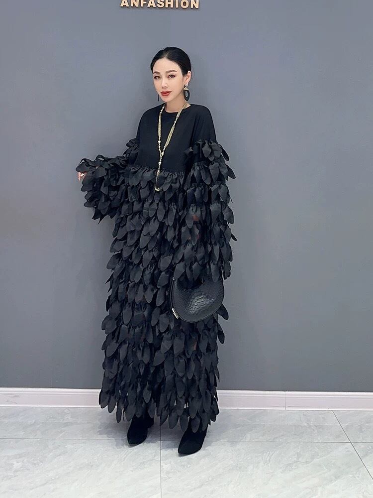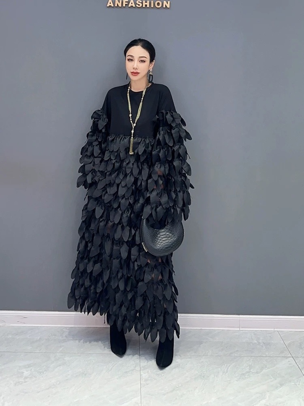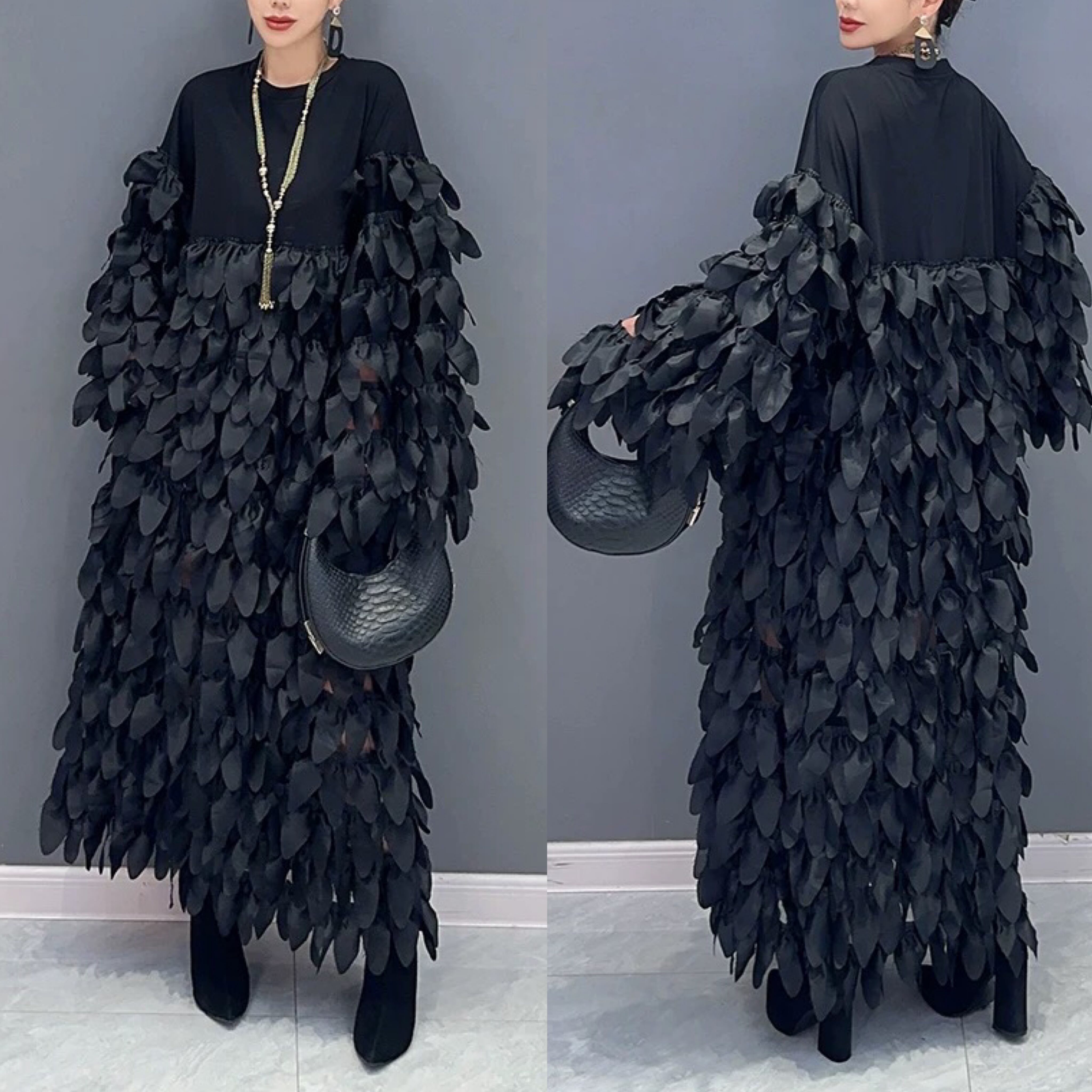 ワンピース 黒 ブラック マキシ XL スカート ブラウス 個性的 ゆったり からす