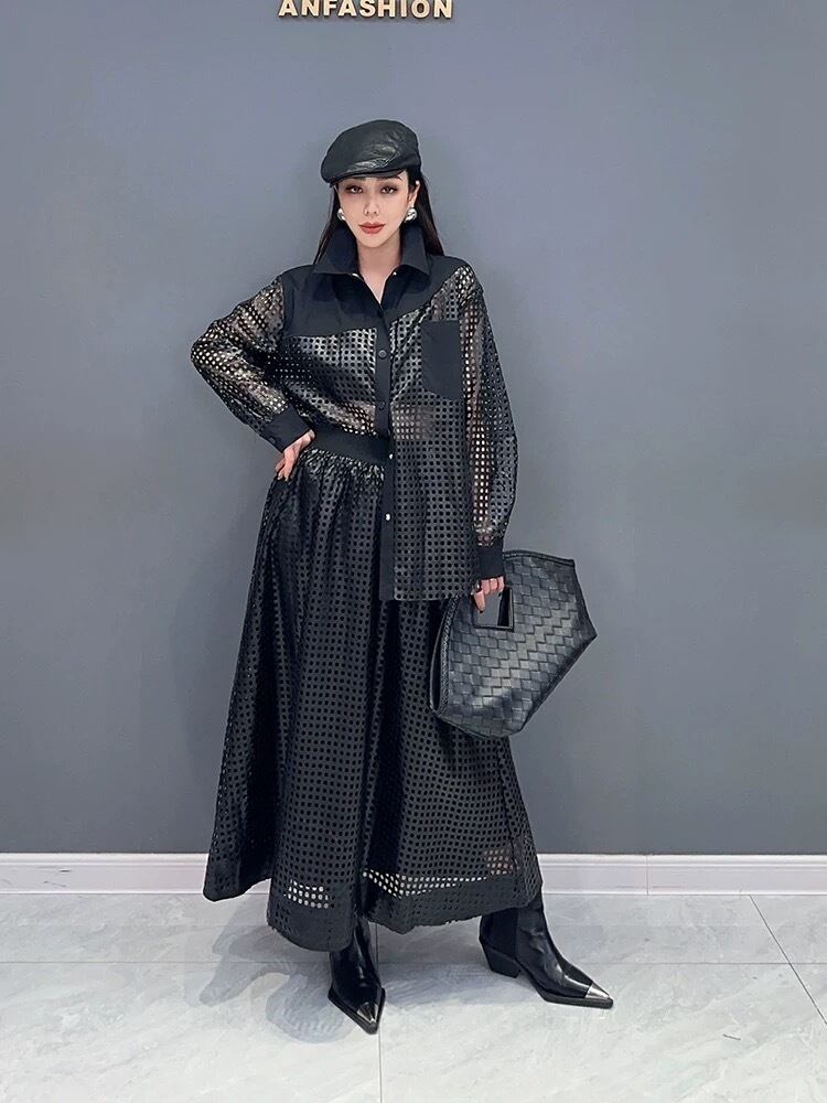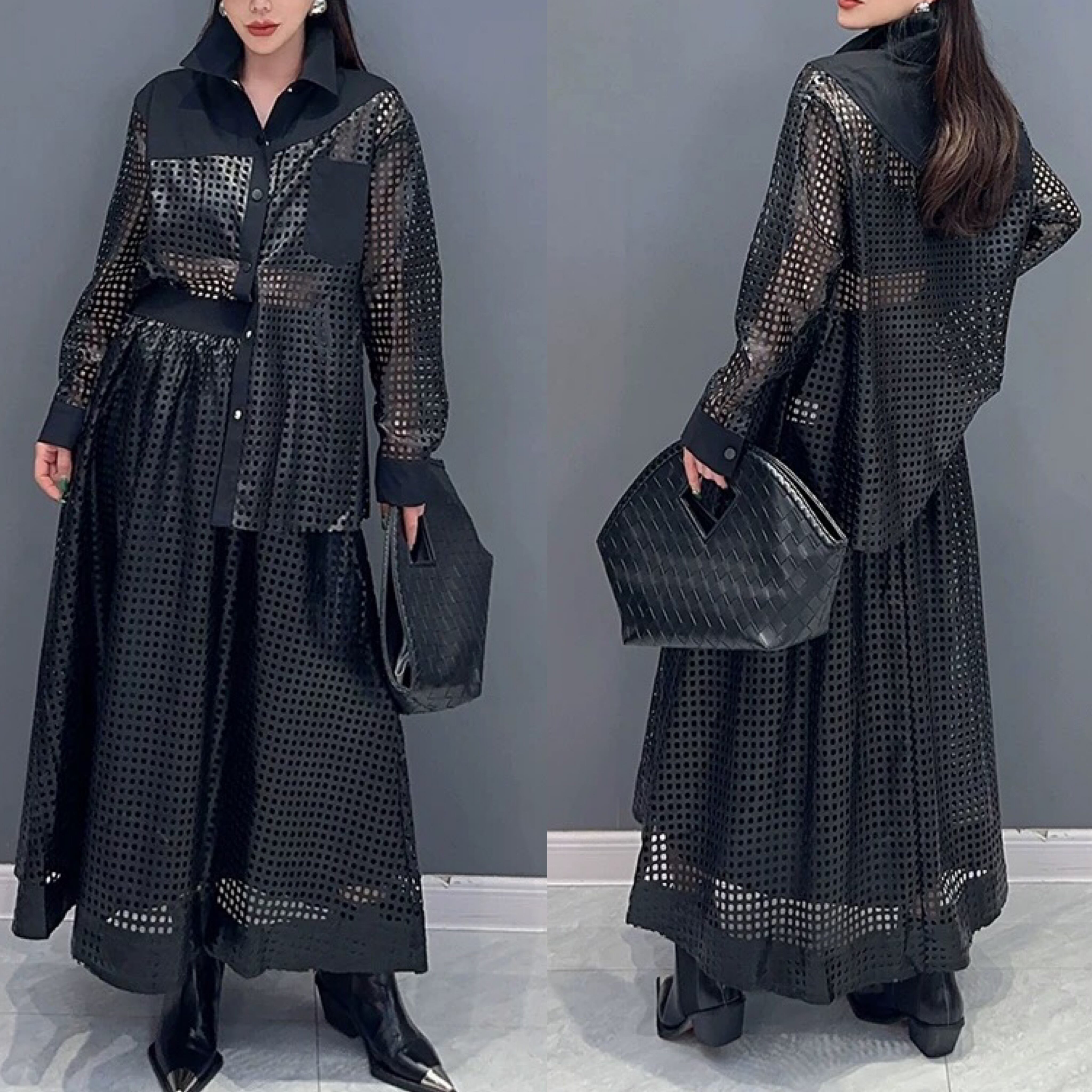 【セットアップ】黒 ブラック ブラウス スカート ボトムス XL ゆったり スーツ ツーピース
