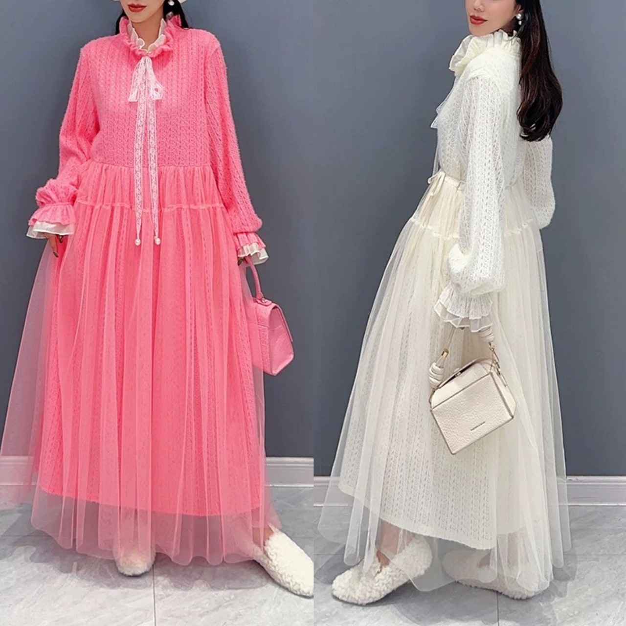 白 ピンク XL マキシ ロング エレガント XL ブラウス リボン お嬢様
