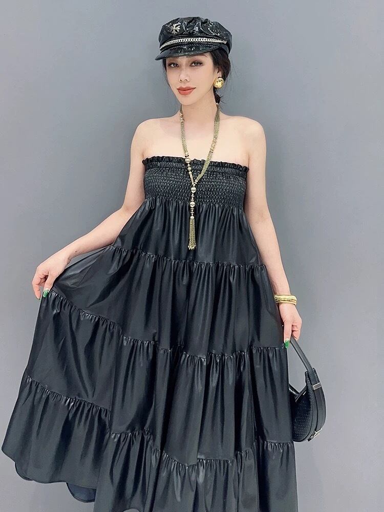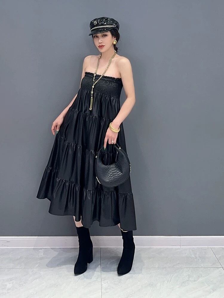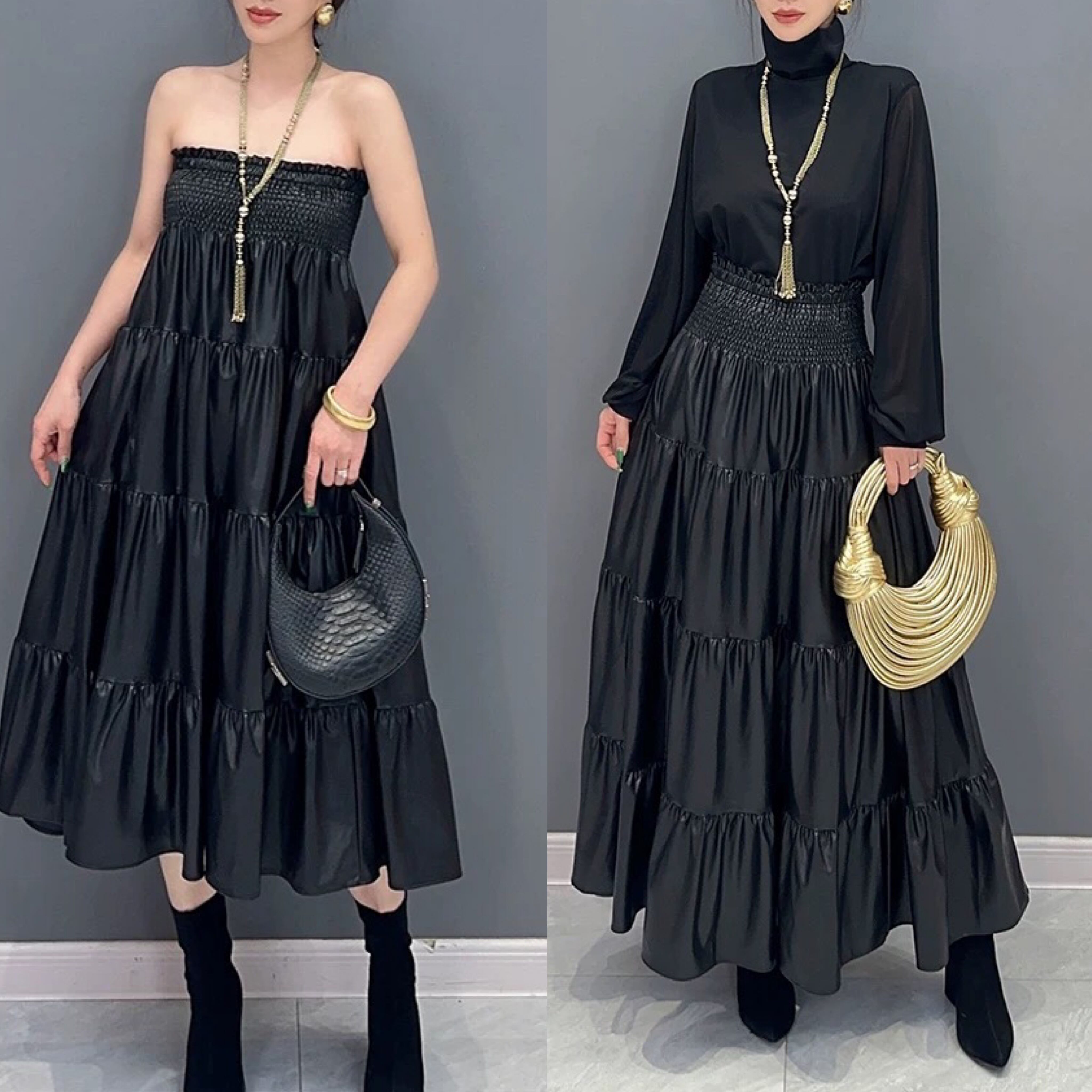 【2way】黒 ブラック ワンピース スカート ボトムス ストリート ブラウス ベアトップ ドレス