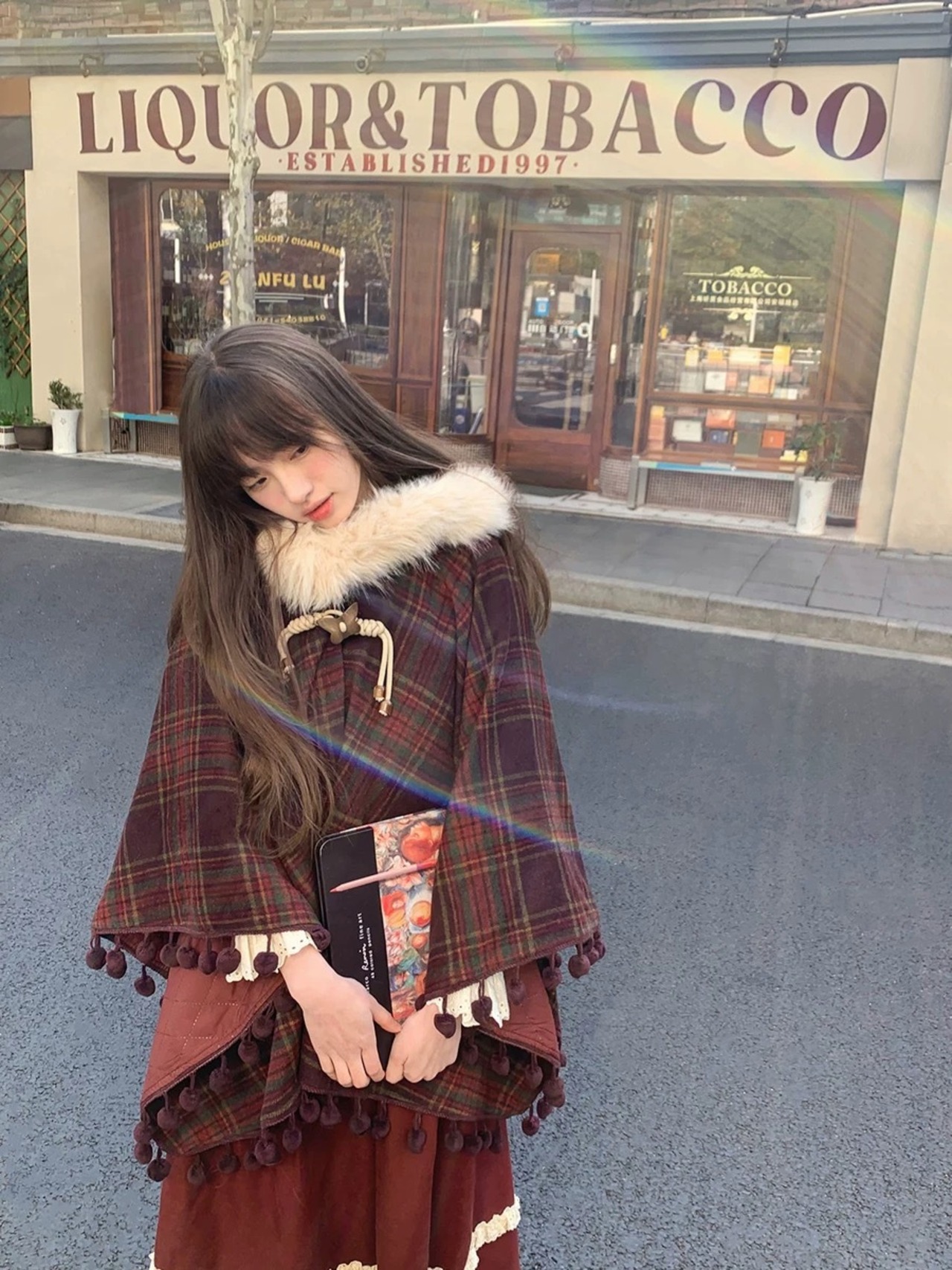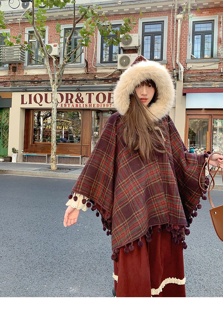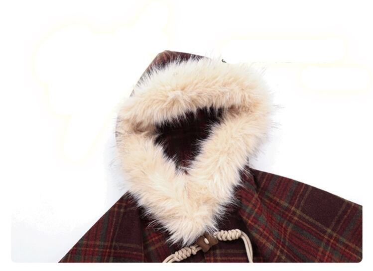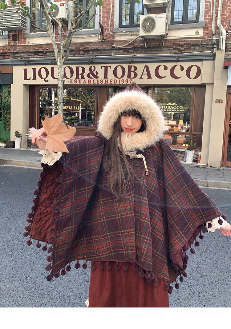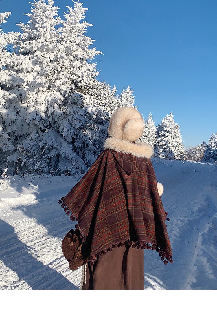 アウター チェック 茶色 フード パーカー コート カーディガン ポンチョ ガーリー 可愛い ゆったり ファー
