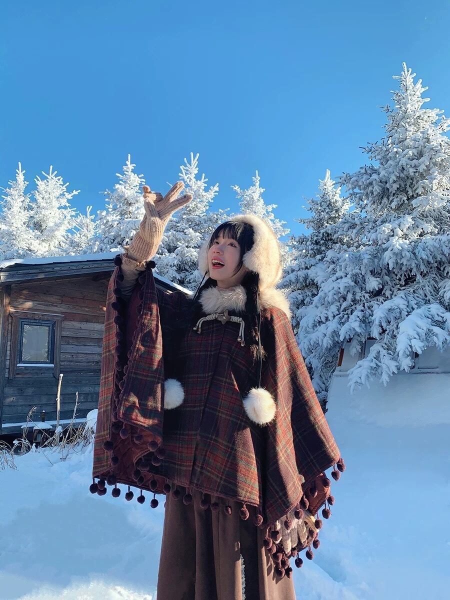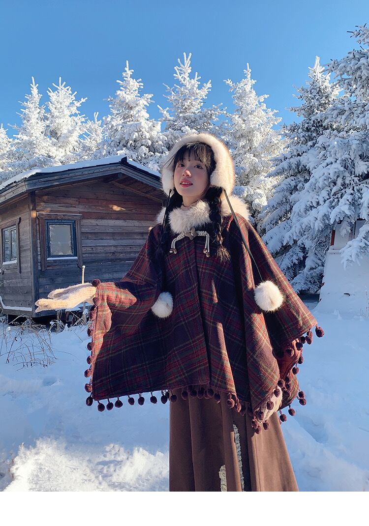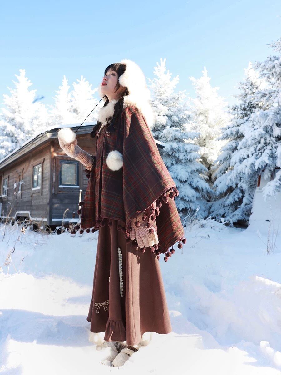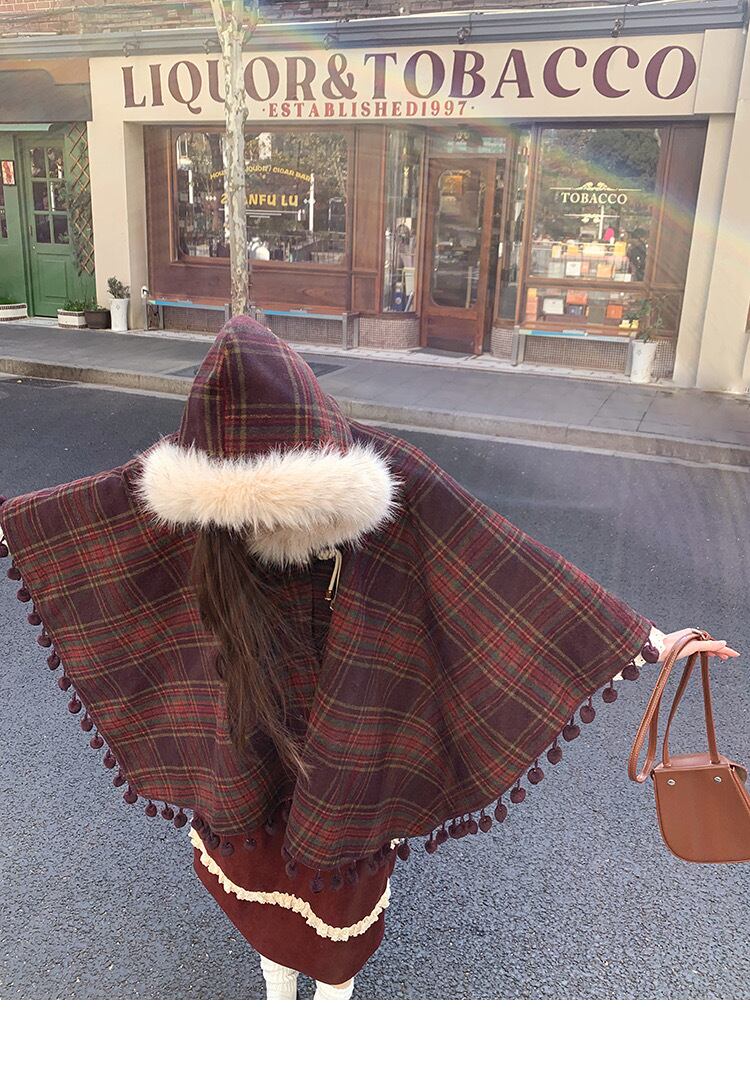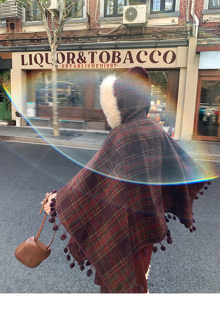 アウター チェック 茶色 フード パーカー コート カーディガン ポンチョ ガーリー 可愛い ゆったり ファー