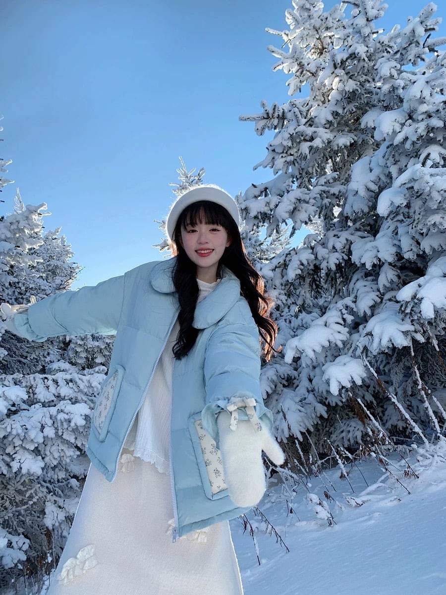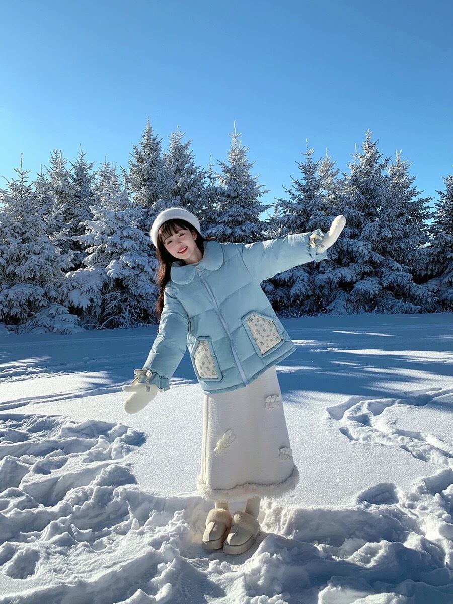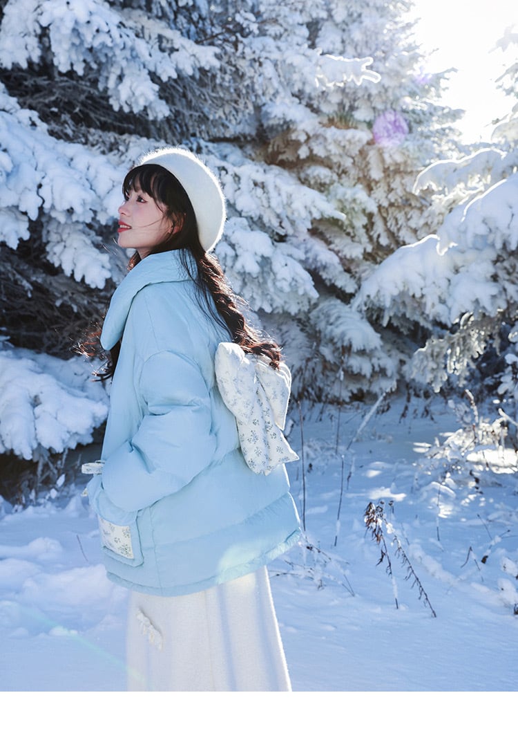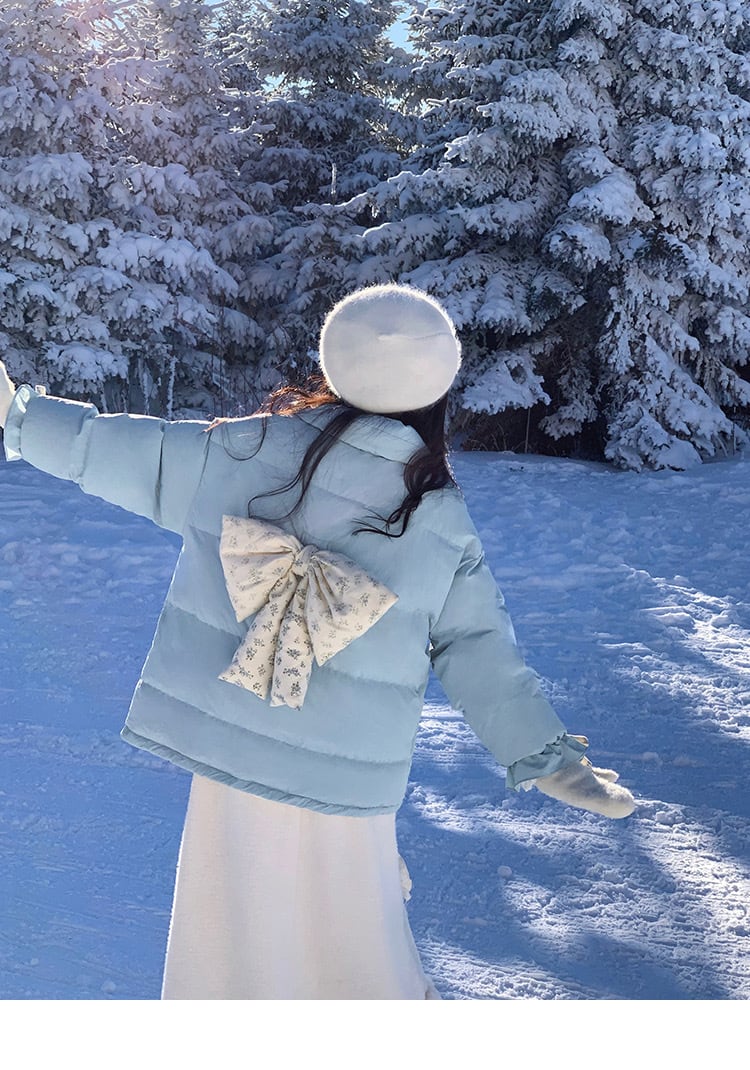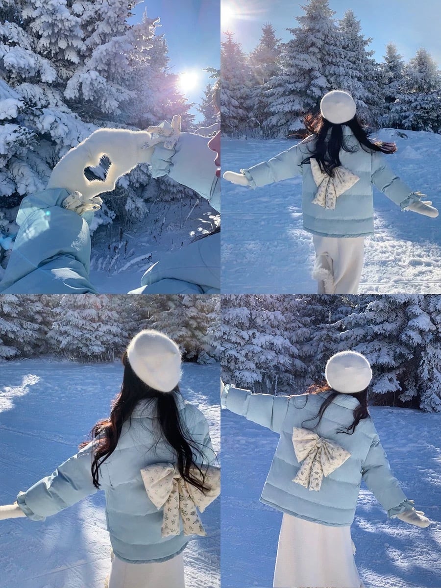 水色 ダウン アウター コート ガーリー 暖かい ジャケット カーディガン コート ブルゾン ダウンコート リボン 姫 ロリータ