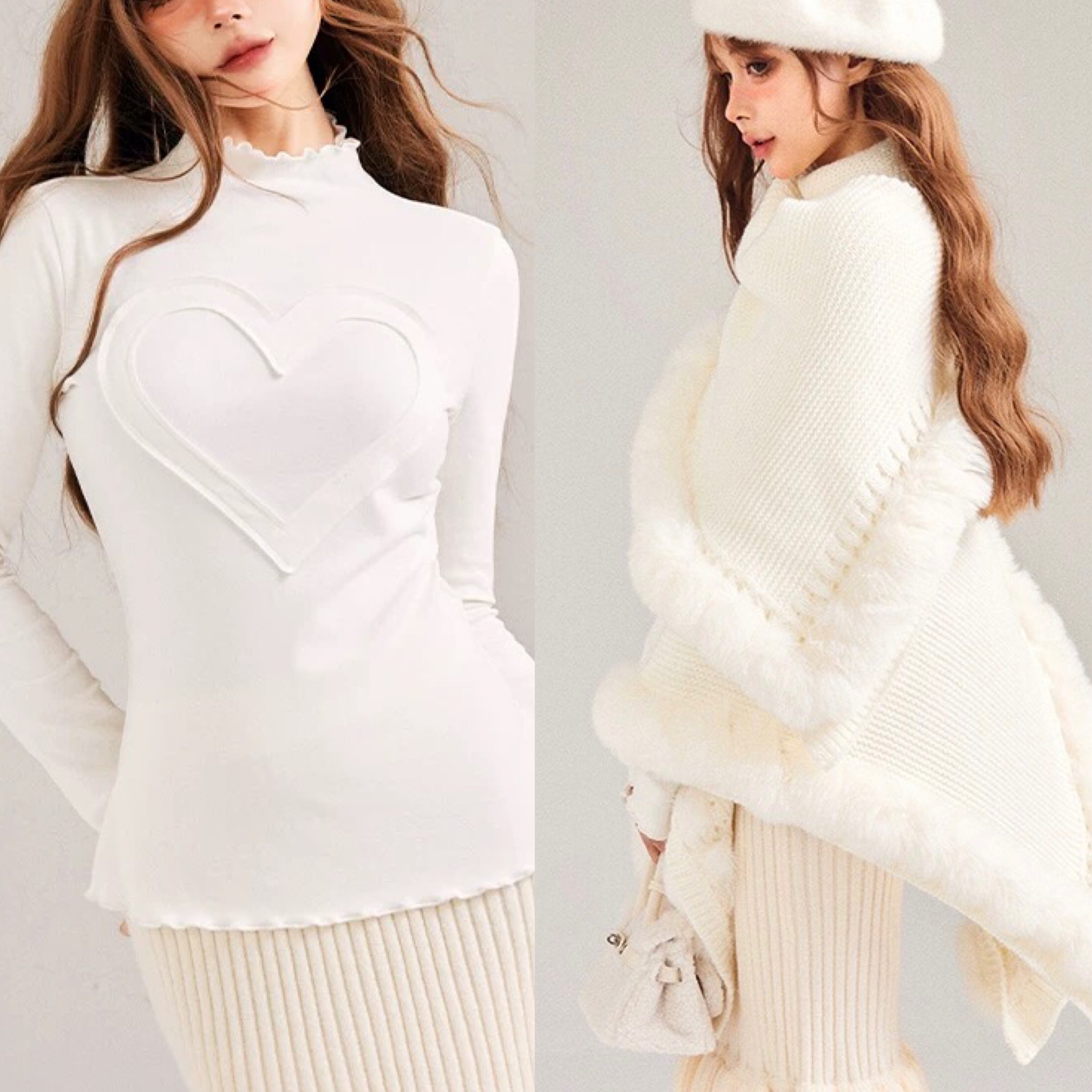 【トップス】白 ホワイト ハート ガーリー ブラウス Tシャツ シンプル トップス 原宿 渋谷 ハート
