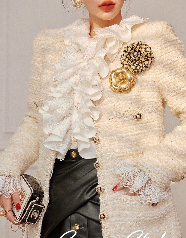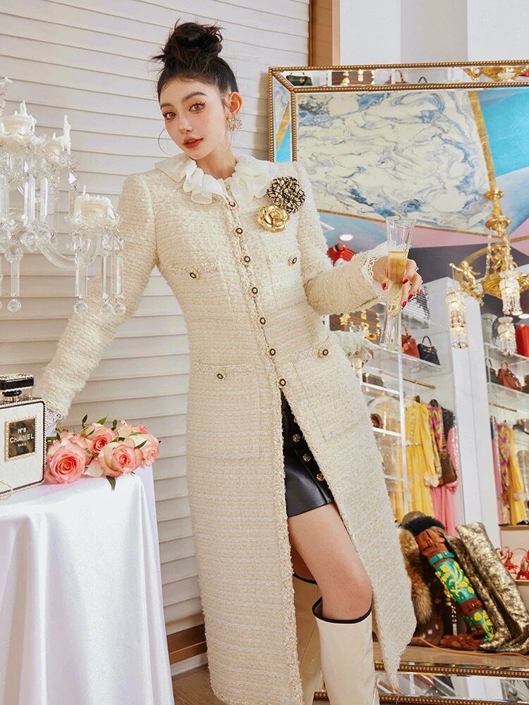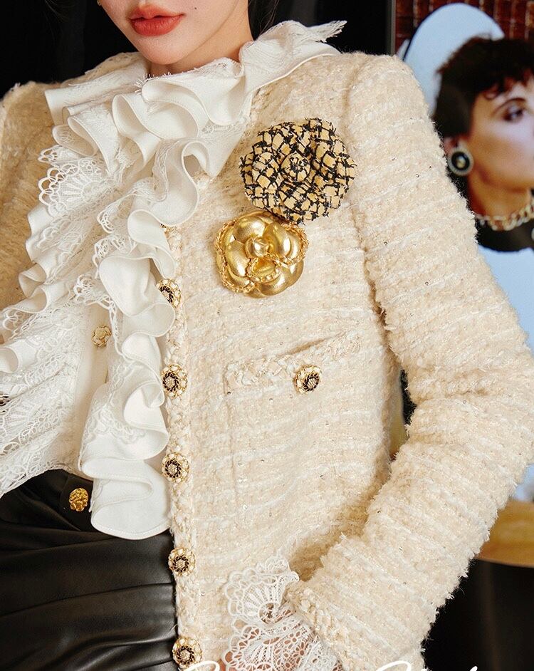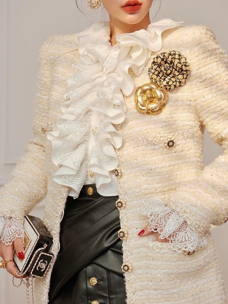 ジャケット アウター ツイード 白 ホワイト カーディガン エレガント コート ワンピース カーディガン アウター ブルゾン ワンピース お嬢様