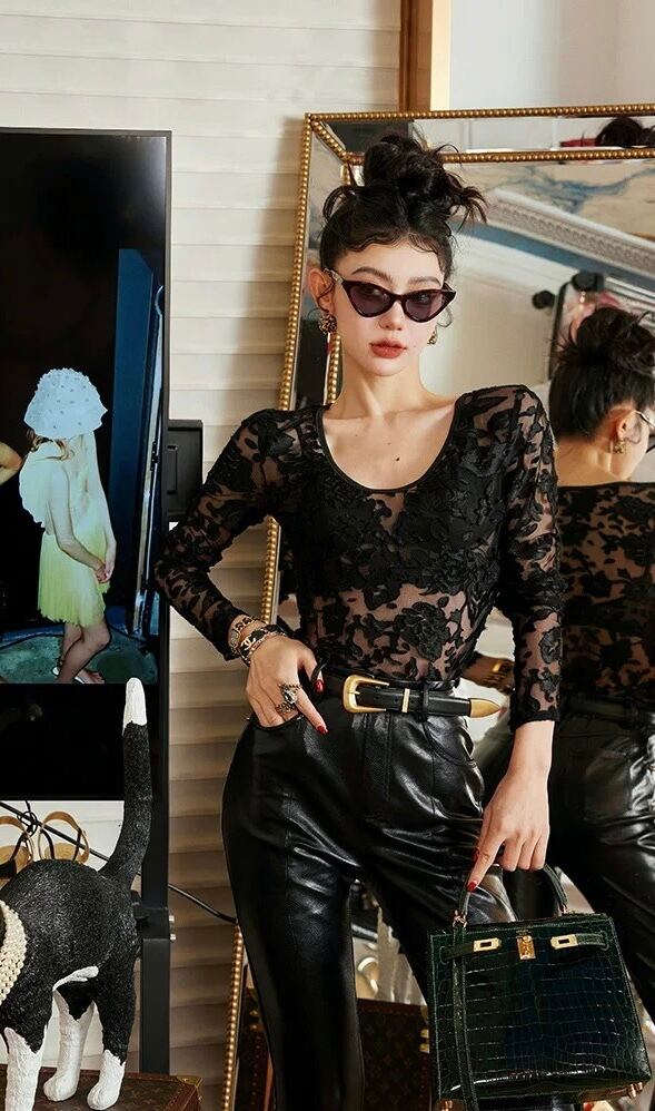 ブラウス シースルー 黒 ブラック 花柄 トップス エレガント 可愛い ゴージャス