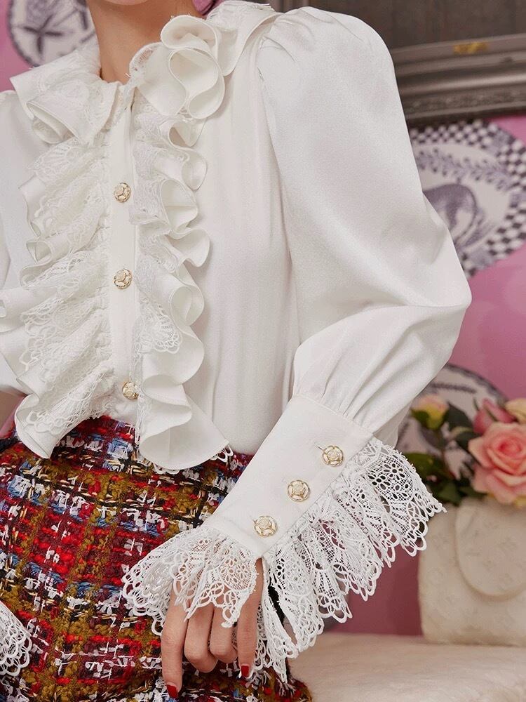 ブラウス 白 エレガント トップス リボン フリル シャツ ブラウス レース ゴージャス