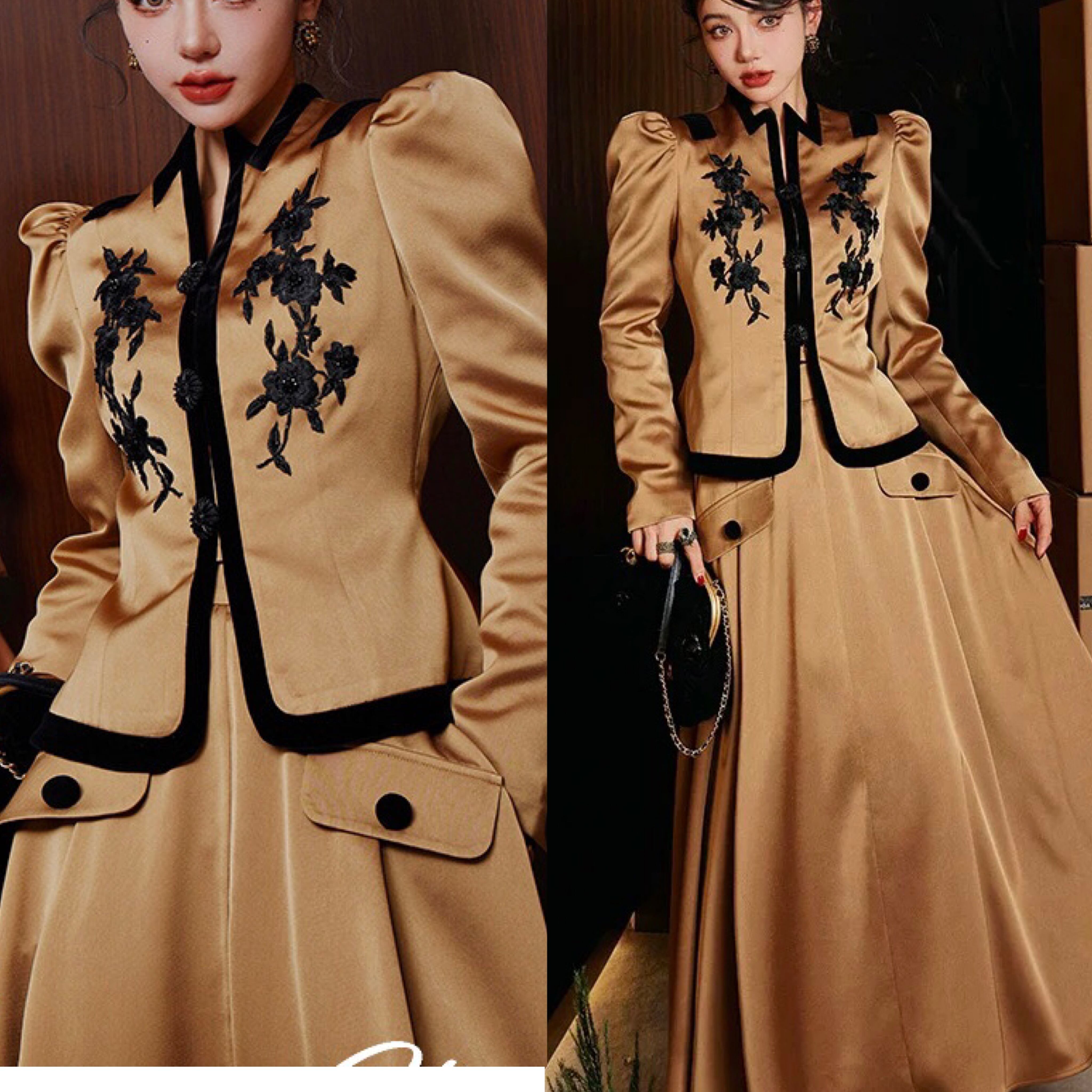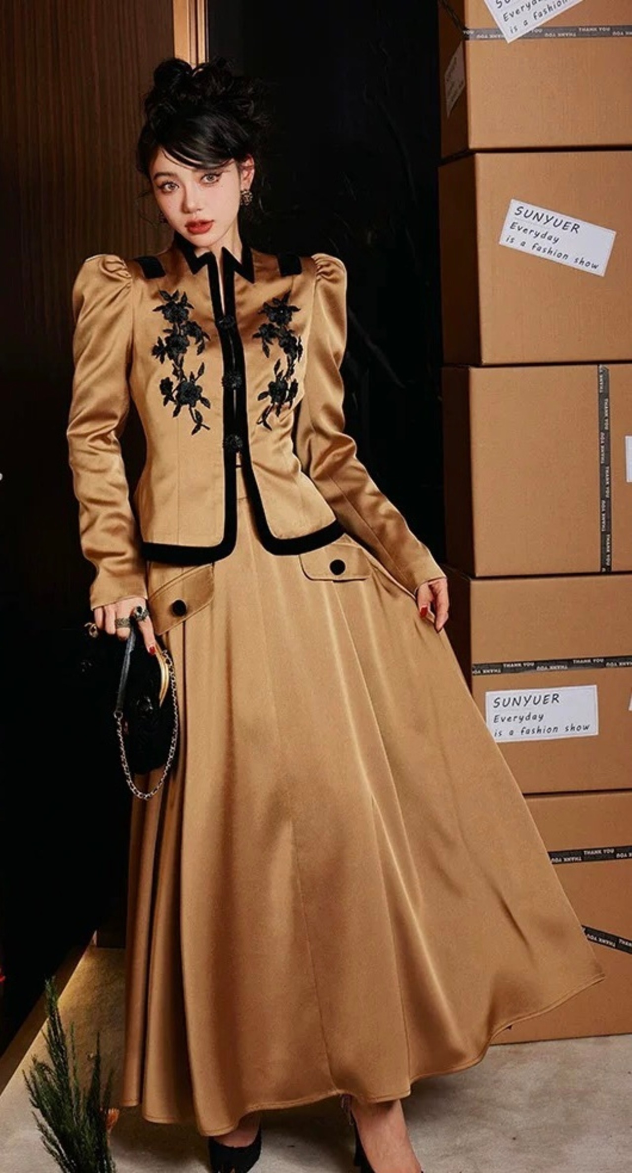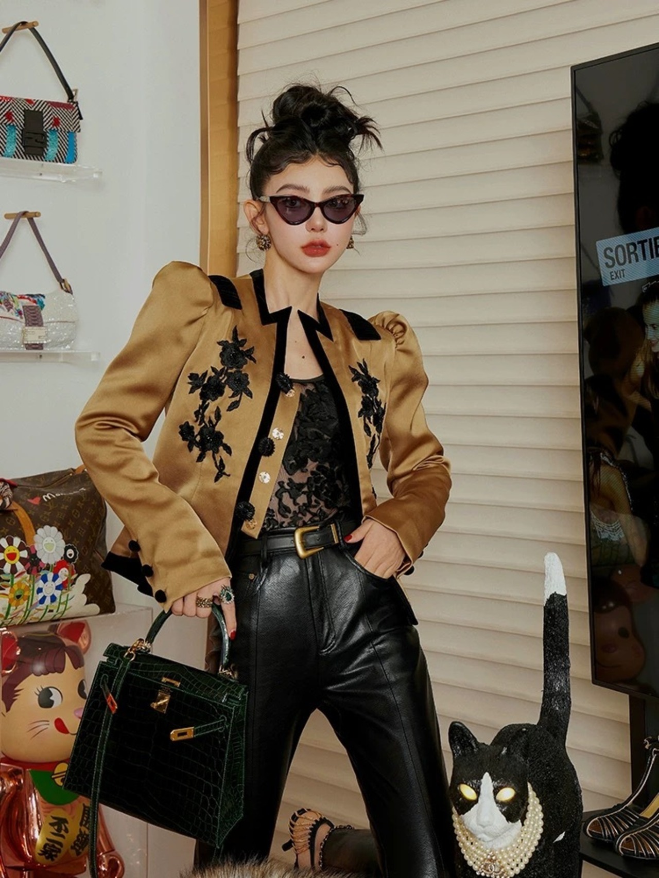 【ジャケット】ゴールド カーディガン コート アウター ブルゾン 金 茶色 ブルゾン