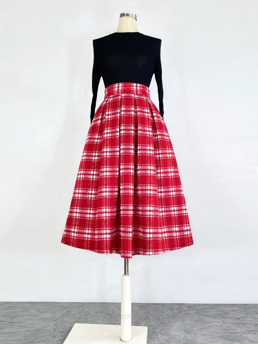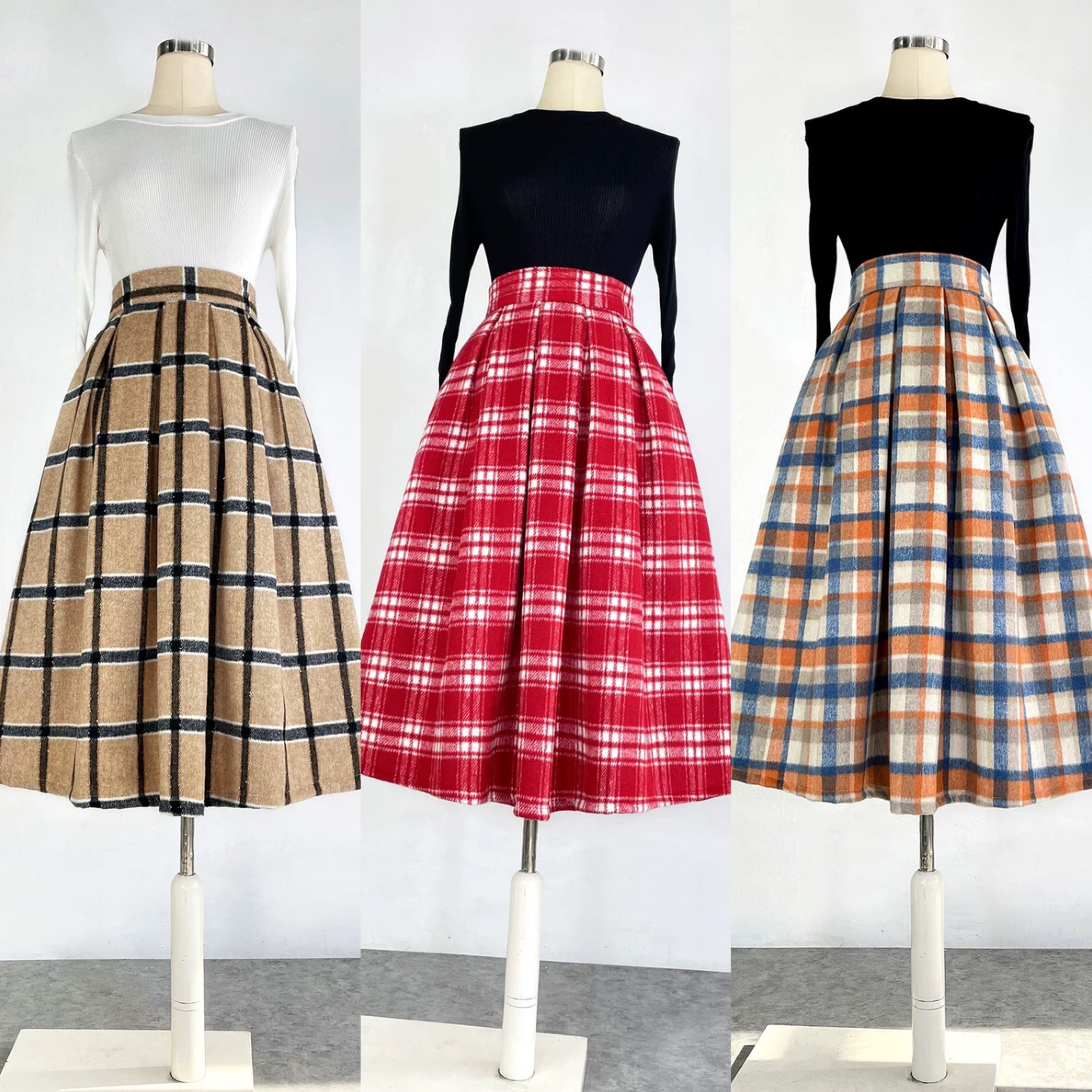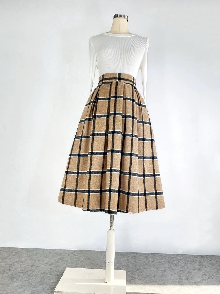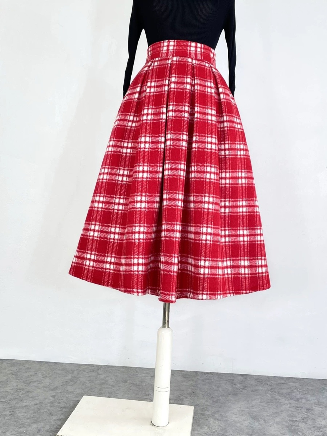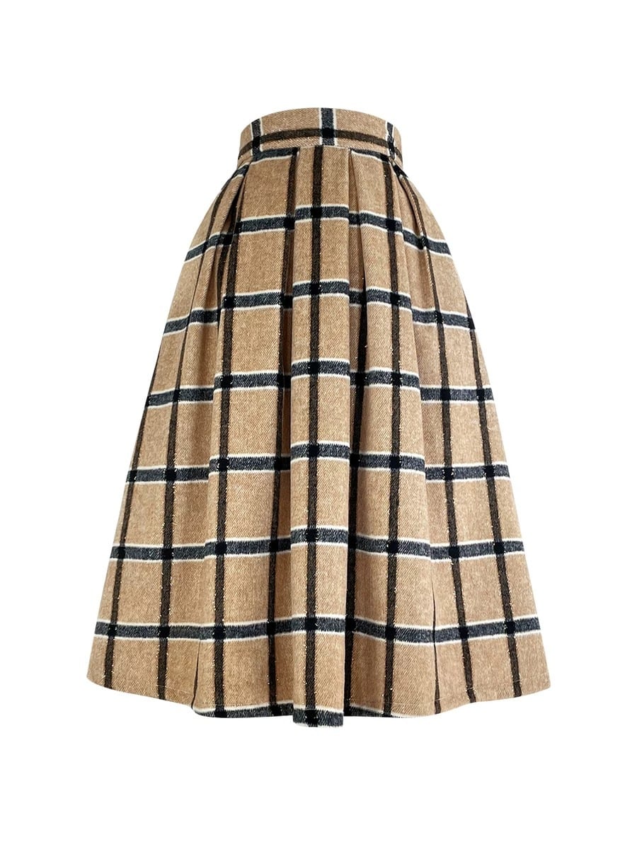 スカート チェック ベージュ 茶色 赤 ボトムス XL