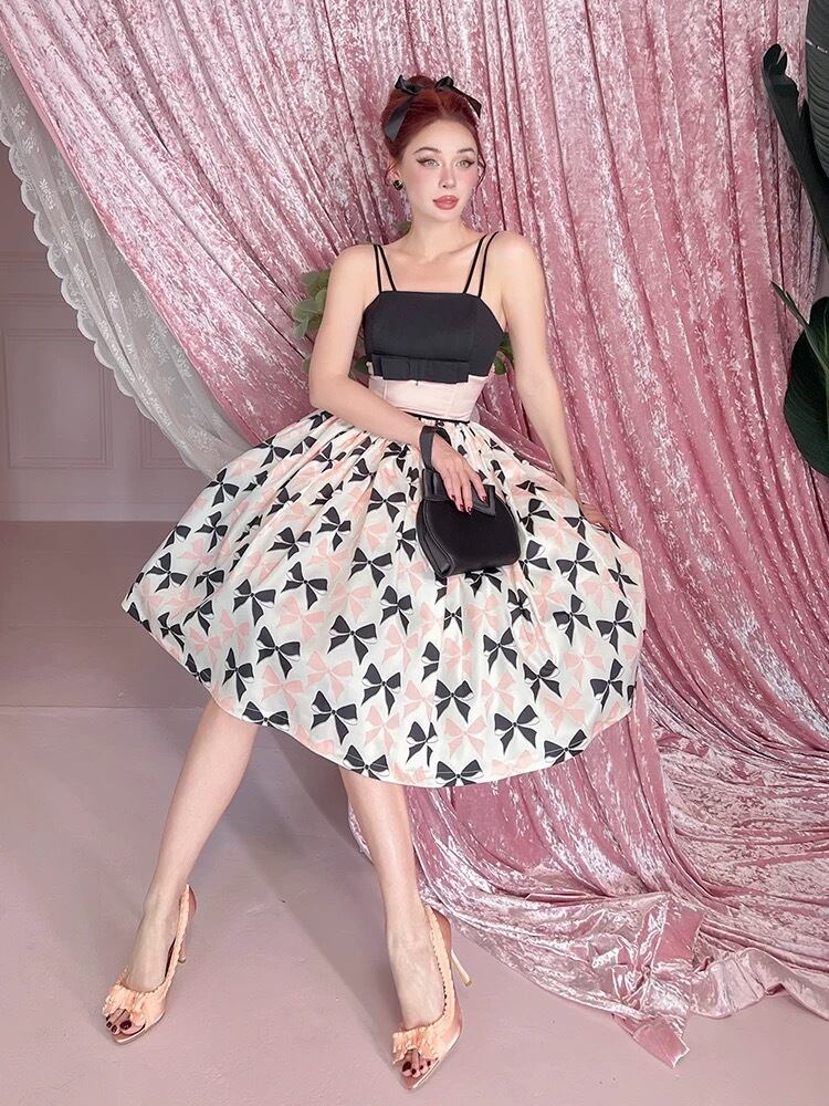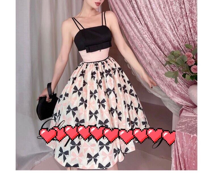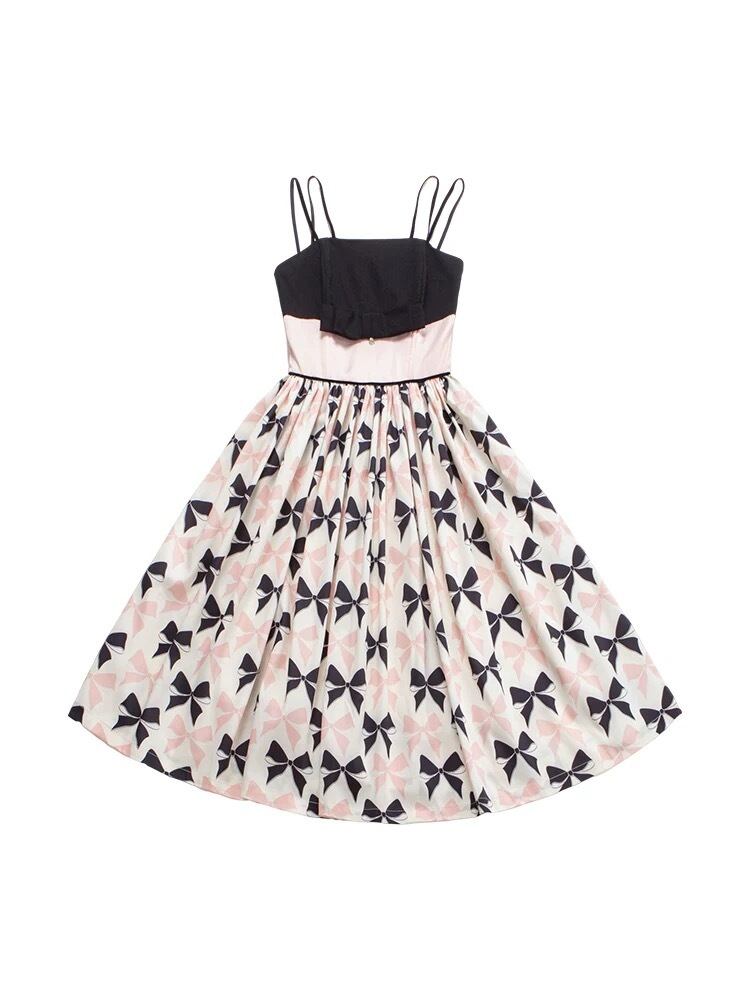 キャミソール リボン ピンク 黒 フレア ワンピース ドレス ガーリー エレガント ゴージャス