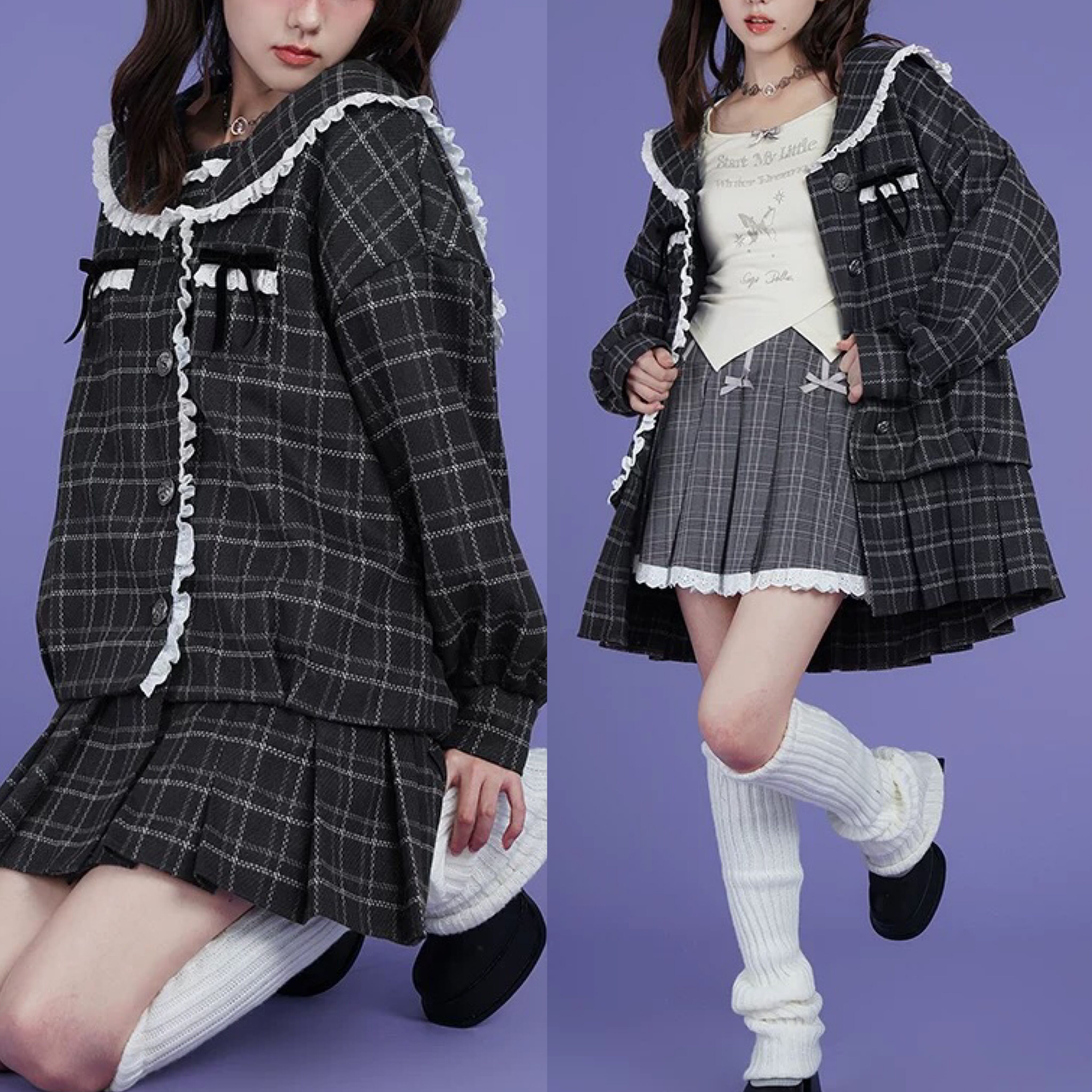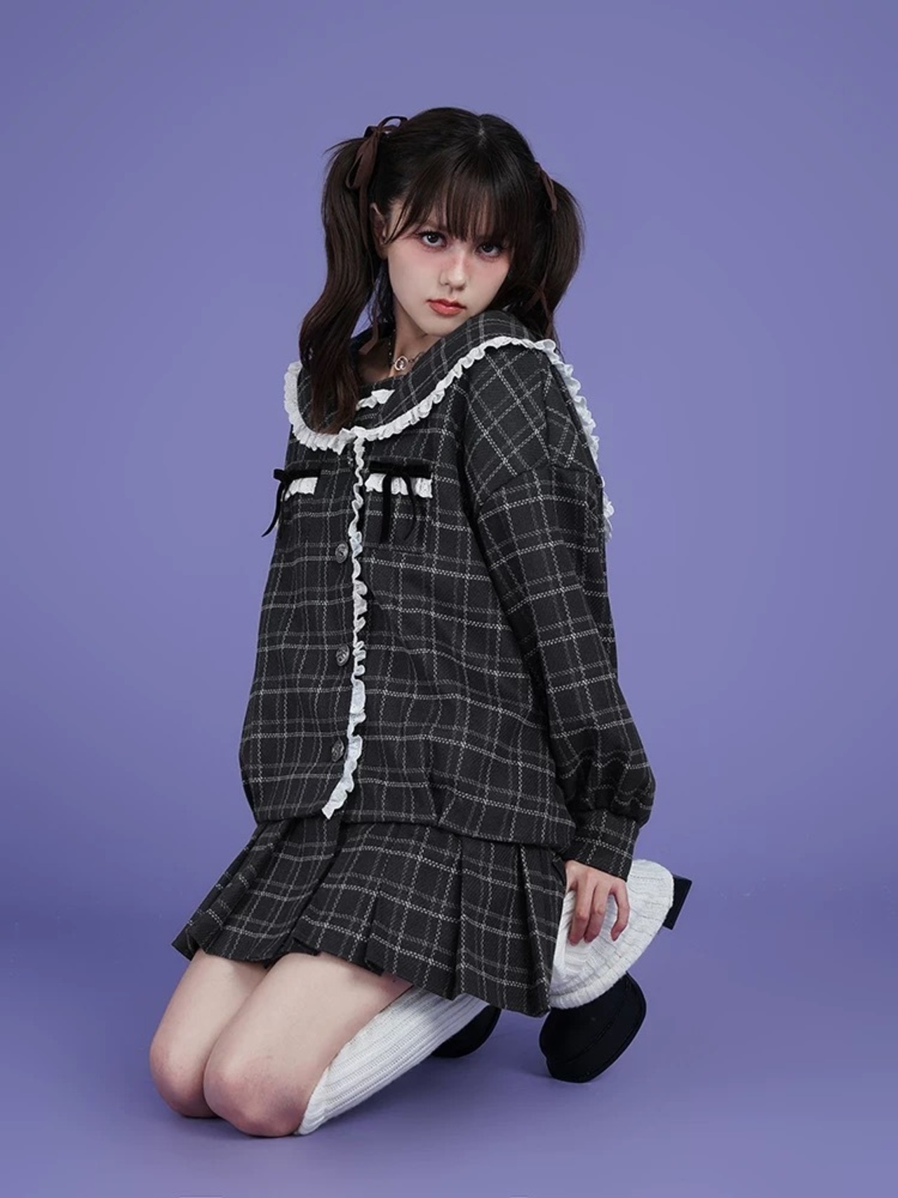 チェック ワンピース コート アウター ジャケット ブラウス カーディガン ガーリー セーター 制服 ミニスカート