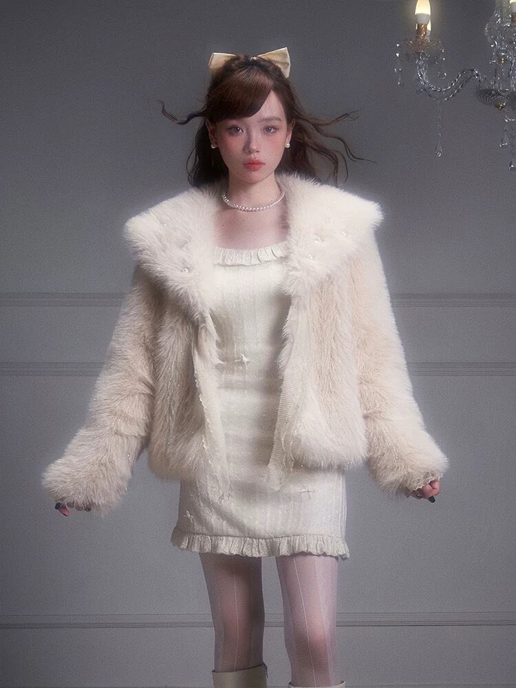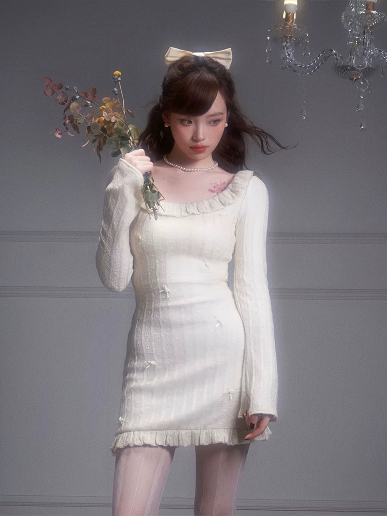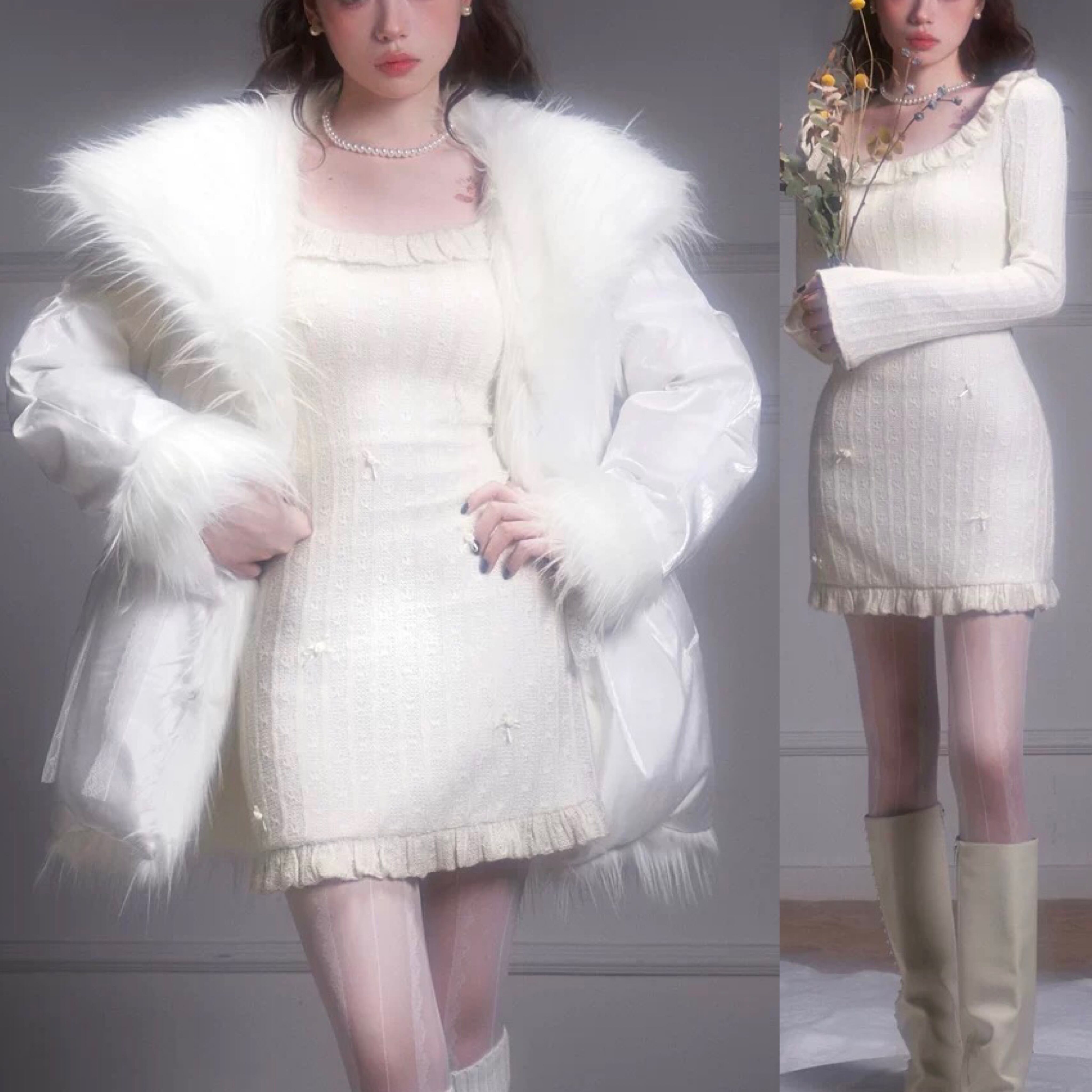 白 ホワイト ニット セーター ガーリー お嬢様 エレガント ワンピース カーディガン カジュアル