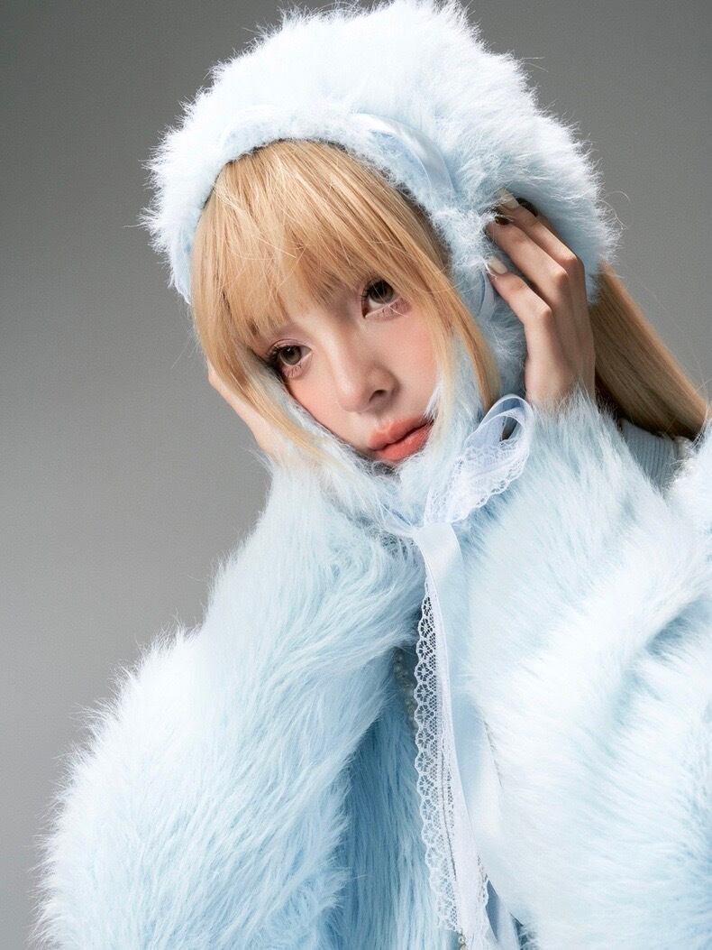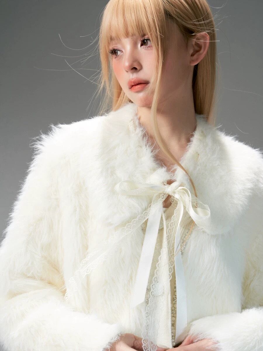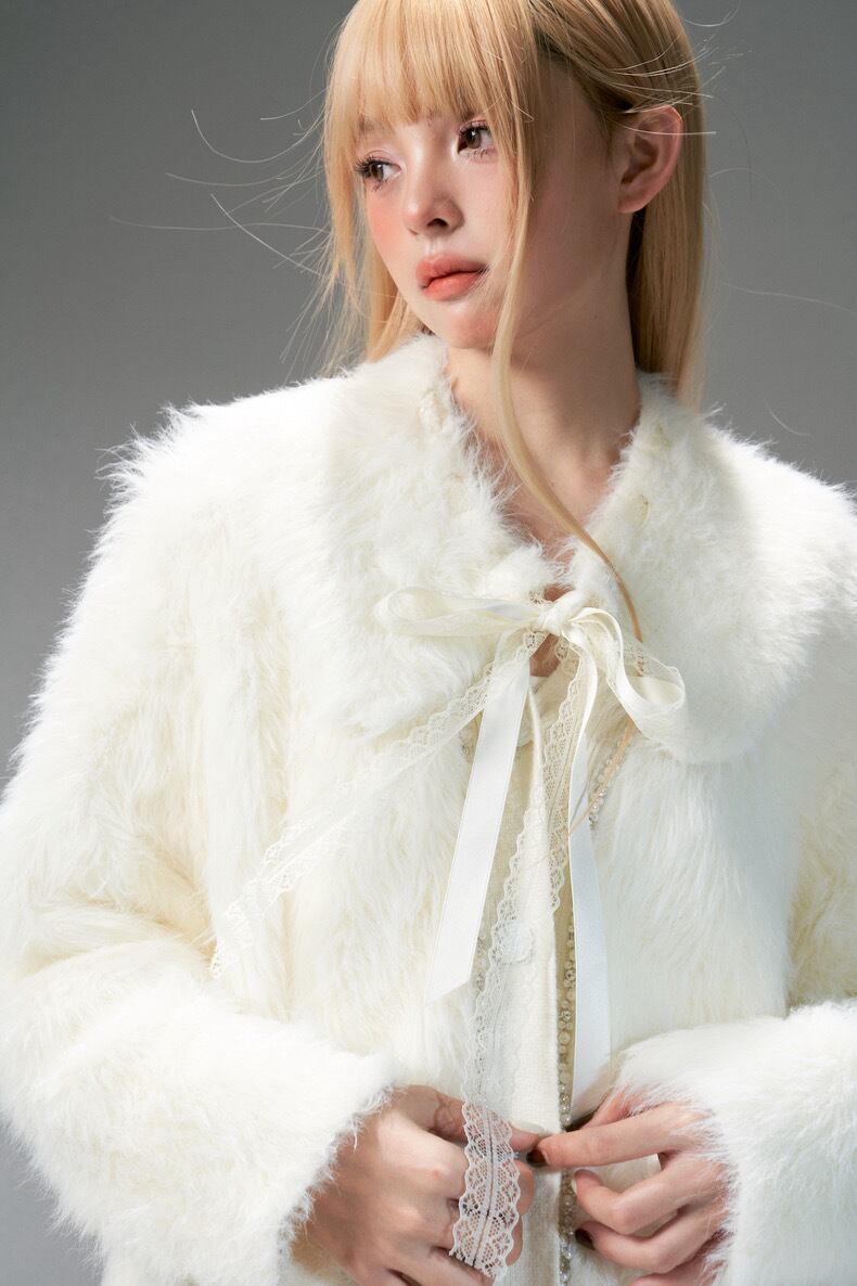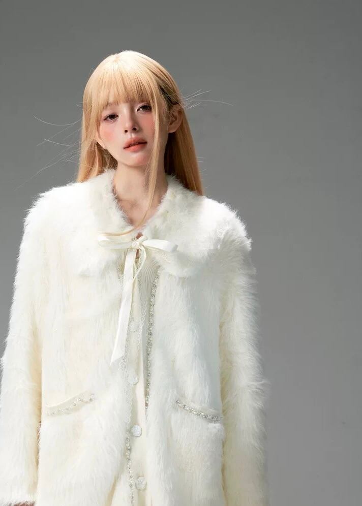 【襟取り外し可能】アウター カーディガン セーター ニット モヘア リボン 丸襟 ガーリー 白 ホワイト お嬢様 水色 カジュアル ゆったり