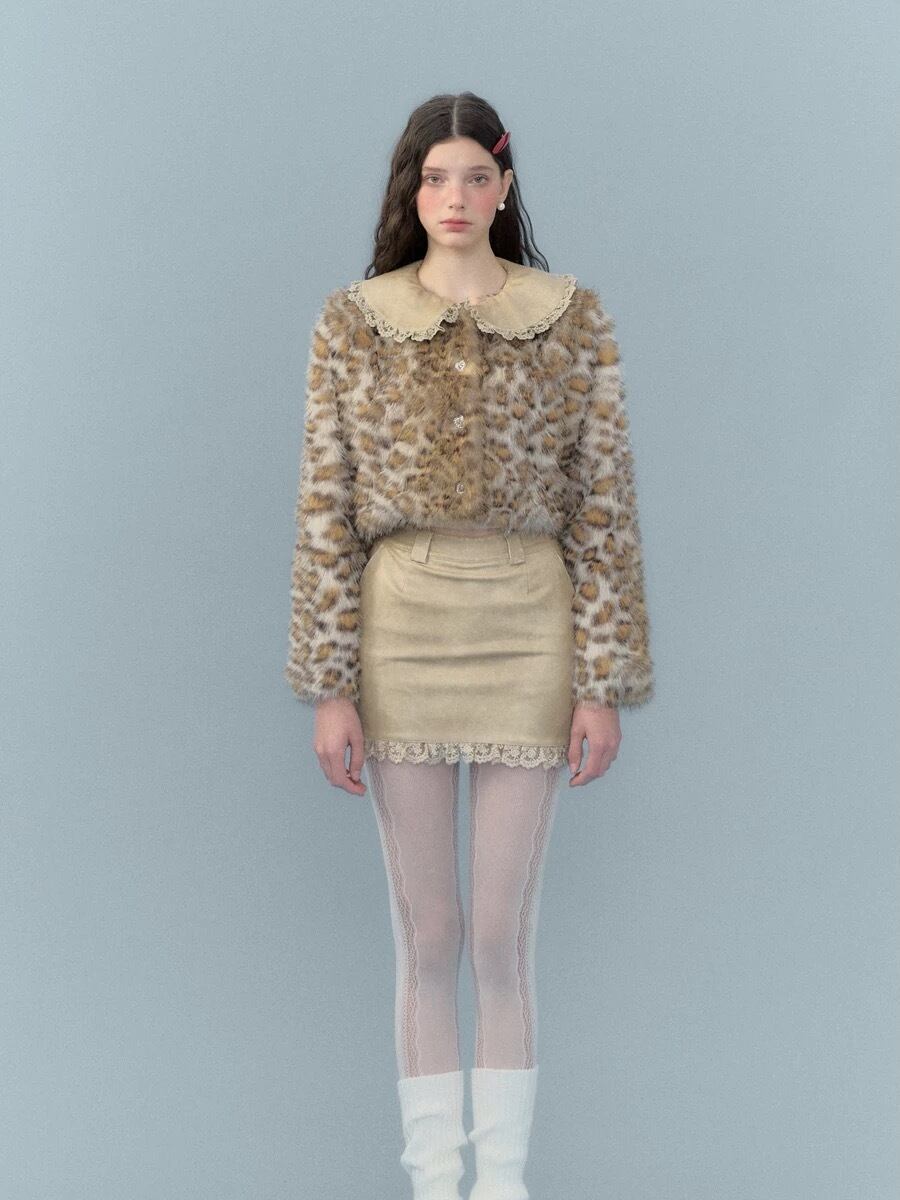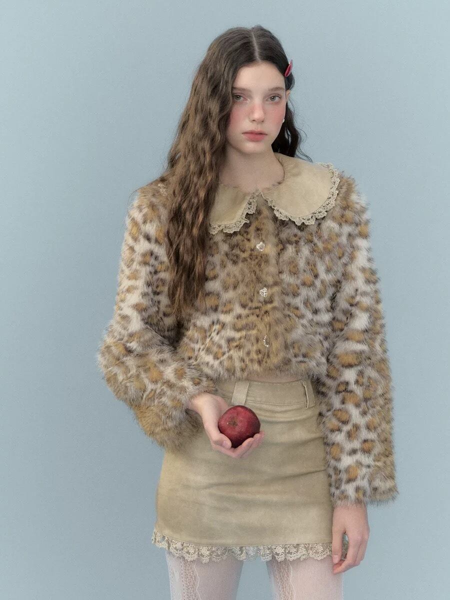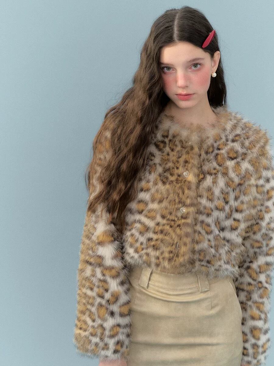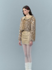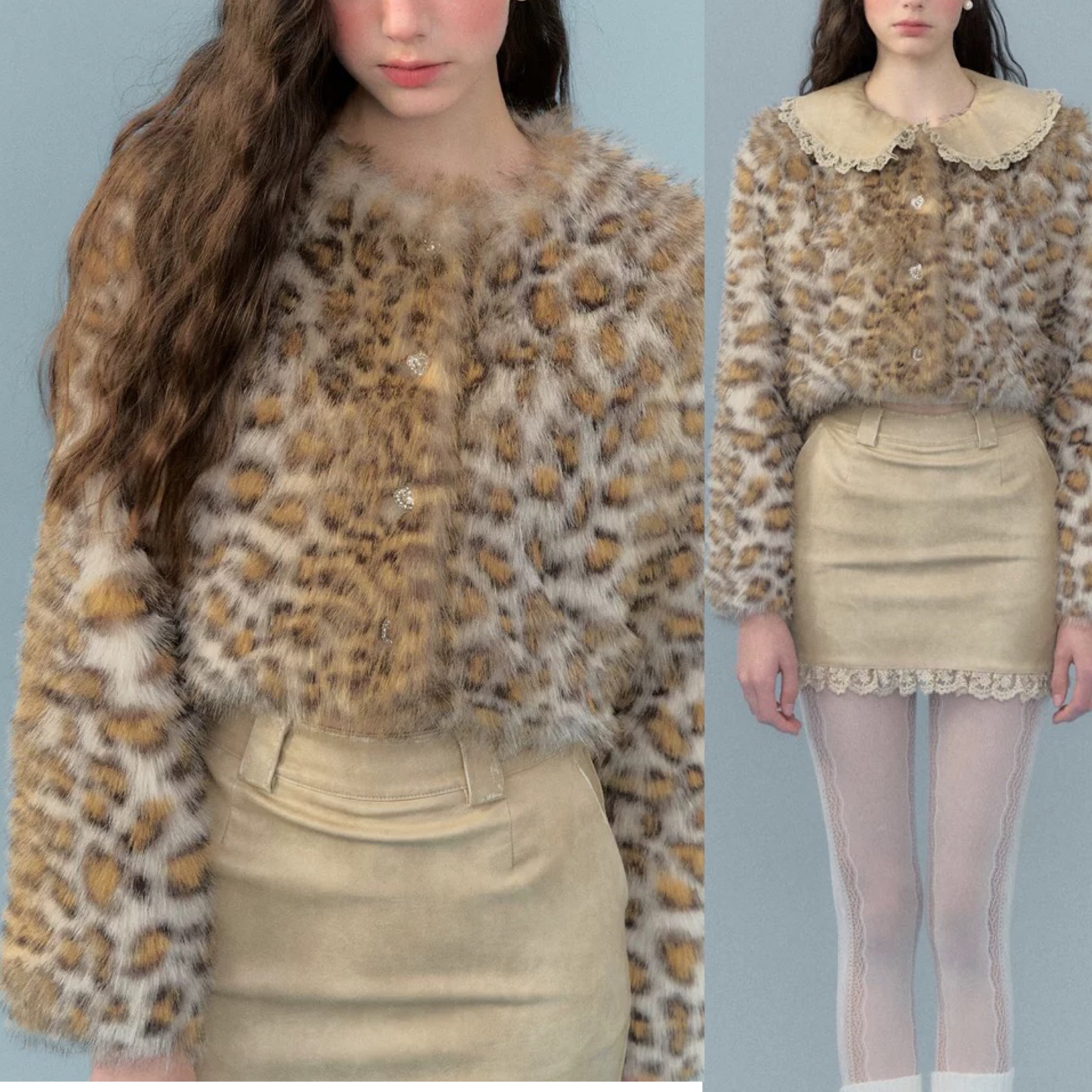 【襟取り外し可能】レオパード ヒョウ柄 ジャケット アウター コート ブルゾン トップス ベージュ エレガント ゴージャス 茶色 アニマル カーディガン セーター