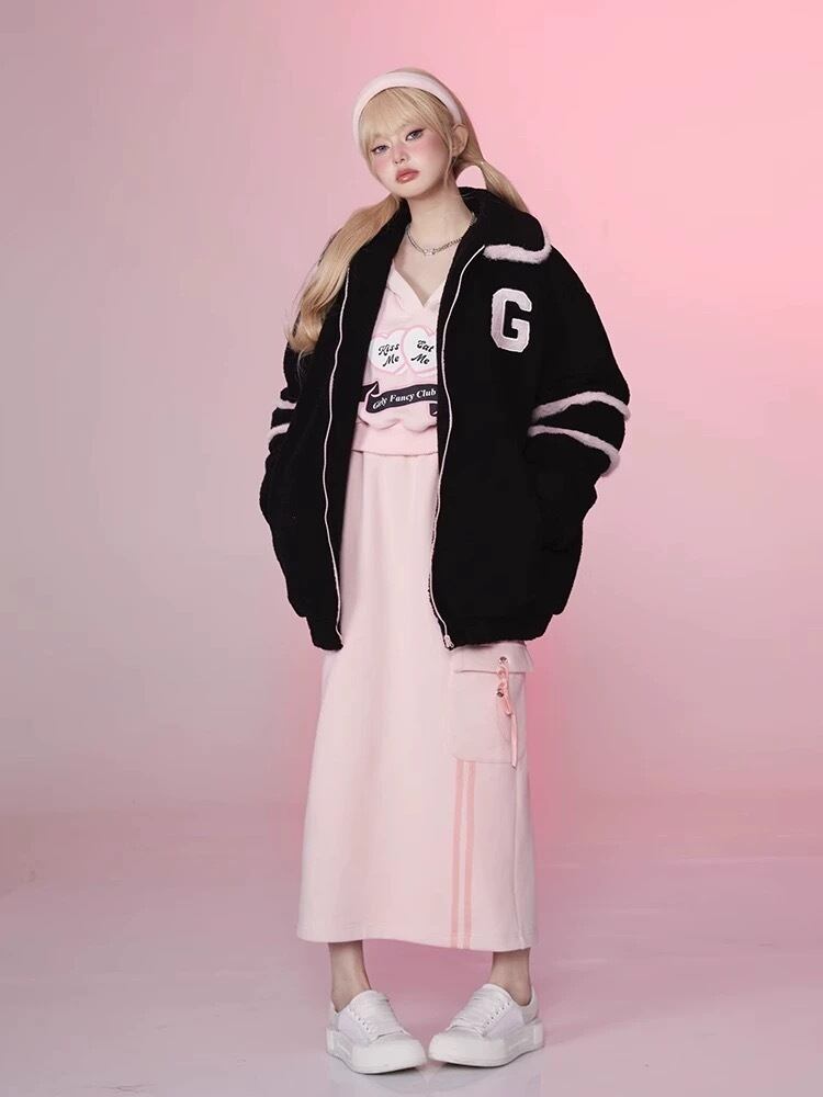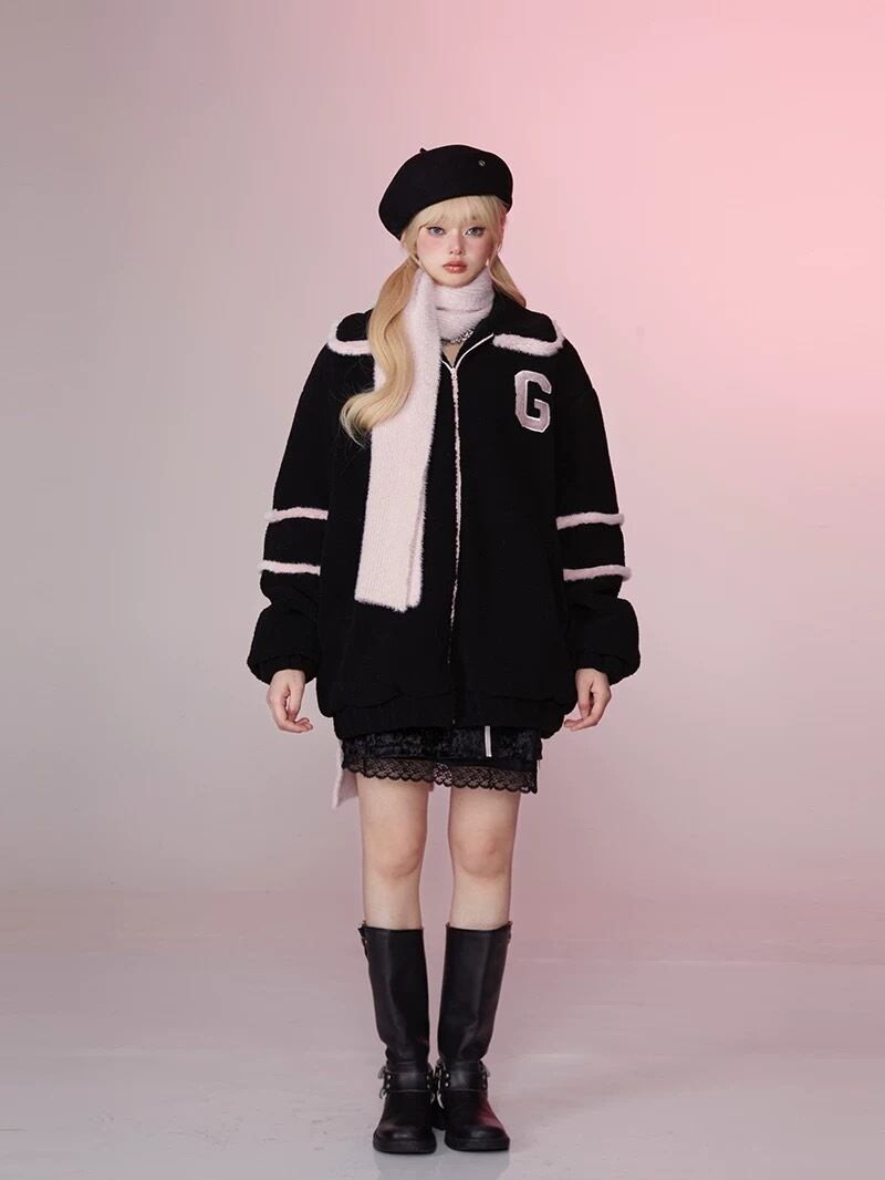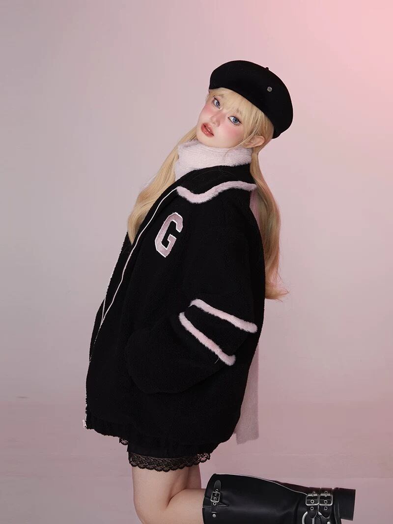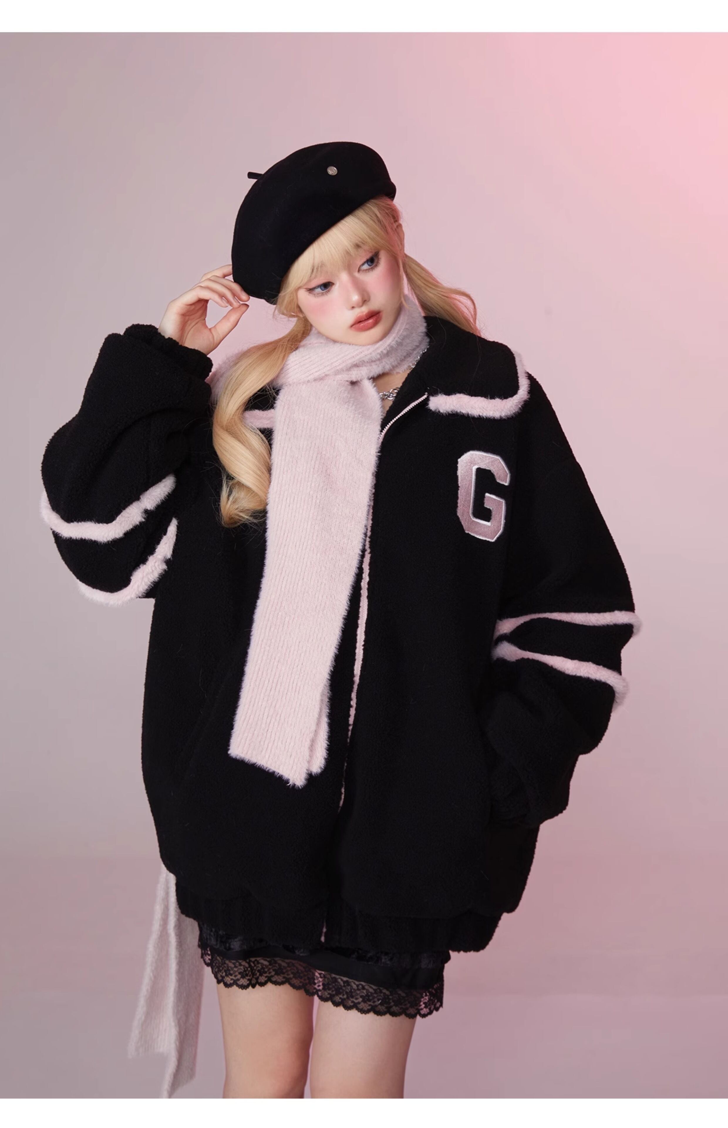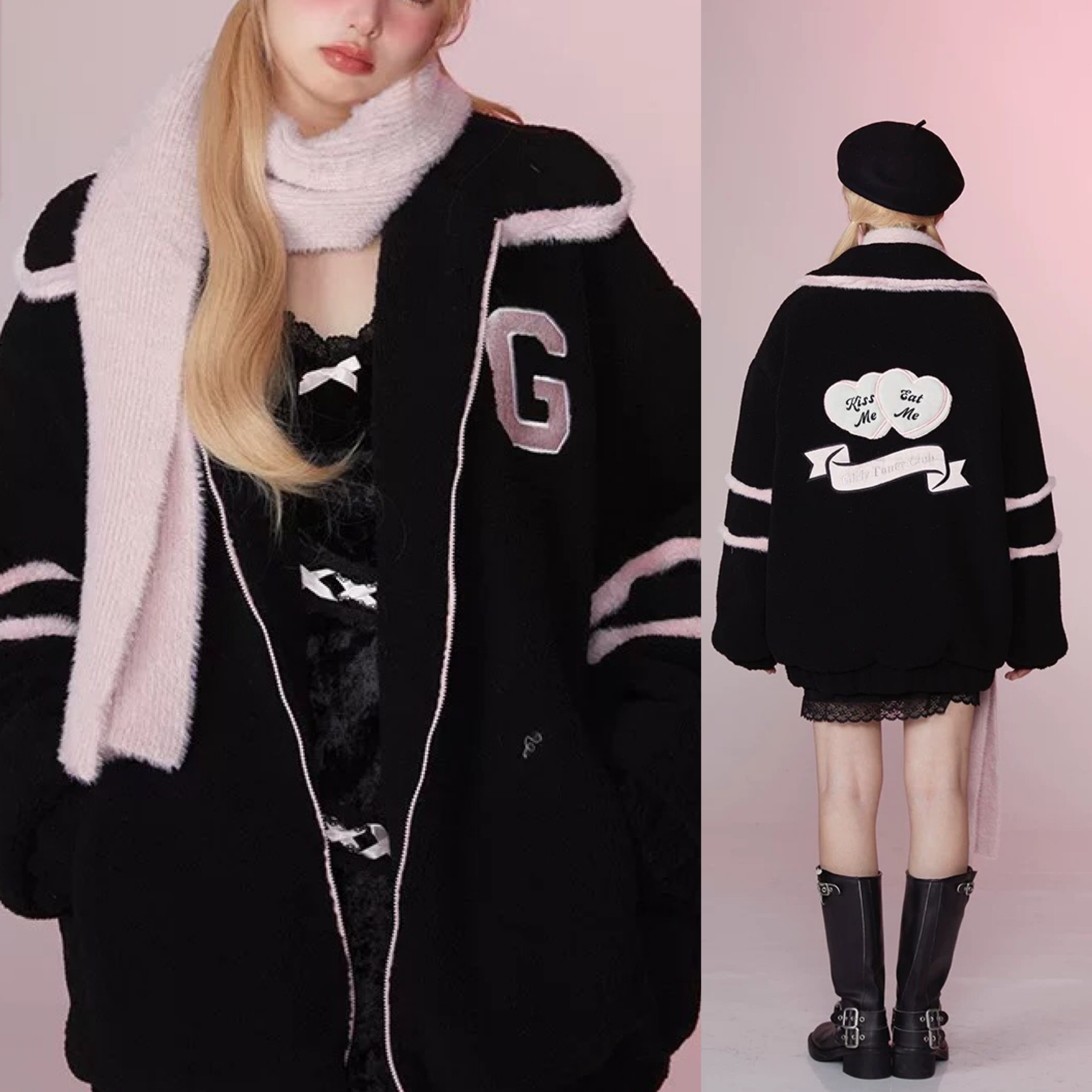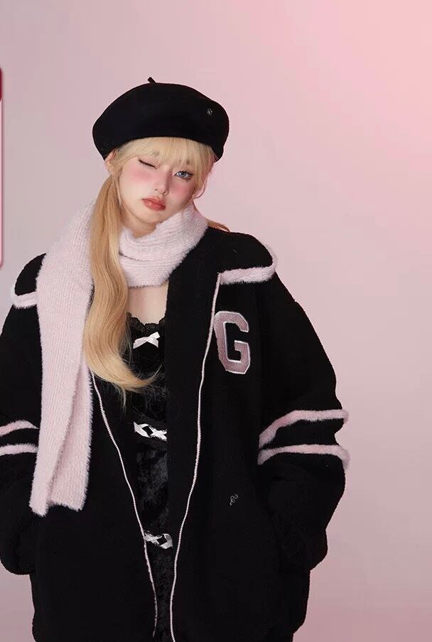 アウター ジャケット コート 黒 ピンク フリース カジュアル カーディガン アウター ブルゾン 原宿 可愛い