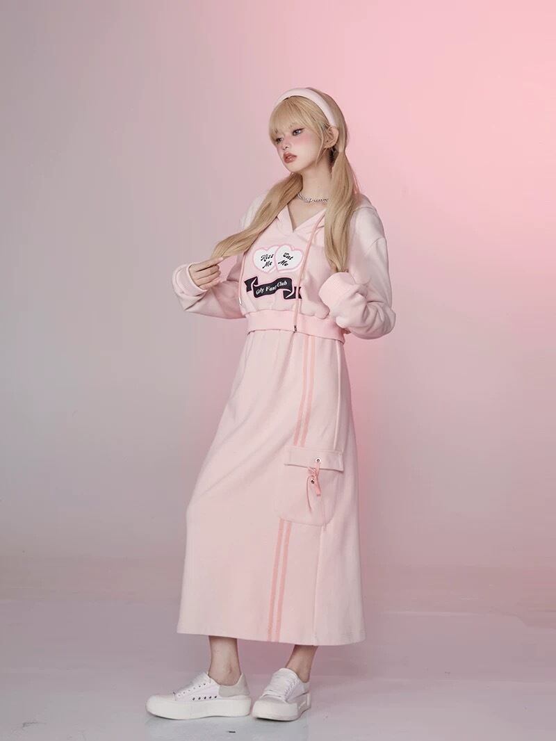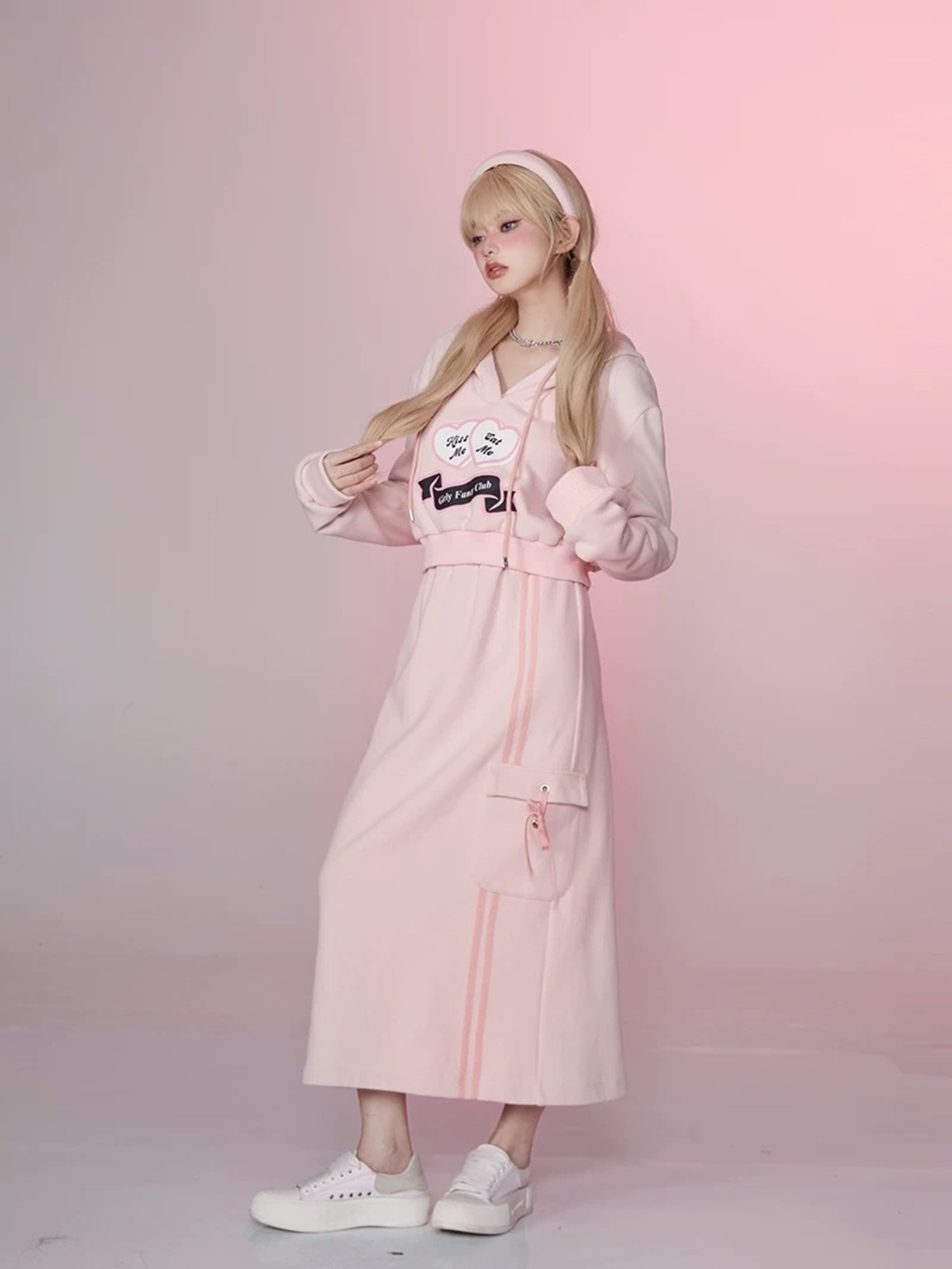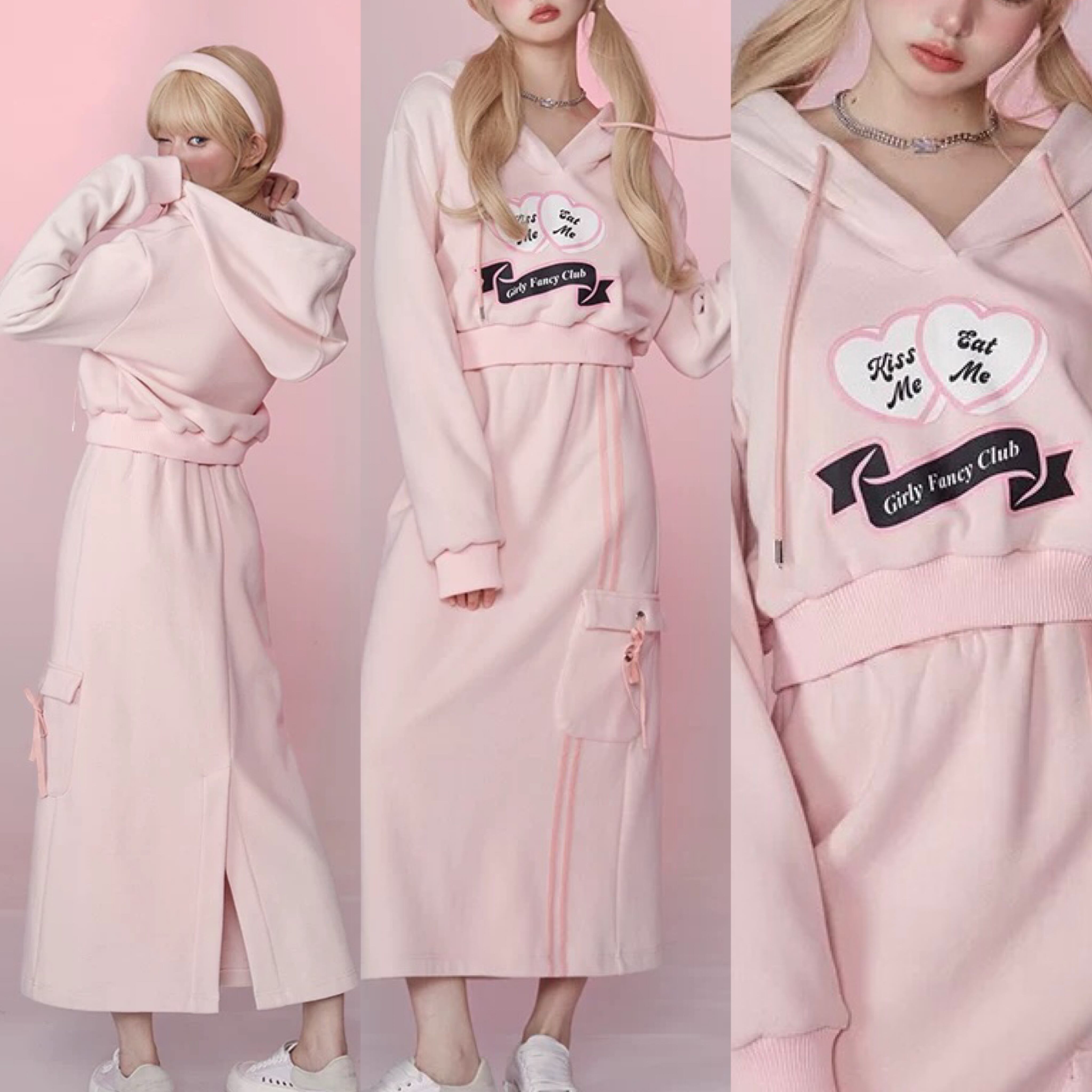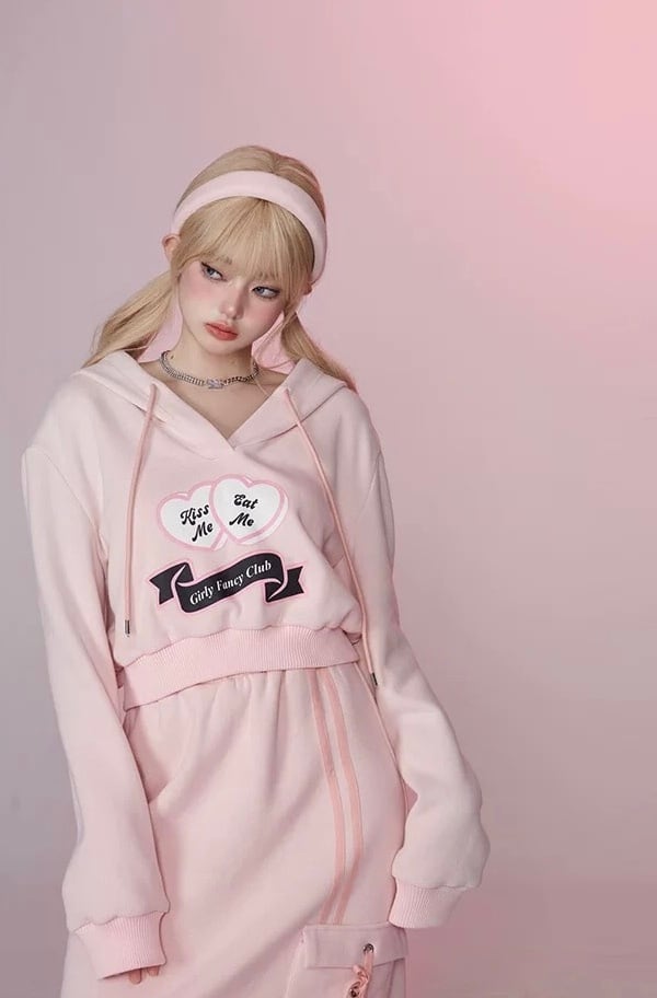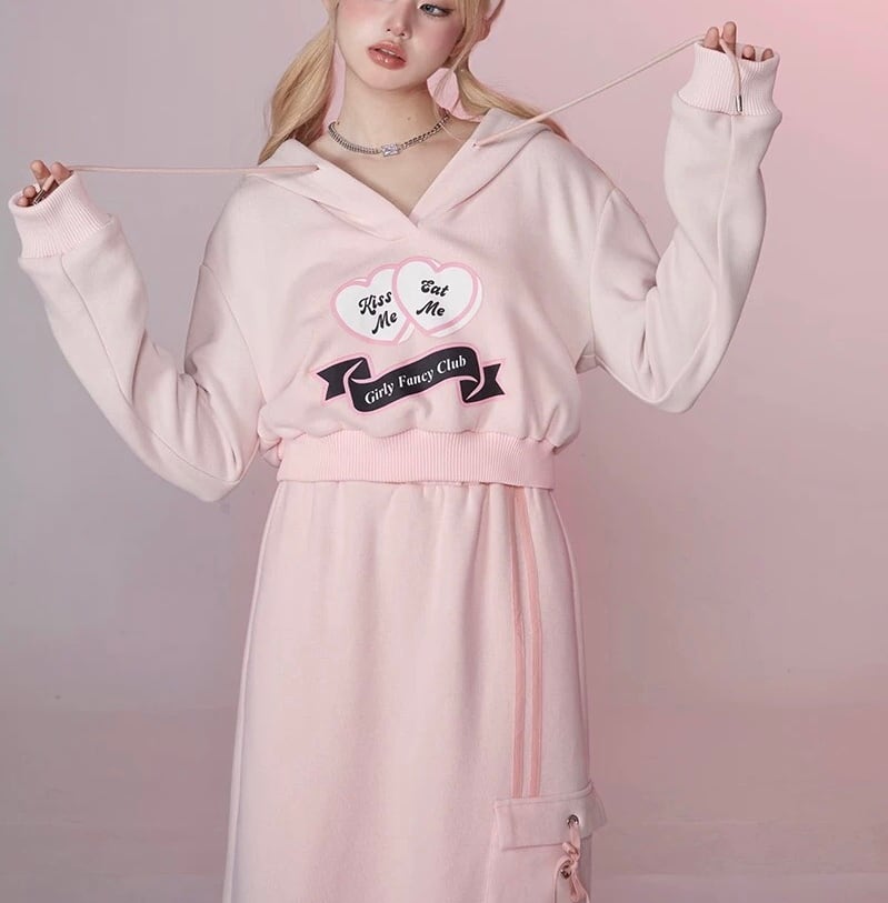 【トップス】ピンク カジュアル スウェット パーカー トレーナー ハート ガーリー カジュアル セットアップ ルームウェア ハート 可愛い ダンス カジュアル 原宿 渋谷